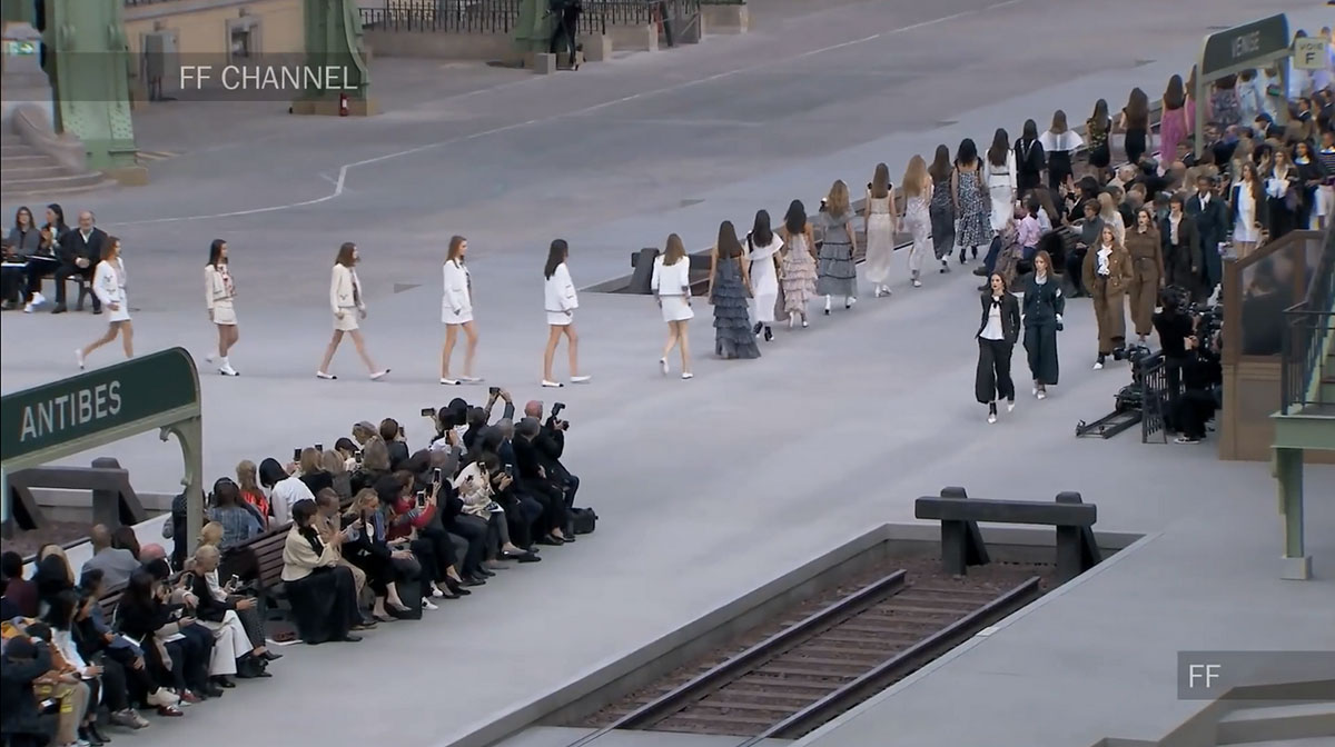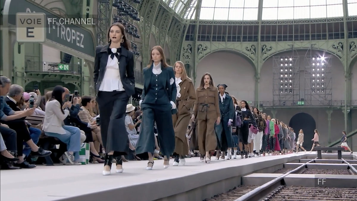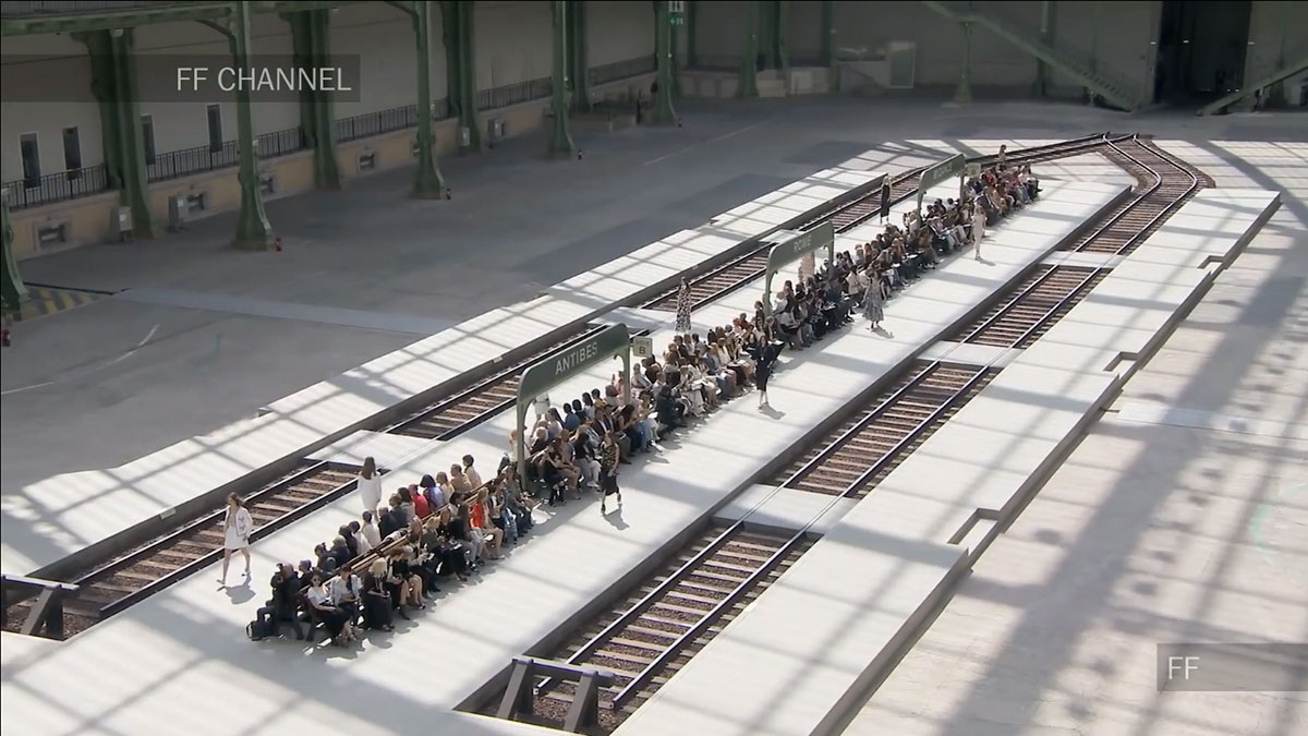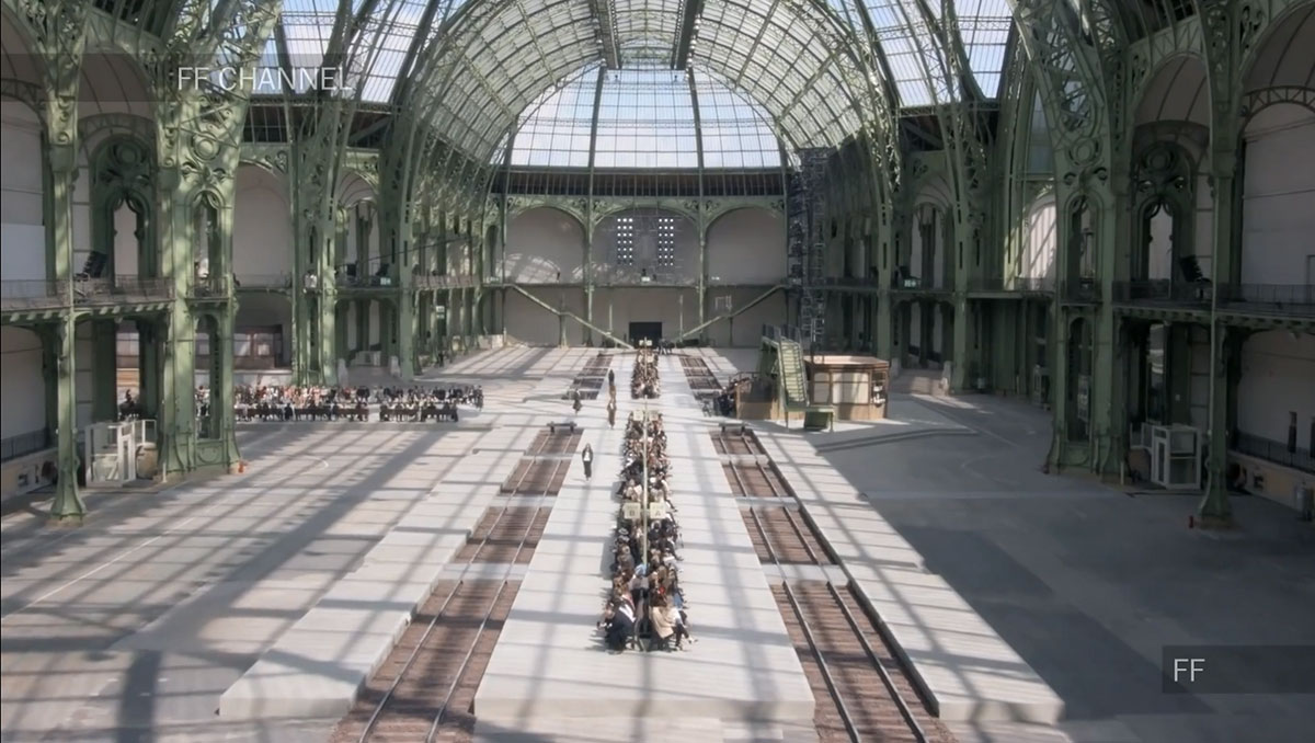 每一季CHANEL都会有一个主题,而这次呢,就是火车站,CHANEL将大皇宫改造成一个美术学院派风格的火车站,一个典型的巴黎和永恒氛围的火车站。铁路、月台、以及等候的座椅、售票窗口等,反正火车站有的这里都有!