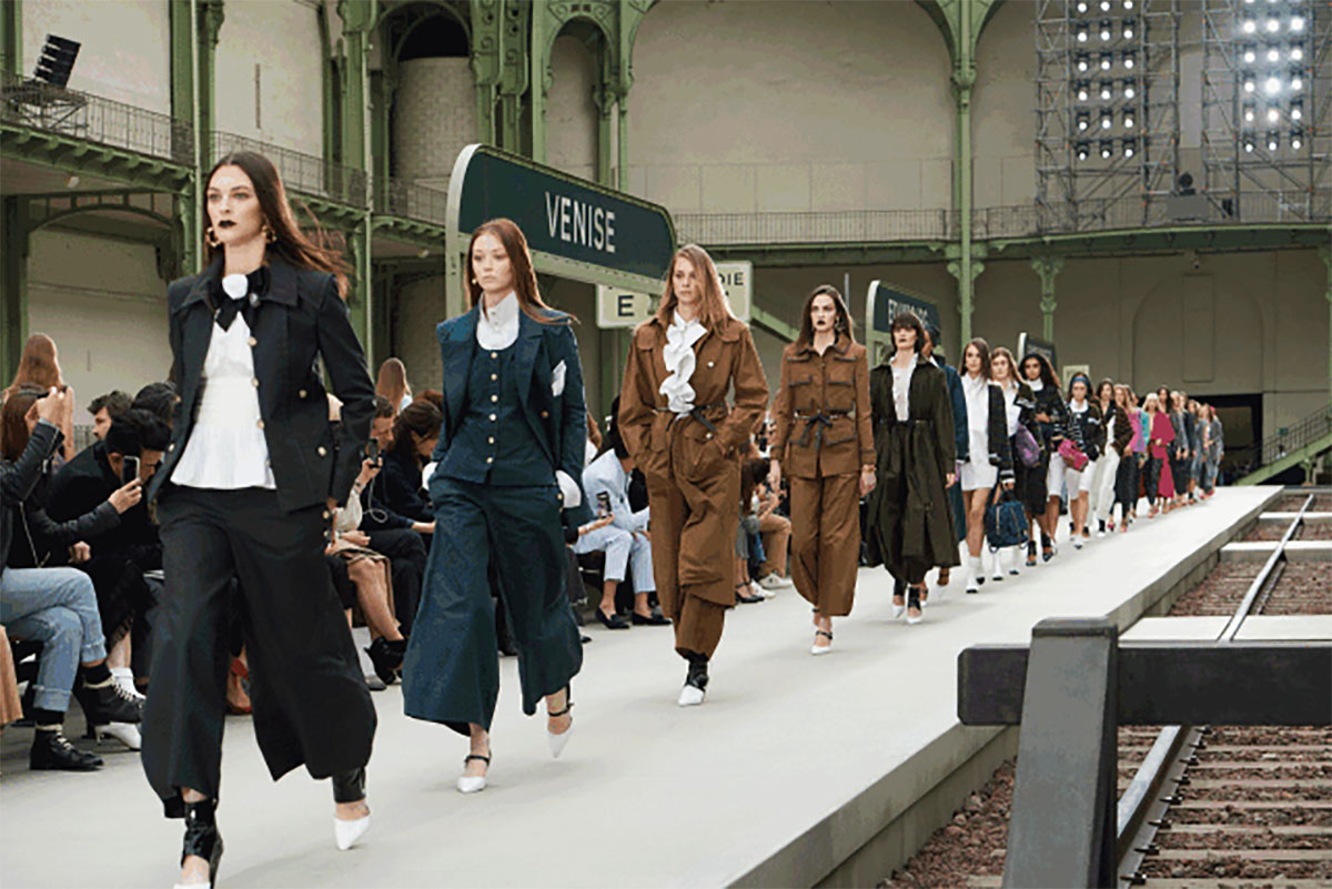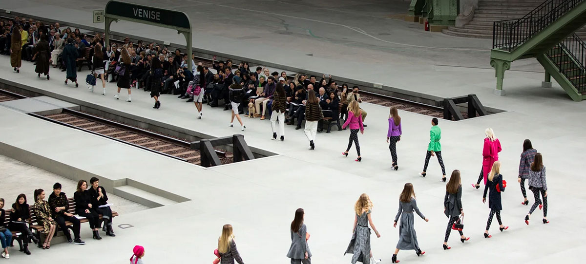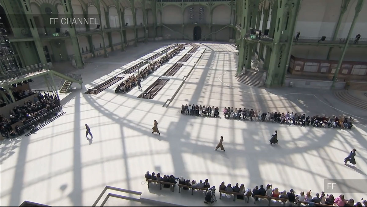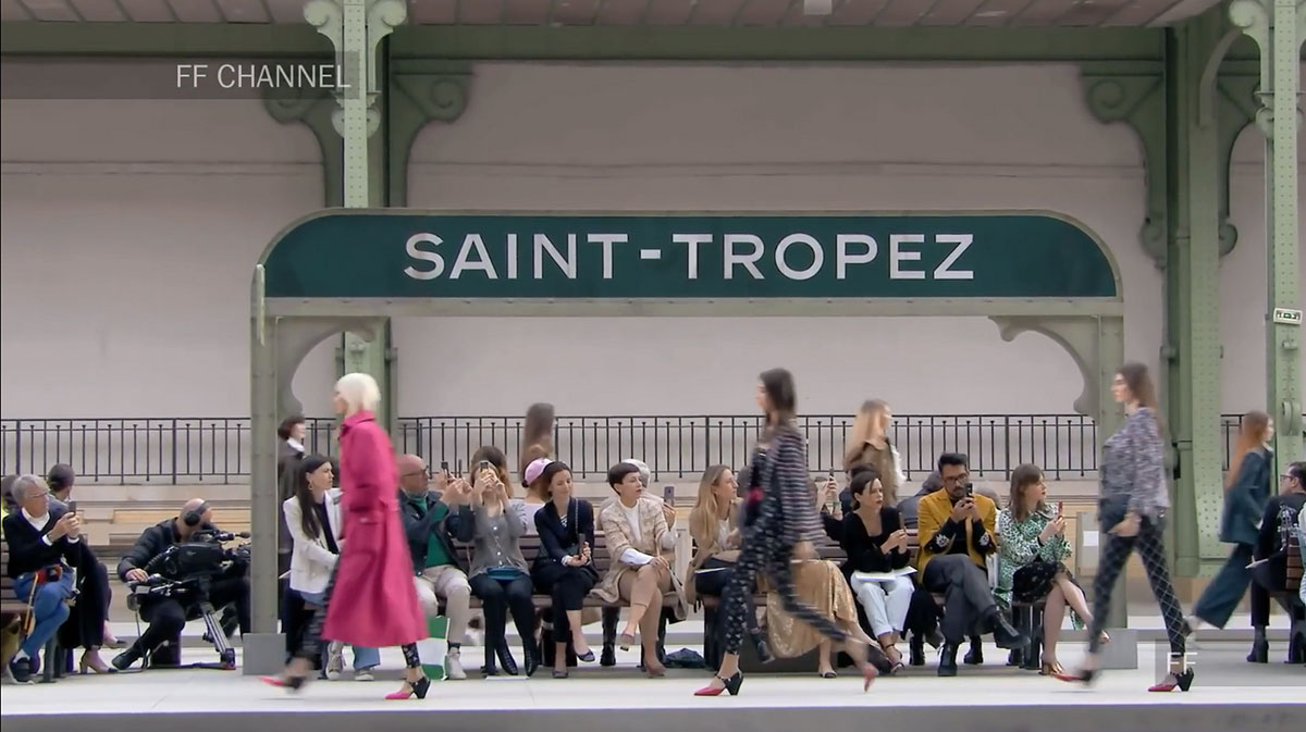 每一季CHANEL都会有一个主题,而这次呢,就是火车站,CHANEL将大皇宫改造成一个美术学院派风格的火车站,一个典型的巴黎和永恒氛围的火车站。铁路、月台、以及等候的座椅、售票窗口等,反正火车站有的这里都有!