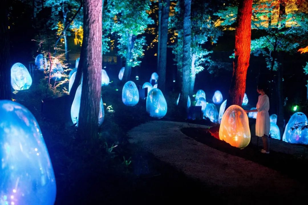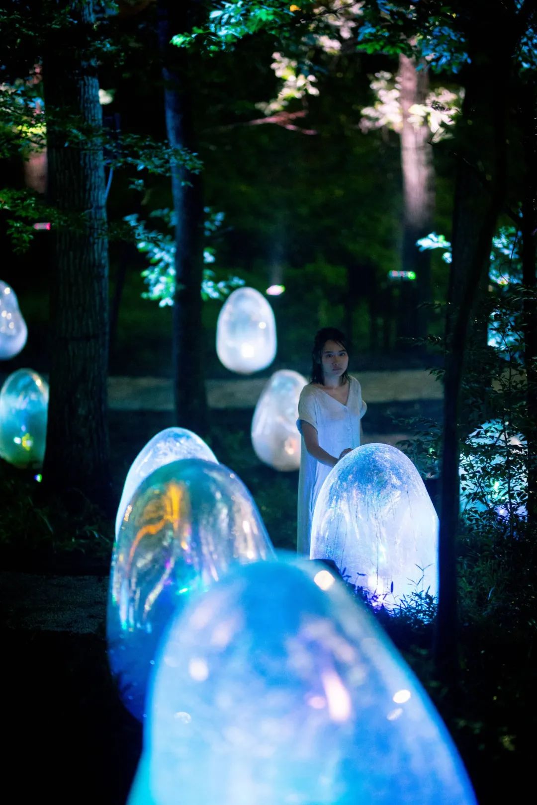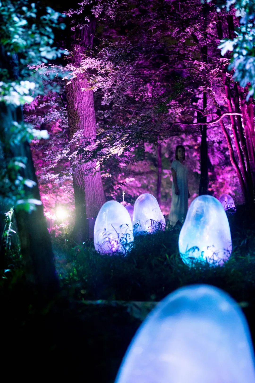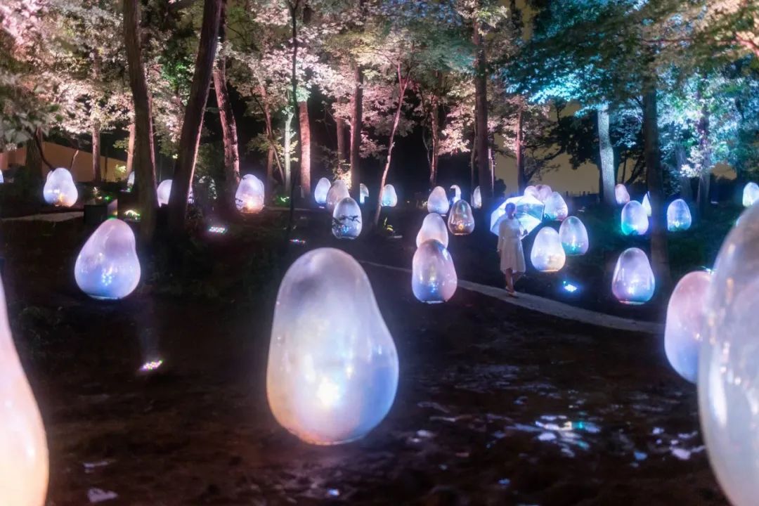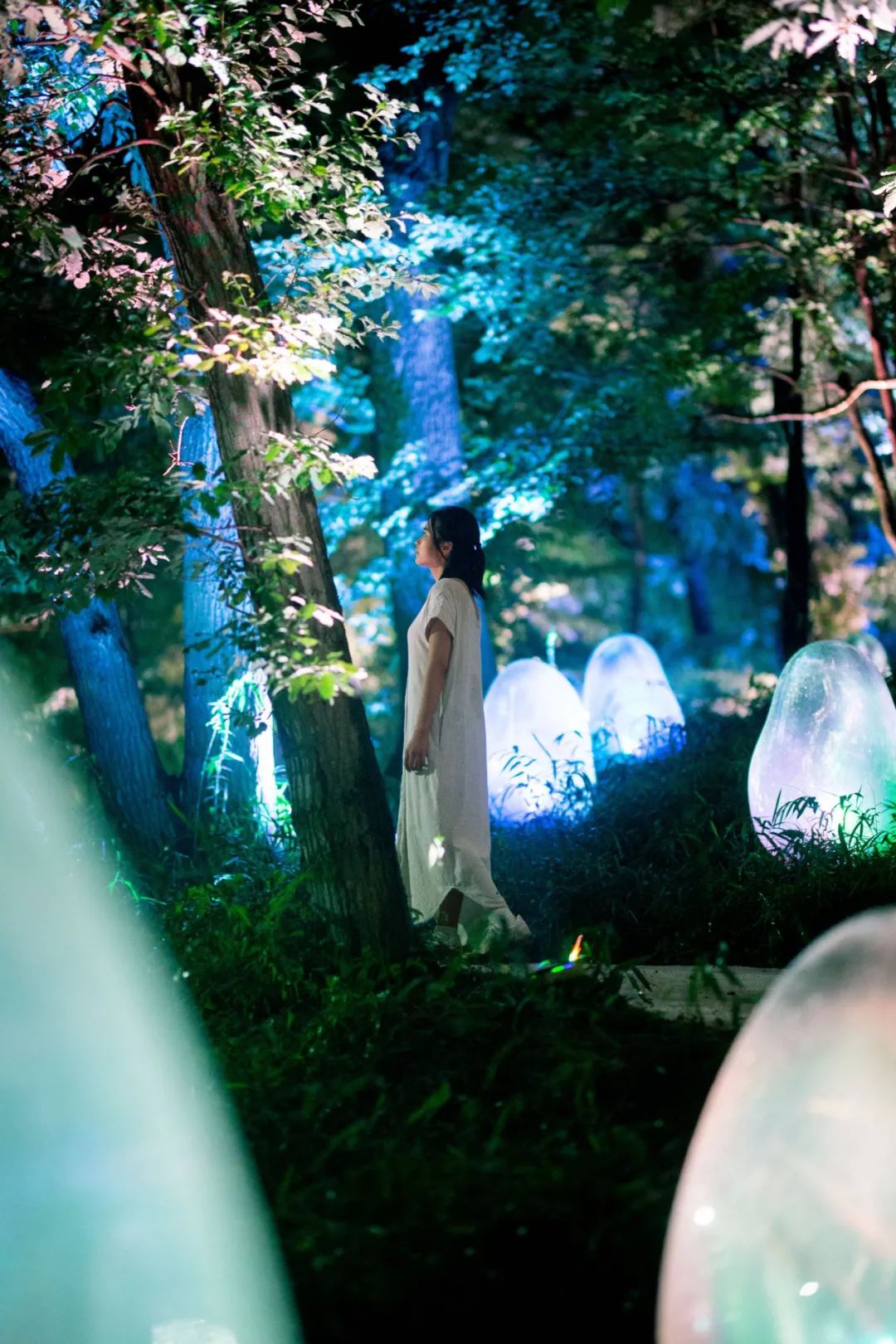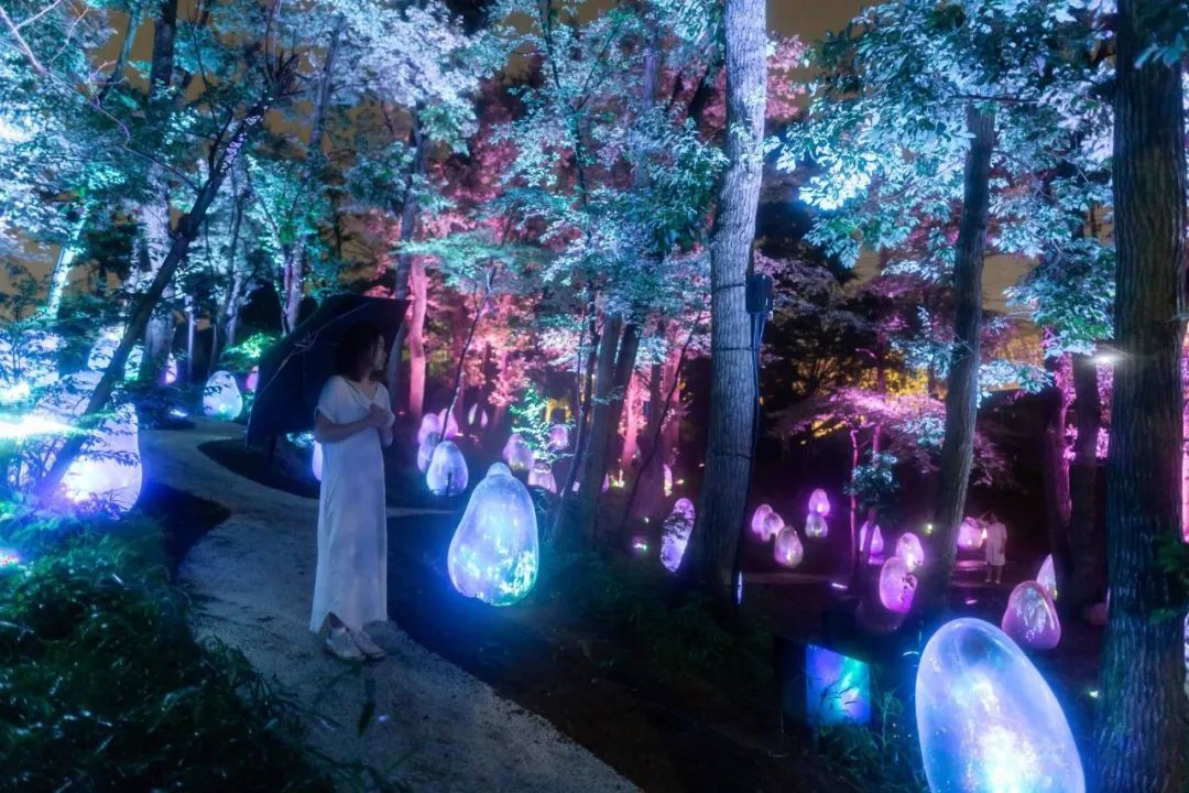 teamLab通过非物质的数字艺术,打造以“自然保持自然的姿态成为艺术”为概念的“Digitized Nature”的艺术项目,把武藏野的橡子森林转变成因为人的存在而变化的光之艺术空间。