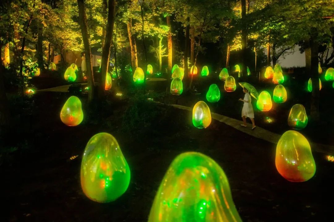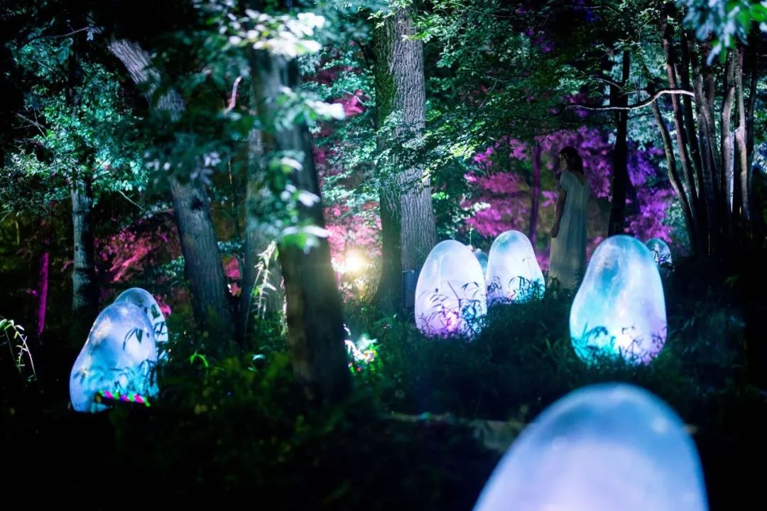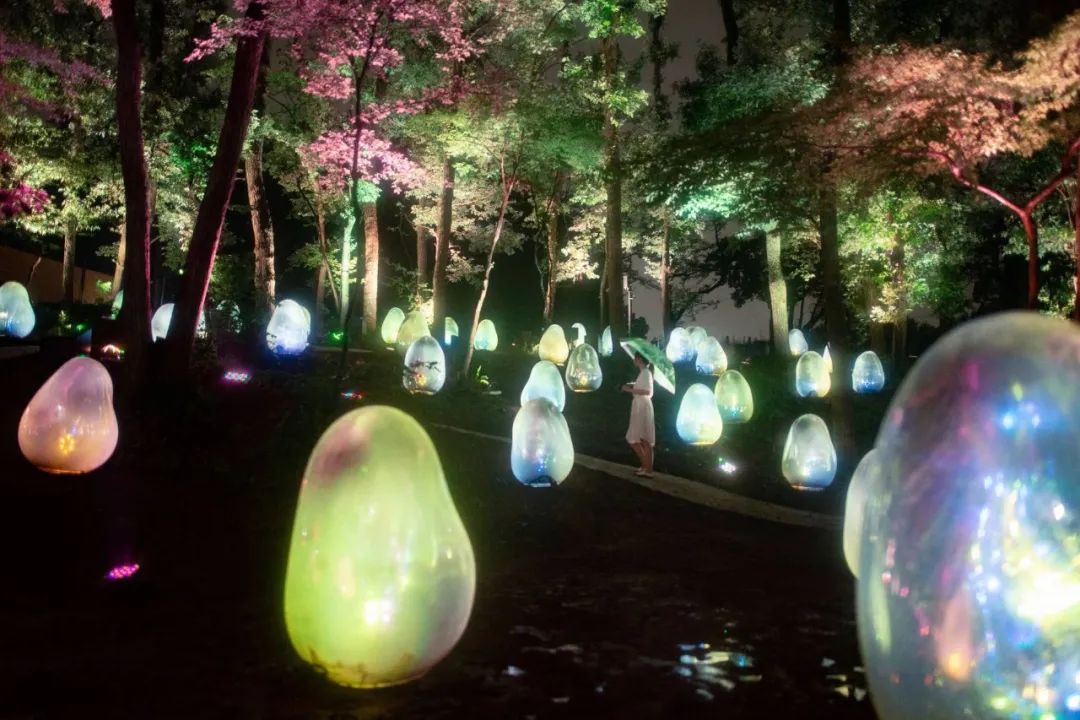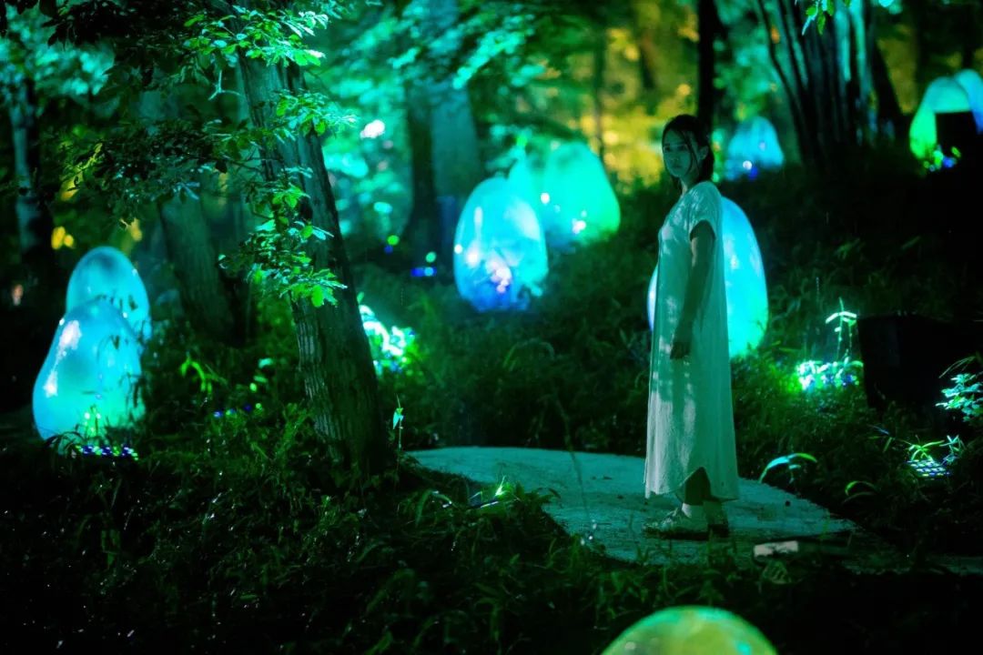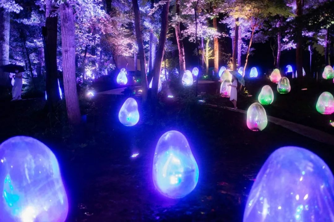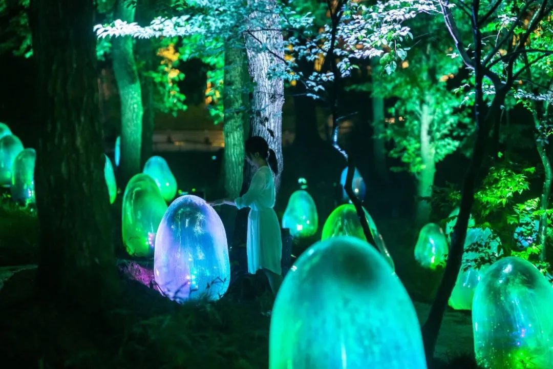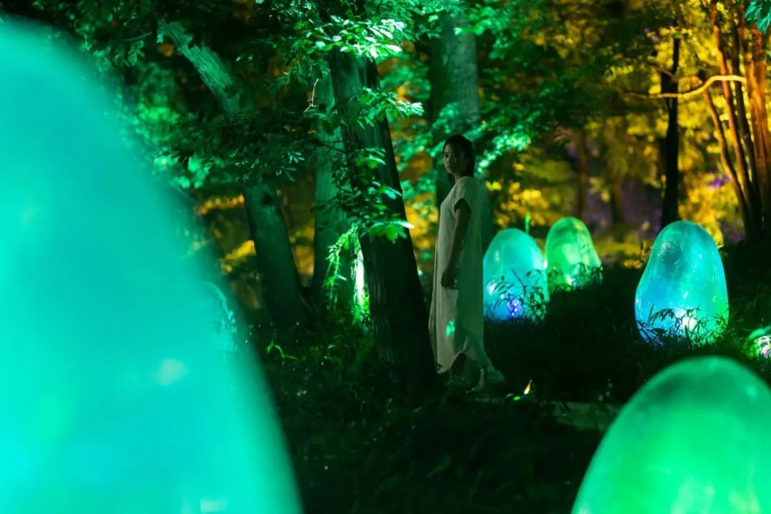 teamLab通过非物质的数字艺术,打造以“自然保持自然的姿态成为艺术”为概念的“Digitized Nature”的艺术项目,把武藏野的橡子森林转变成因为人的存在而变化的光之艺术空间。