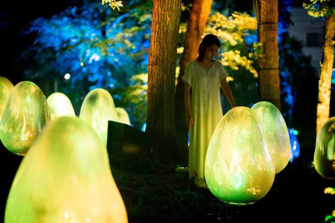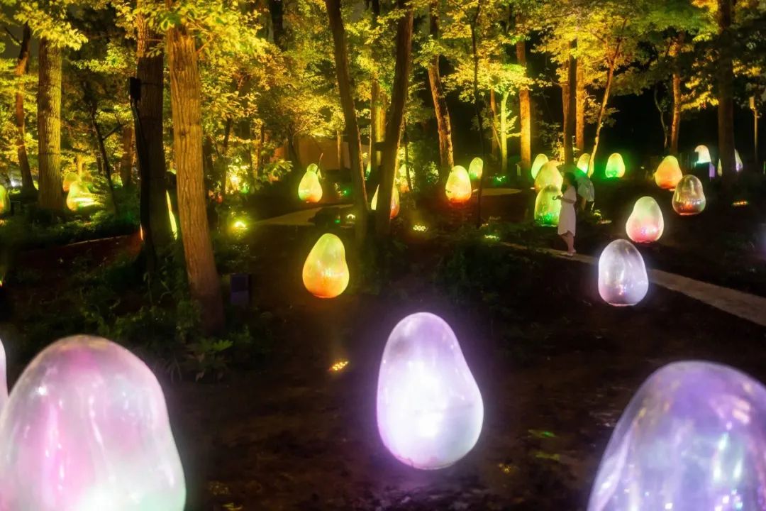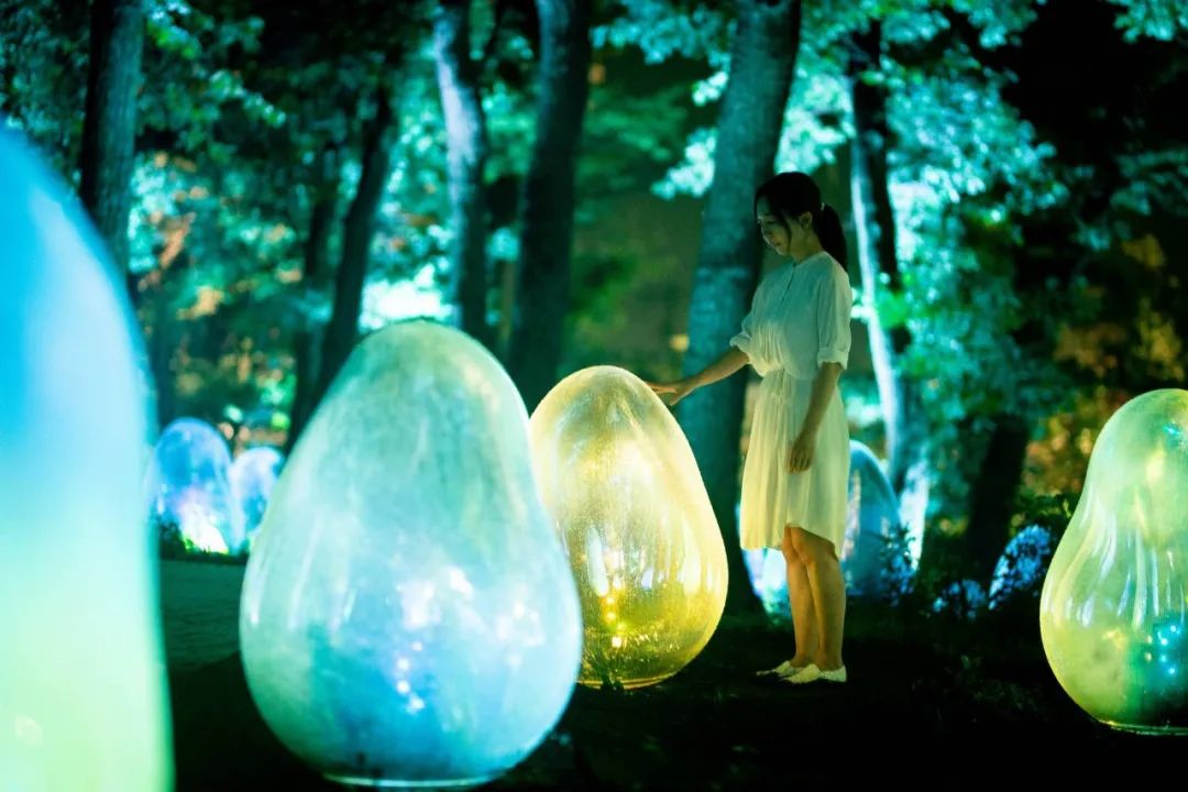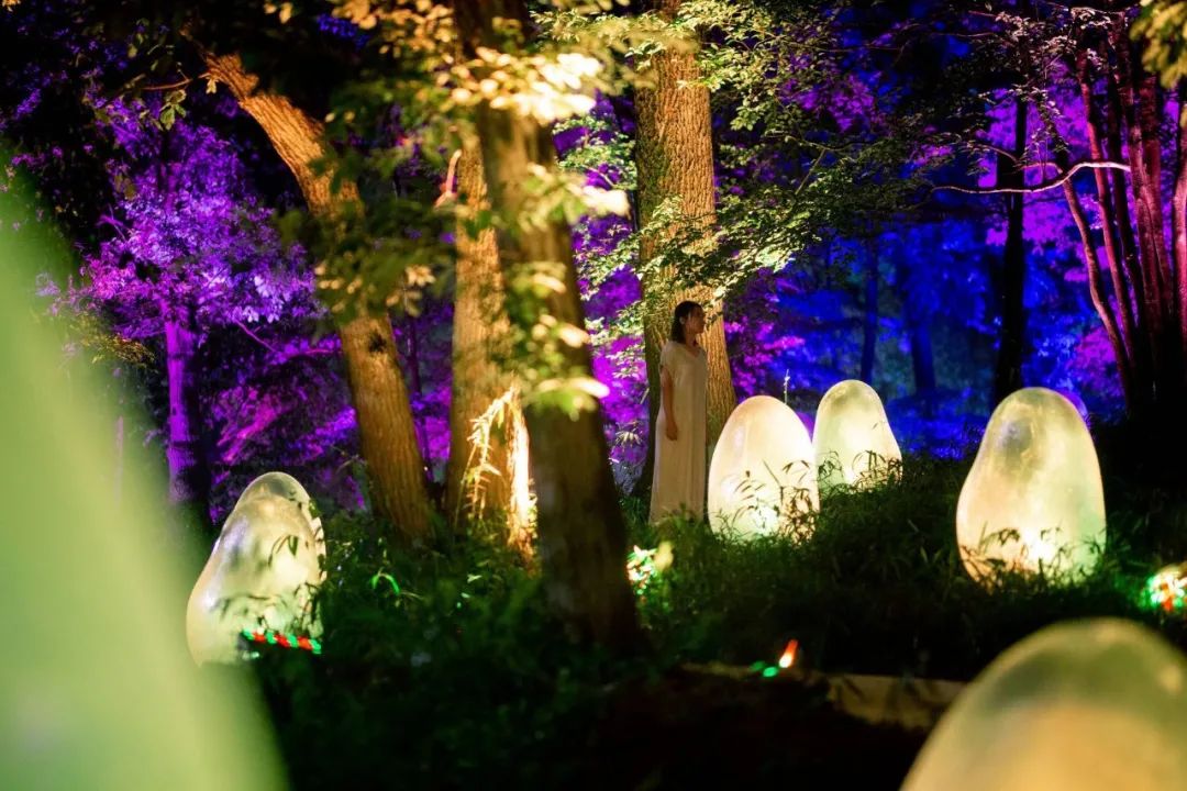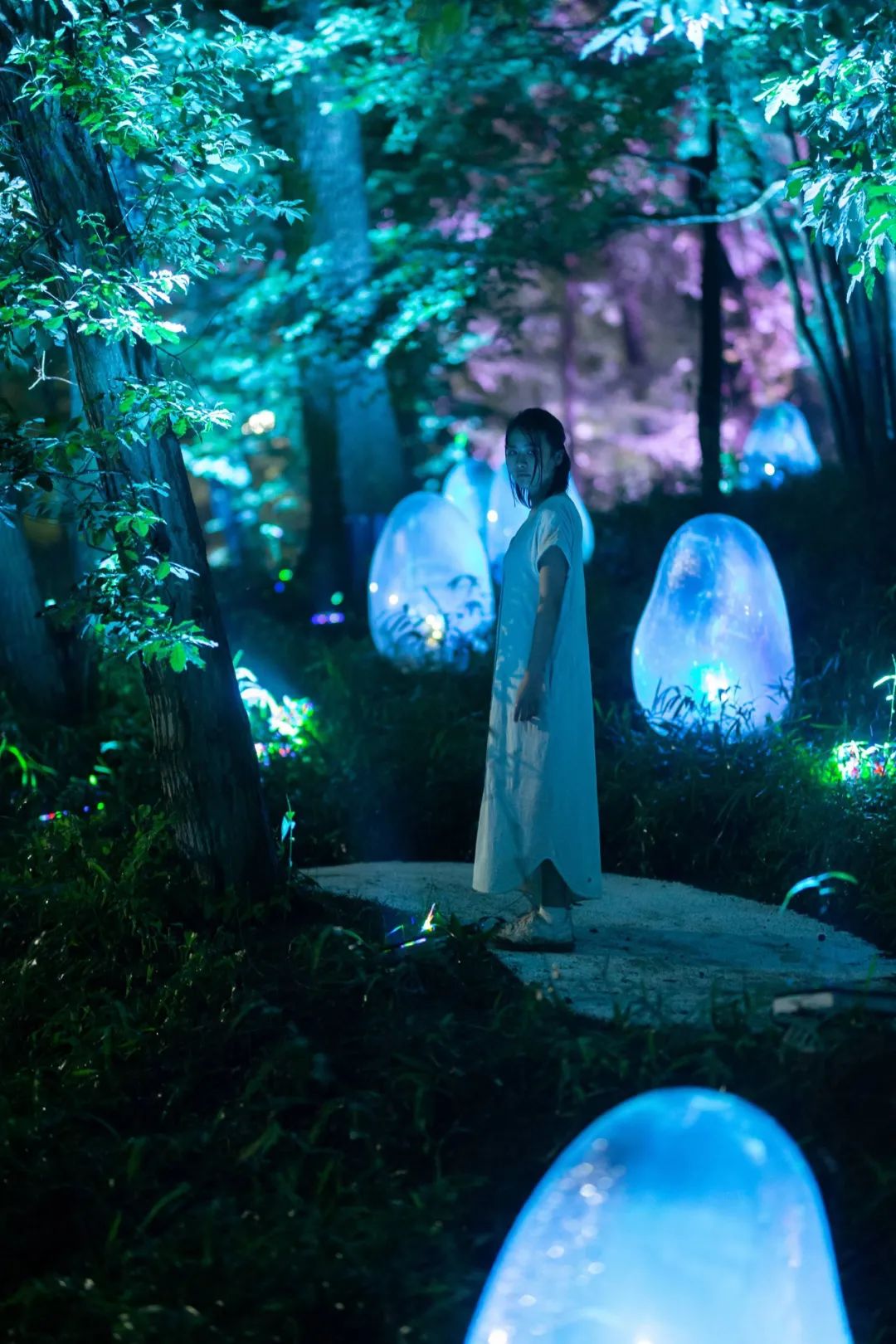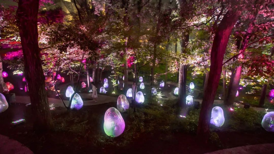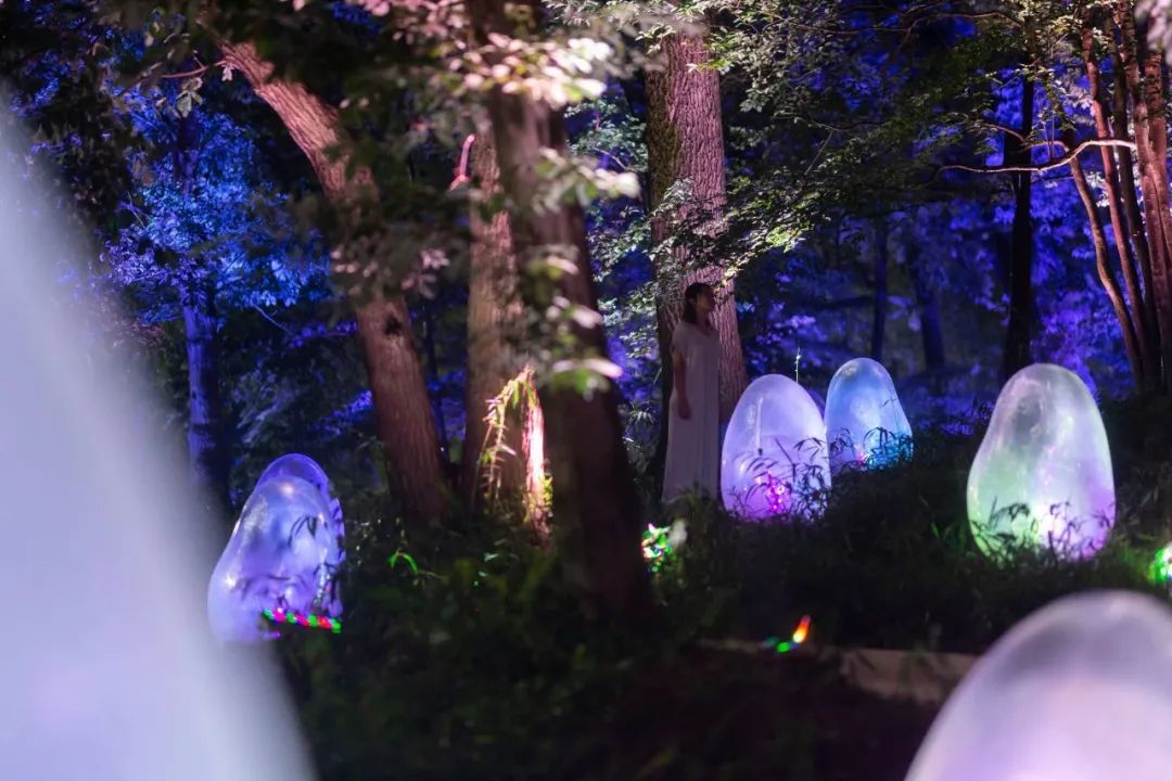 teamLab通过非物质的数字艺术,打造以“自然保持自然的姿态成为艺术”为概念的“Digitized Nature”的艺术项目,把武藏野的橡子森林转变成因为人的存在而变化的光之艺术空间。