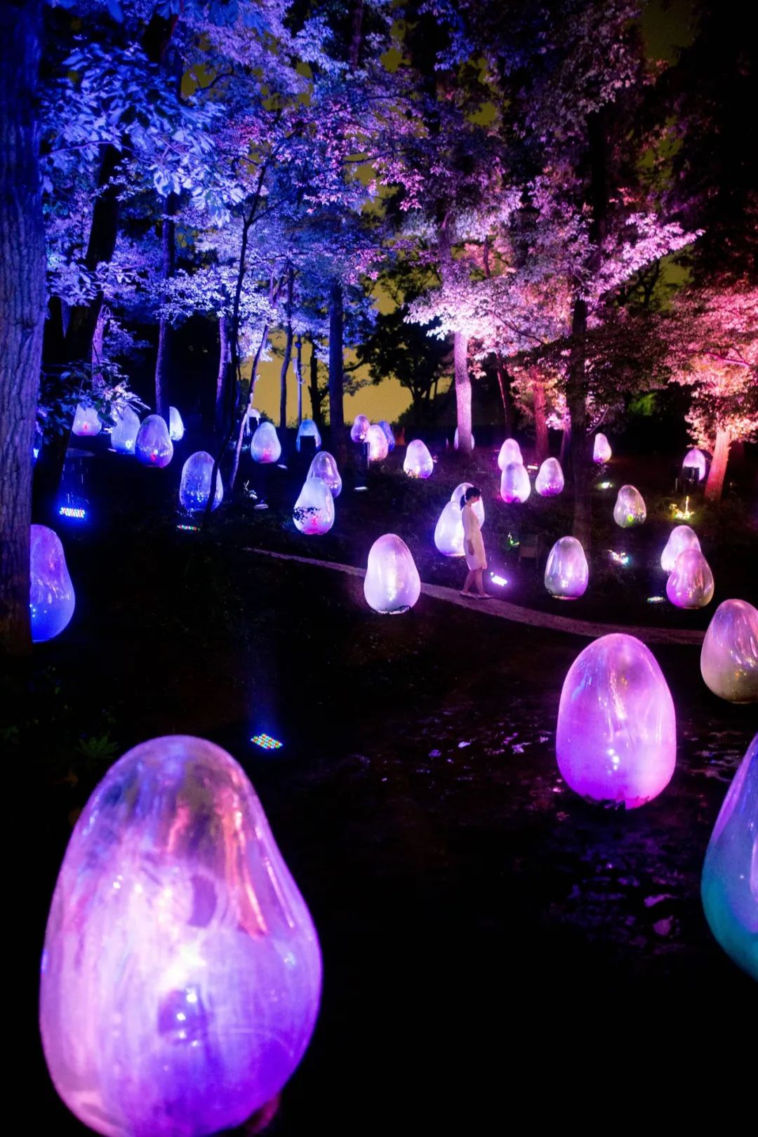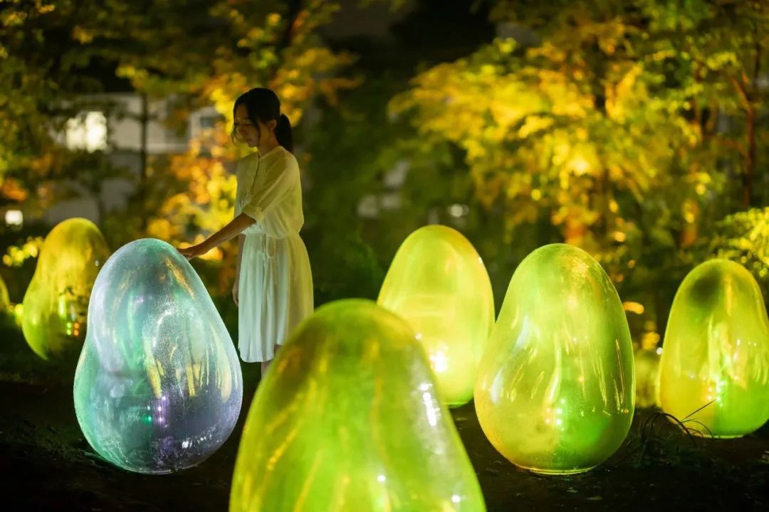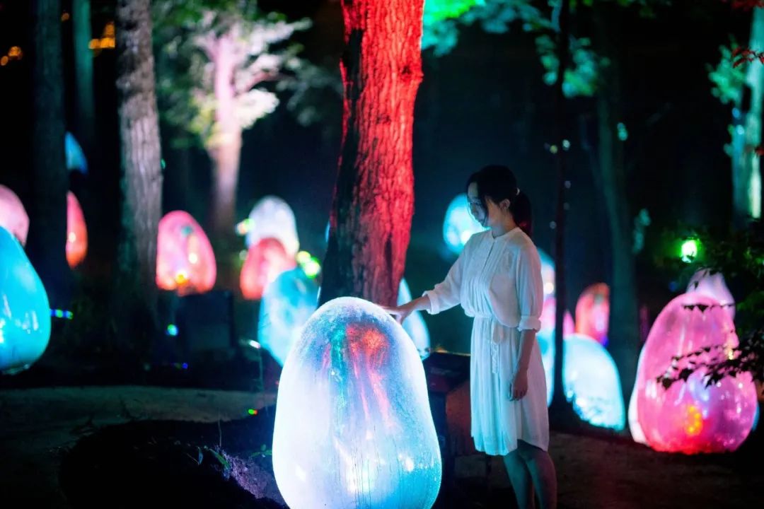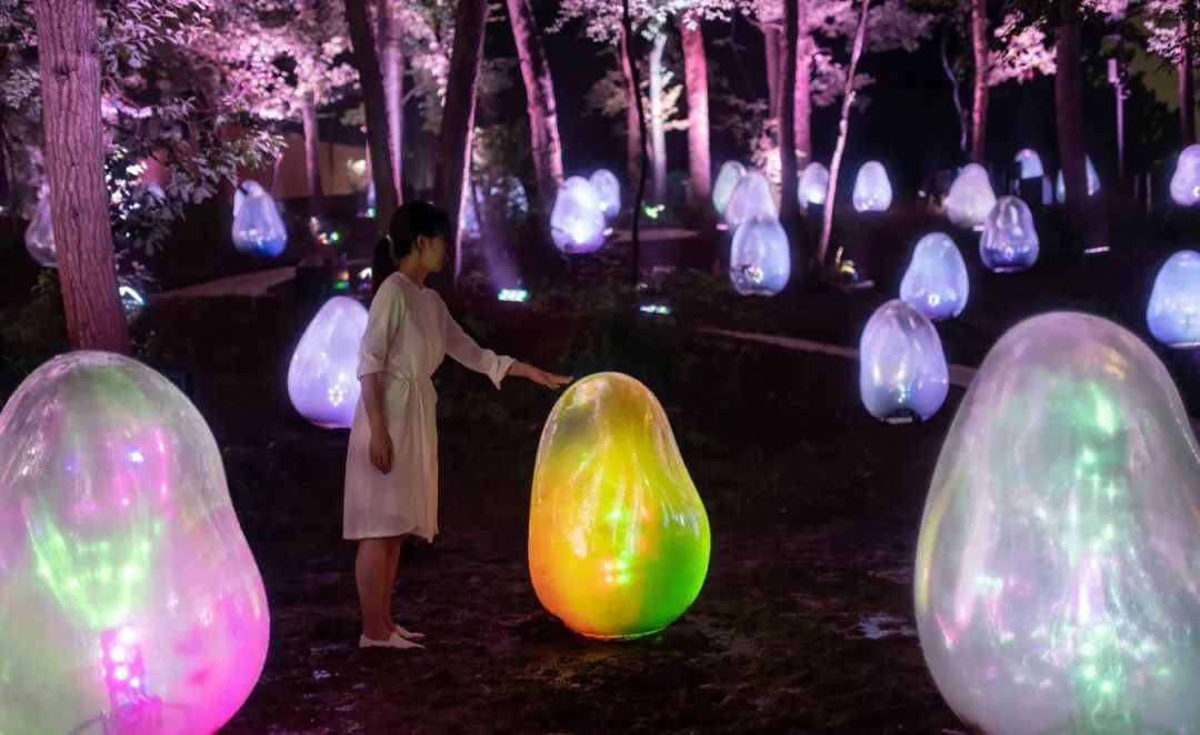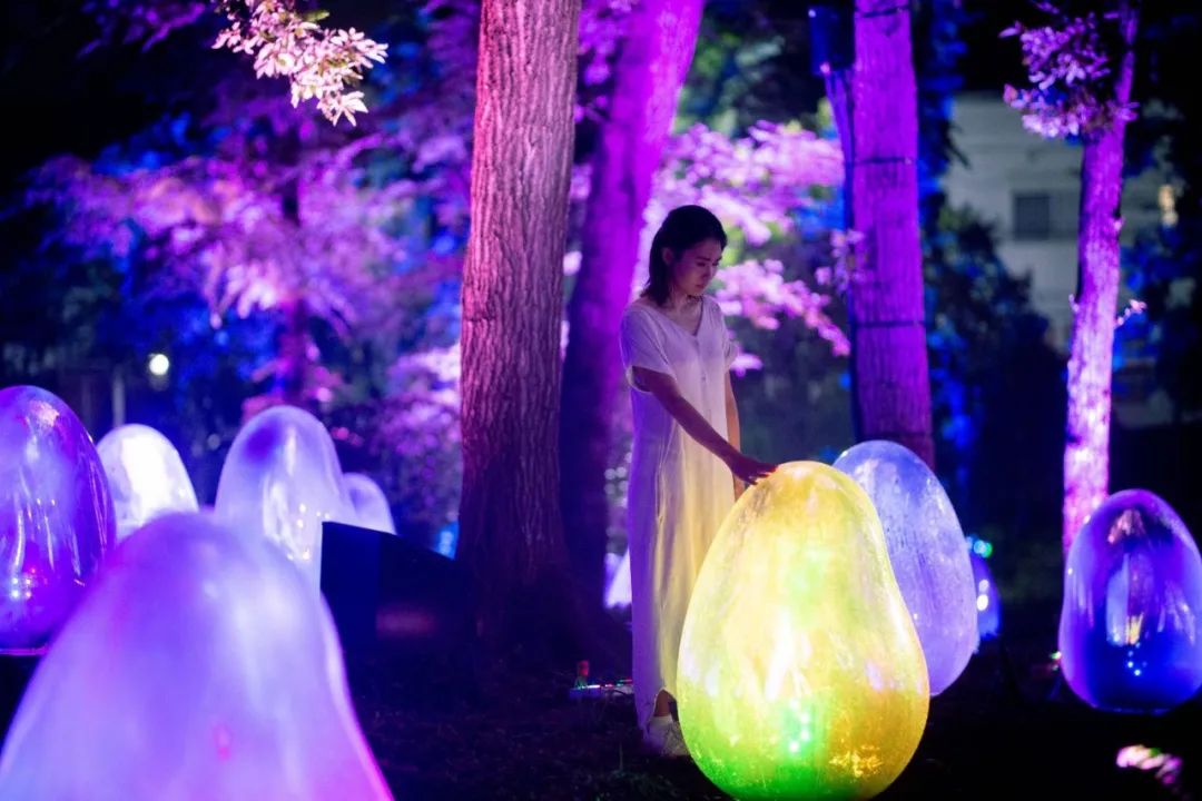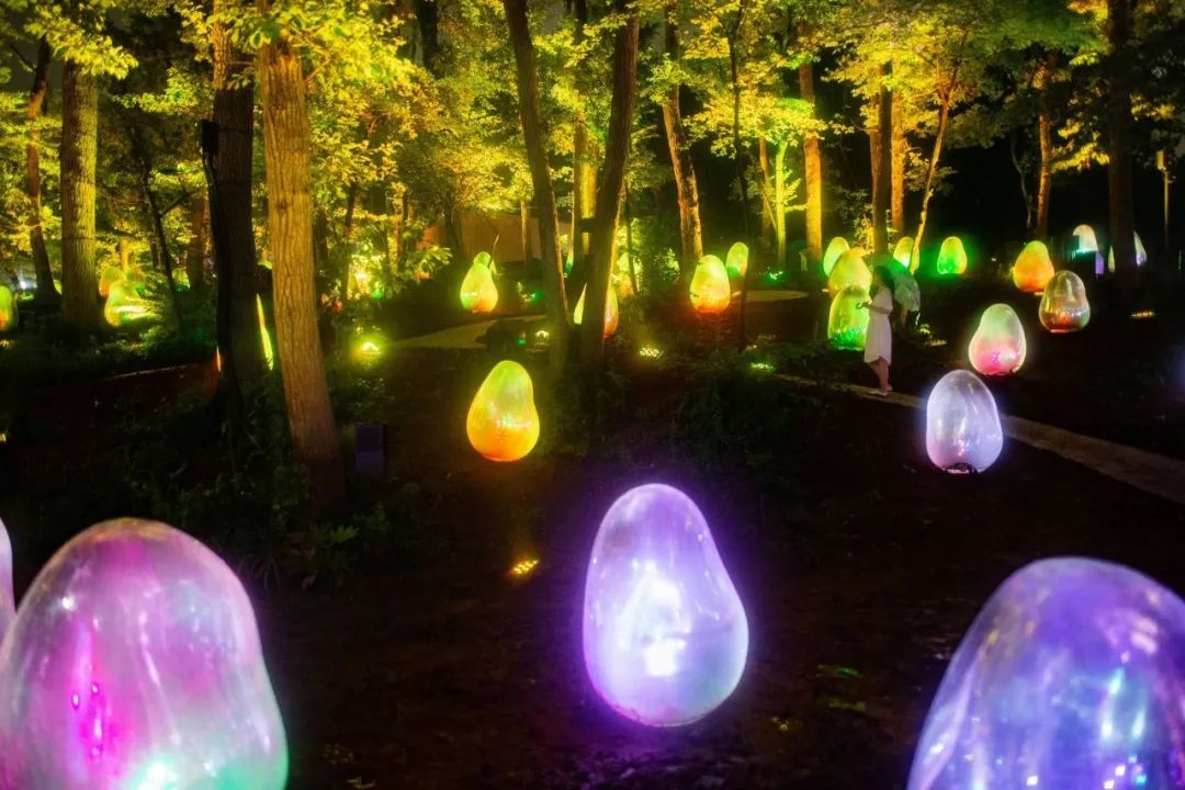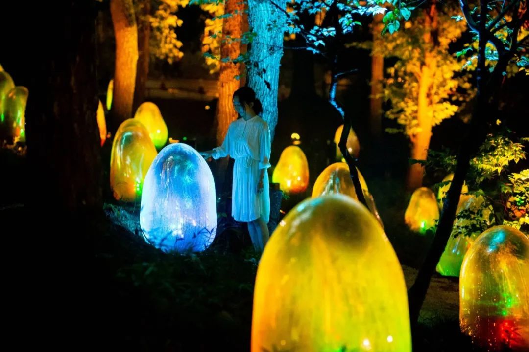 teamLab通过非物质的数字艺术,打造以“自然保持自然的姿态成为艺术”为概念的“Digitized Nature”的艺术项目,把武藏野的橡子森林转变成因为人的存在而变化的光之艺术空间。