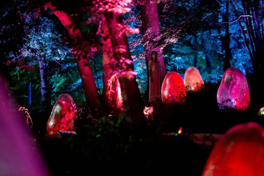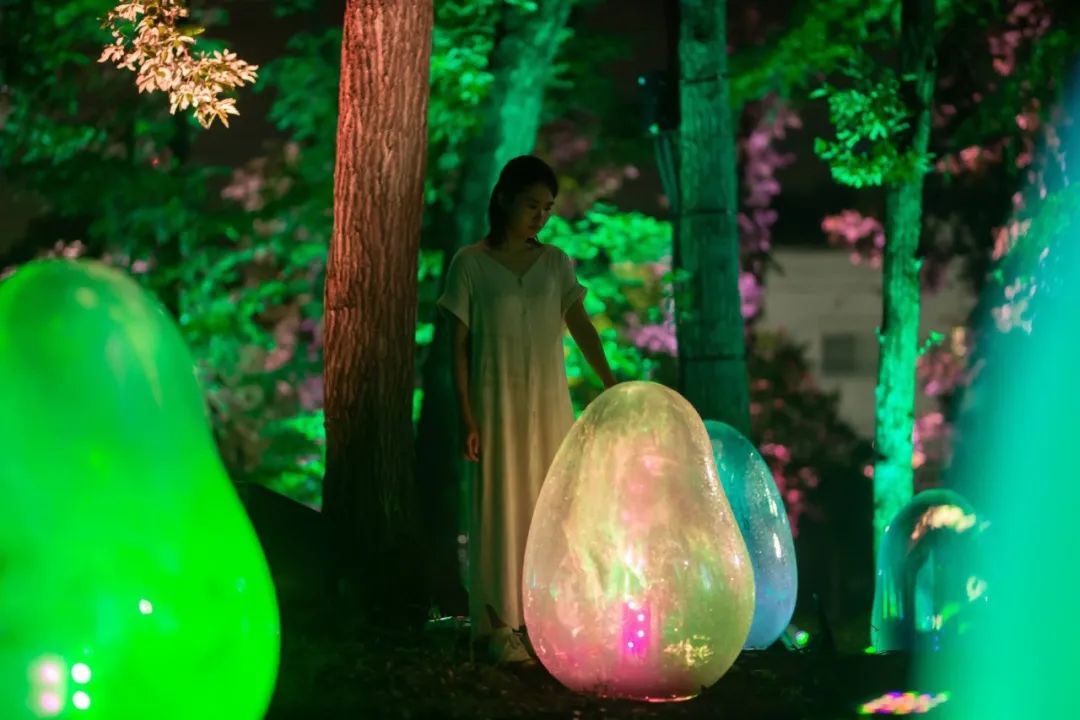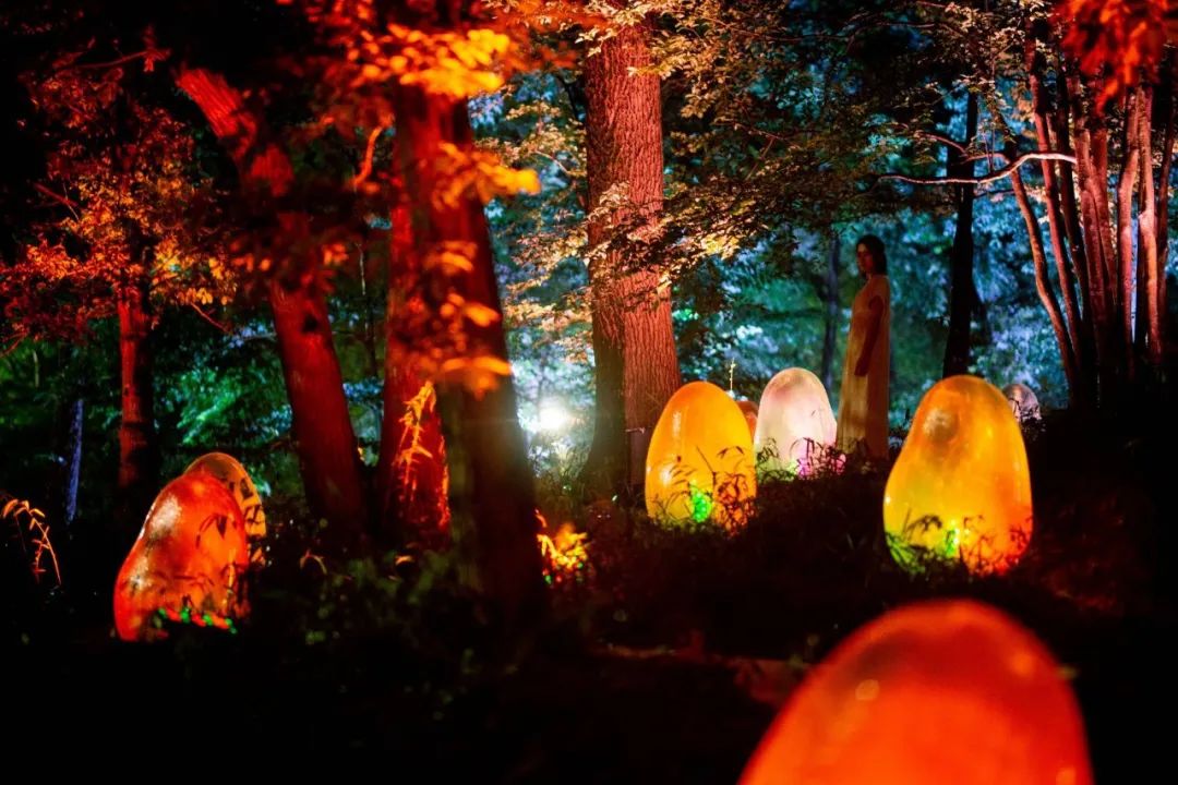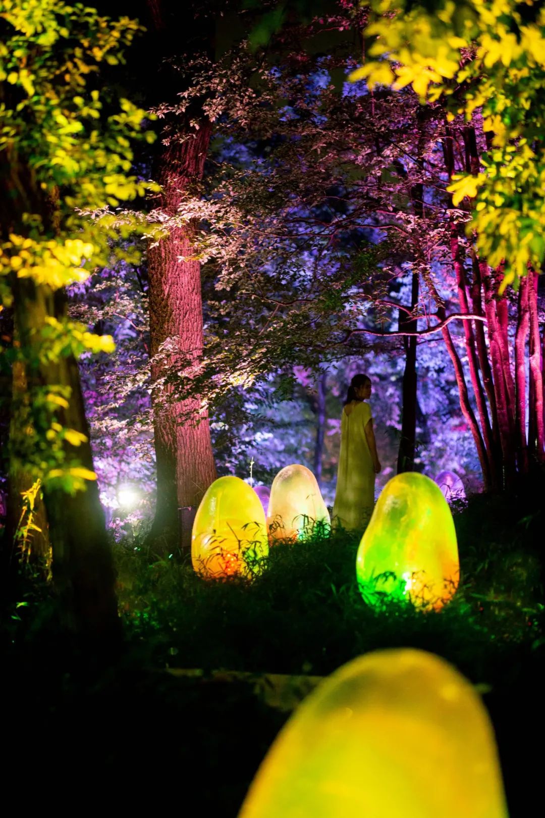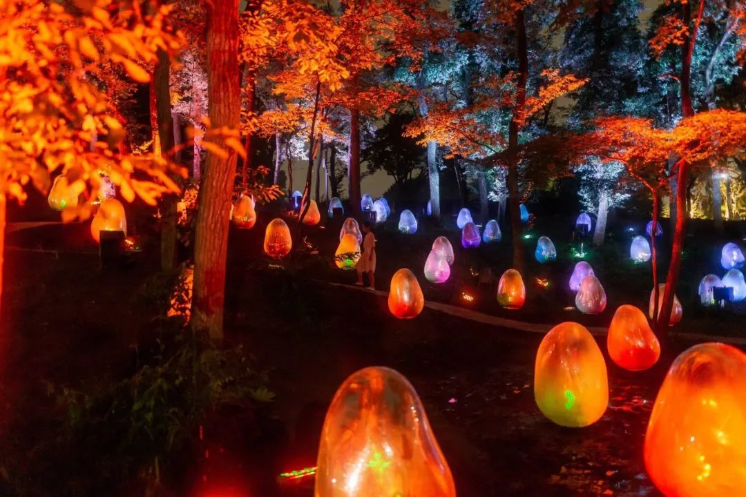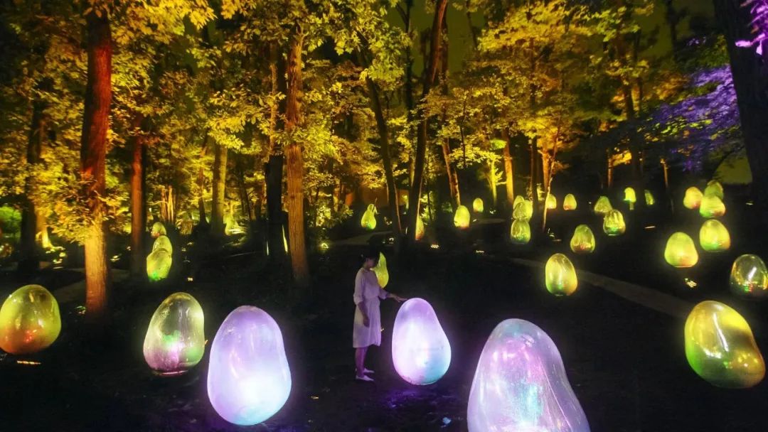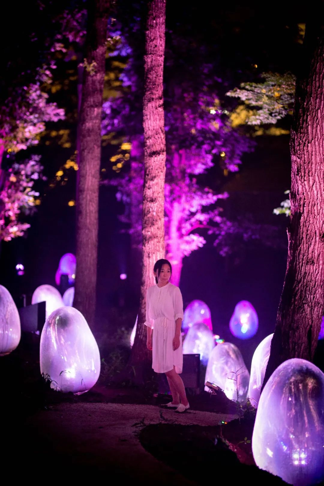 teamLab通过非物质的数字艺术,打造以“自然保持自然的姿态成为艺术”为概念的“Digitized Nature”的艺术项目,把武藏野的橡子森林转变成因为人的存在而变化的光之艺术空间。