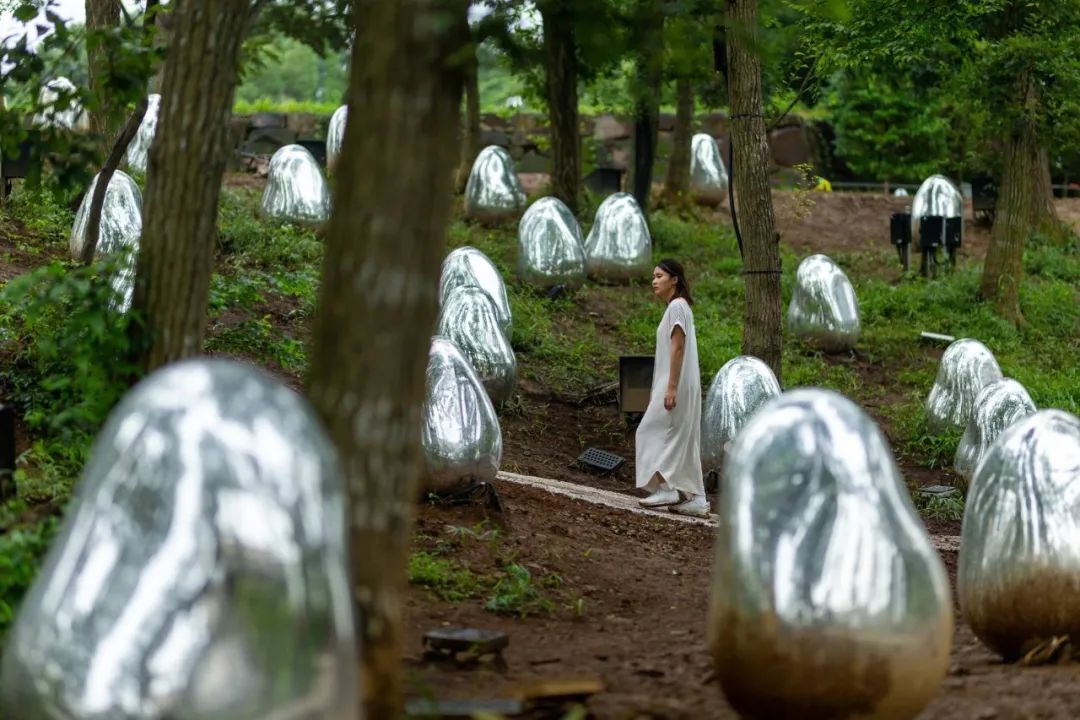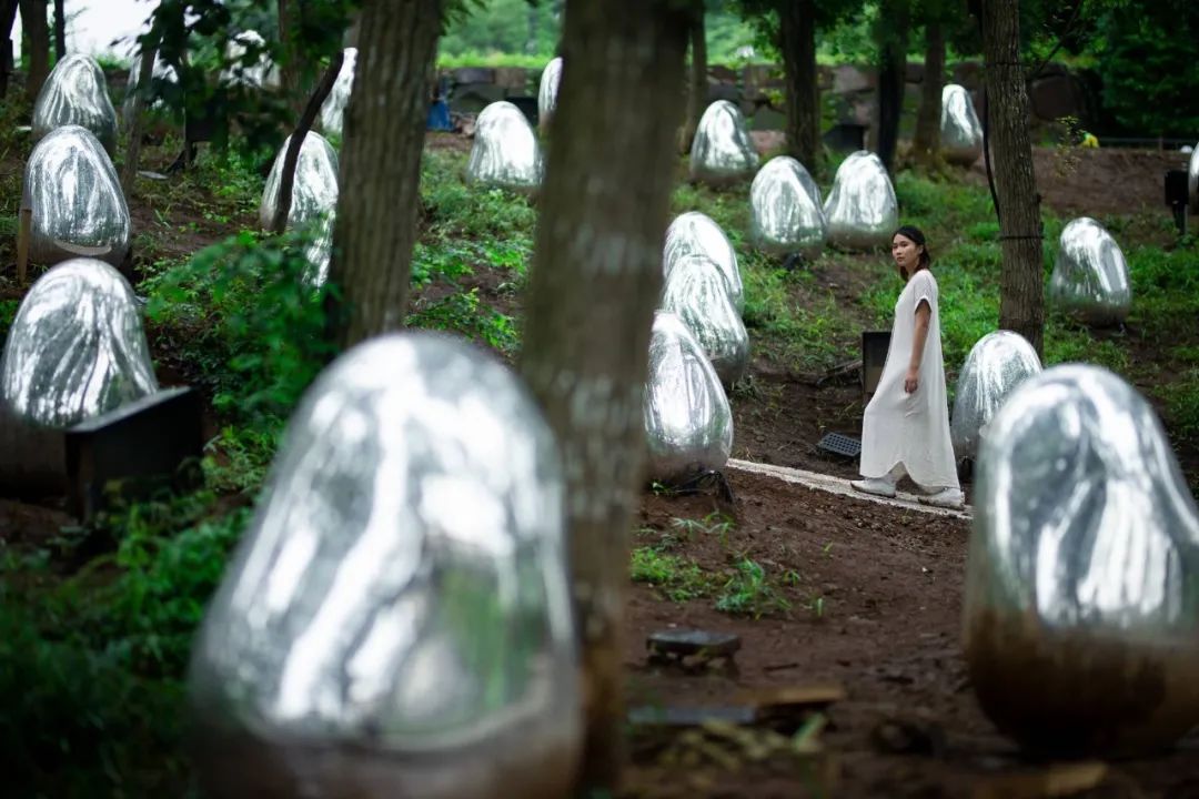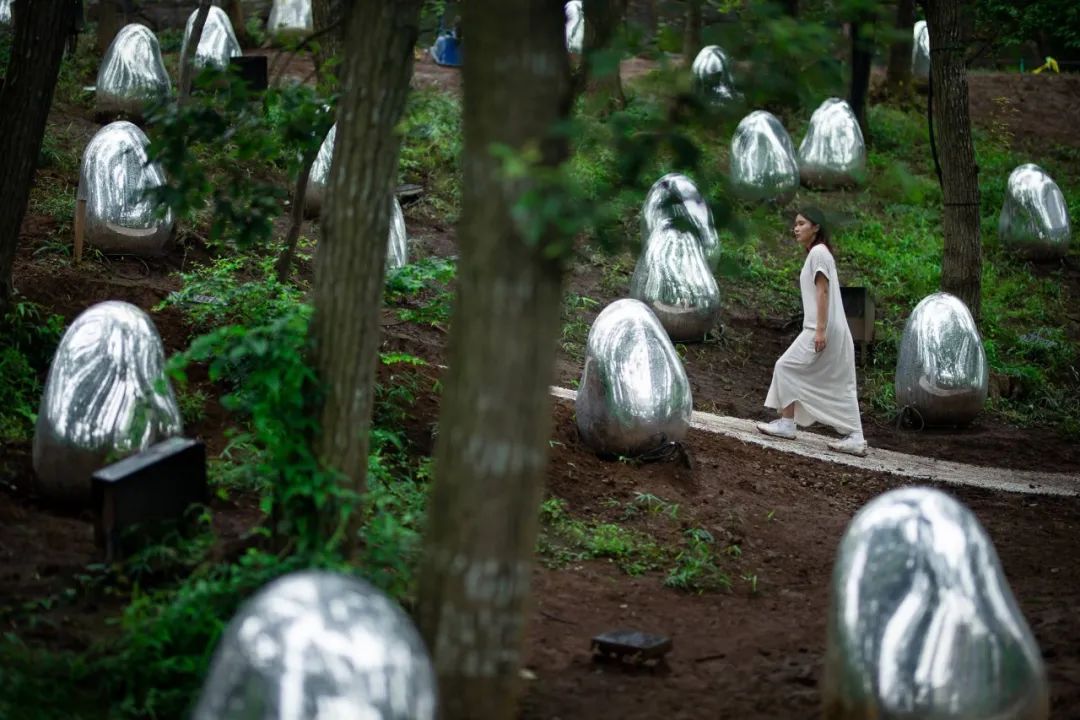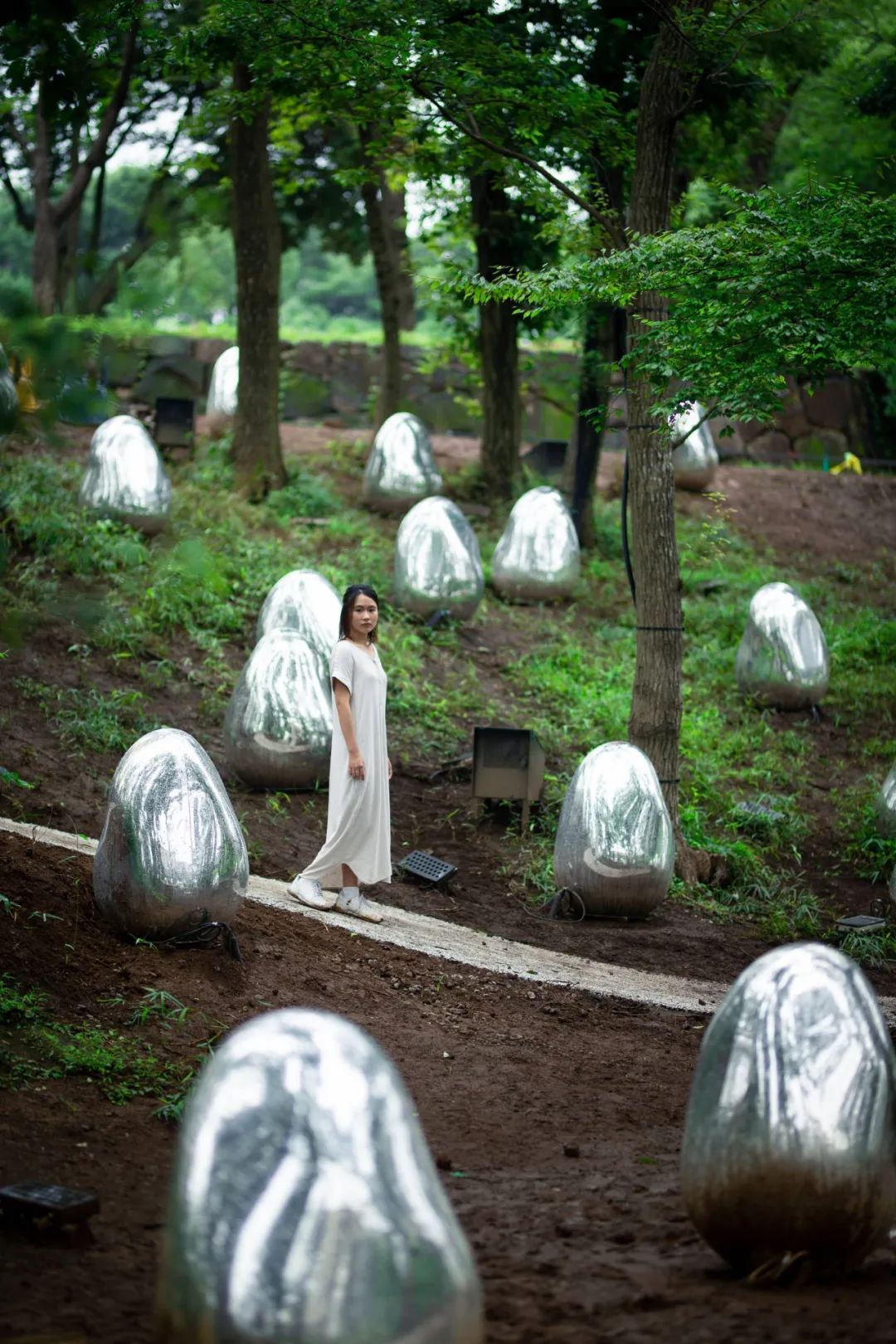 伴随着日出,蛋状物开始映射出周围的世界。当它被人推倒,或被风吹倒时,它会发出特别的音色并逐渐恢复站立。而且周围的蛋状物也会逐渐呼应,发出相同的音色,并扩散出去。