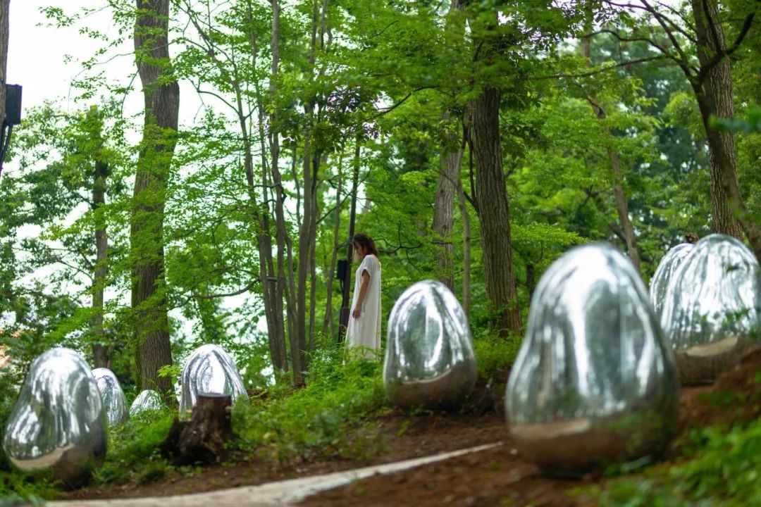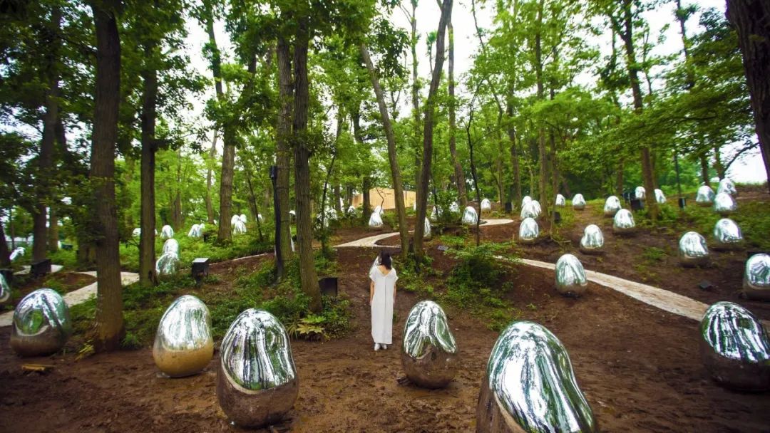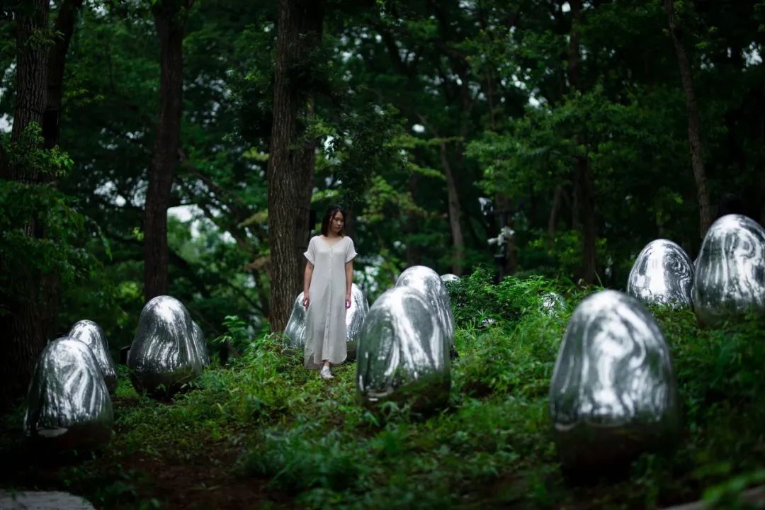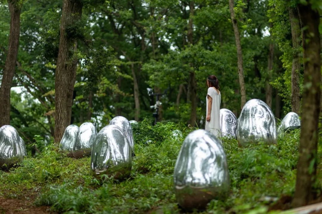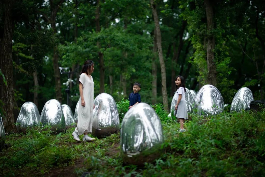 伴随着日出,蛋状物开始映射出周围的世界。当它被人推倒,或被风吹倒时,它会发出特别的音色并逐渐恢复站立。而且周围的蛋状物也会逐渐呼应,发出相同的音色,并扩散出去。