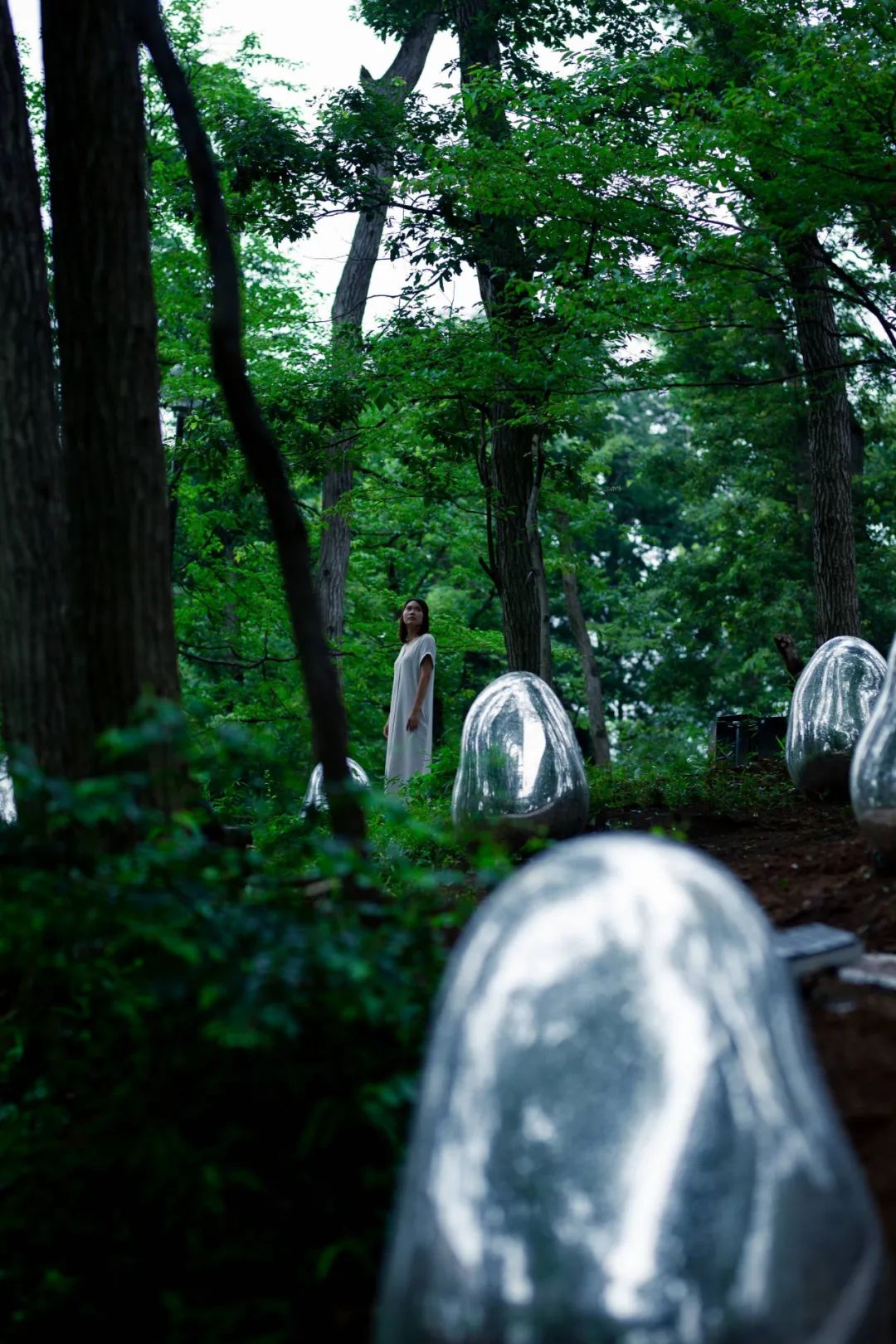 呼应之树 / Resonating Trees闪烁着光芒,群树之光会个别自律行动,缓慢的,忽明忽暗。树木的光芒是呼应了从《直立并呼应的生命 – 液化光色, 日出与日落》传播而来的光,变化着颜色,并发出颜色特有的音色。群树发出的光芒向周围的树木传播并发出音色,不断连续下去。当光芒从树木的深处延展过来时,就表示另一方有人在。这么一来人们一定会比平常更加意识到相同空间内他人的存在吧。