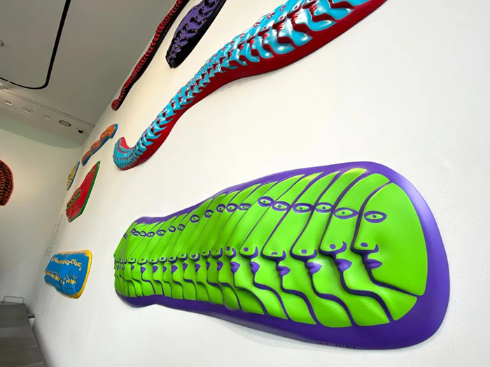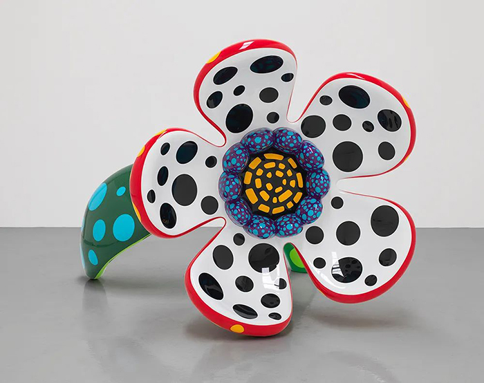 展品包括位于1楼入口处的《永远に続く女の魂》,通过铝鑄制制成女性轮廓,仿佛漂浮在空中的轻盈感,用色鲜明强烈。美术馆4楼也有立体的《天空にささげたわたしの心のすべてをかたる花たち》铜铸造作品。两件作品都是草间弥生于2020年创作的,看来她近年喜欢利用铝及青铜的材质创作。