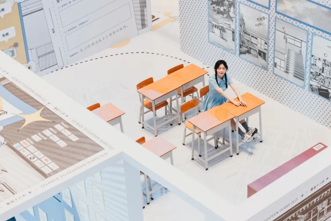最让我们感到惊喜的是,这次展览重现了学生时代的教室场景。当我们走进这个教室,看到熟悉的课桌椅,从前备战高考时的生活点滴恍惚间又重回眼前。