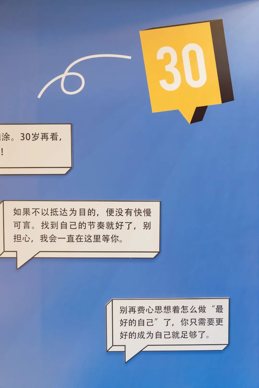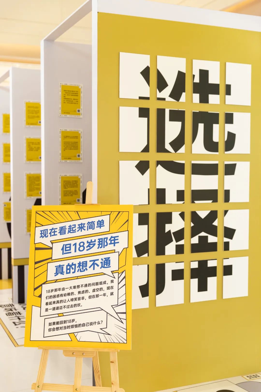 保利广场「重返18岁」的展览,让我们再次重拾这段纯粹时光。走进保利广场的中庭,最先看到的便是18岁平行时空,在这里收录了超过50位大咖的18岁故事。