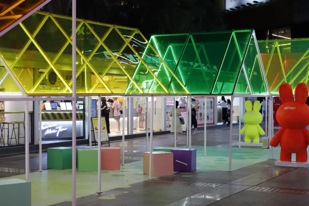 不管是白天的自然光,还是夜晚灯光都会营造出彩虹般梦幻的场景。不同角度不同时间,拍出来的照片都不一样,现场还有不同样式的小V等你来打卡哦。