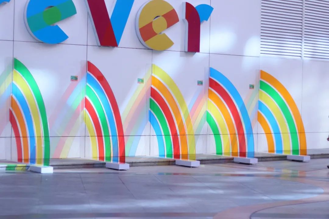 2020年暑期,VT101维多利广场以SUMMER YEAR 为主题打造夏日彩虹装置艺术展,让人眼前一亮。白天装置颜色和光线充分结合,折射出如彩虹般绚丽的光,夜晚点缀星星点点的灯光,在夜中呈现着不一样的色彩,颠覆你对夏日的全新认知。
