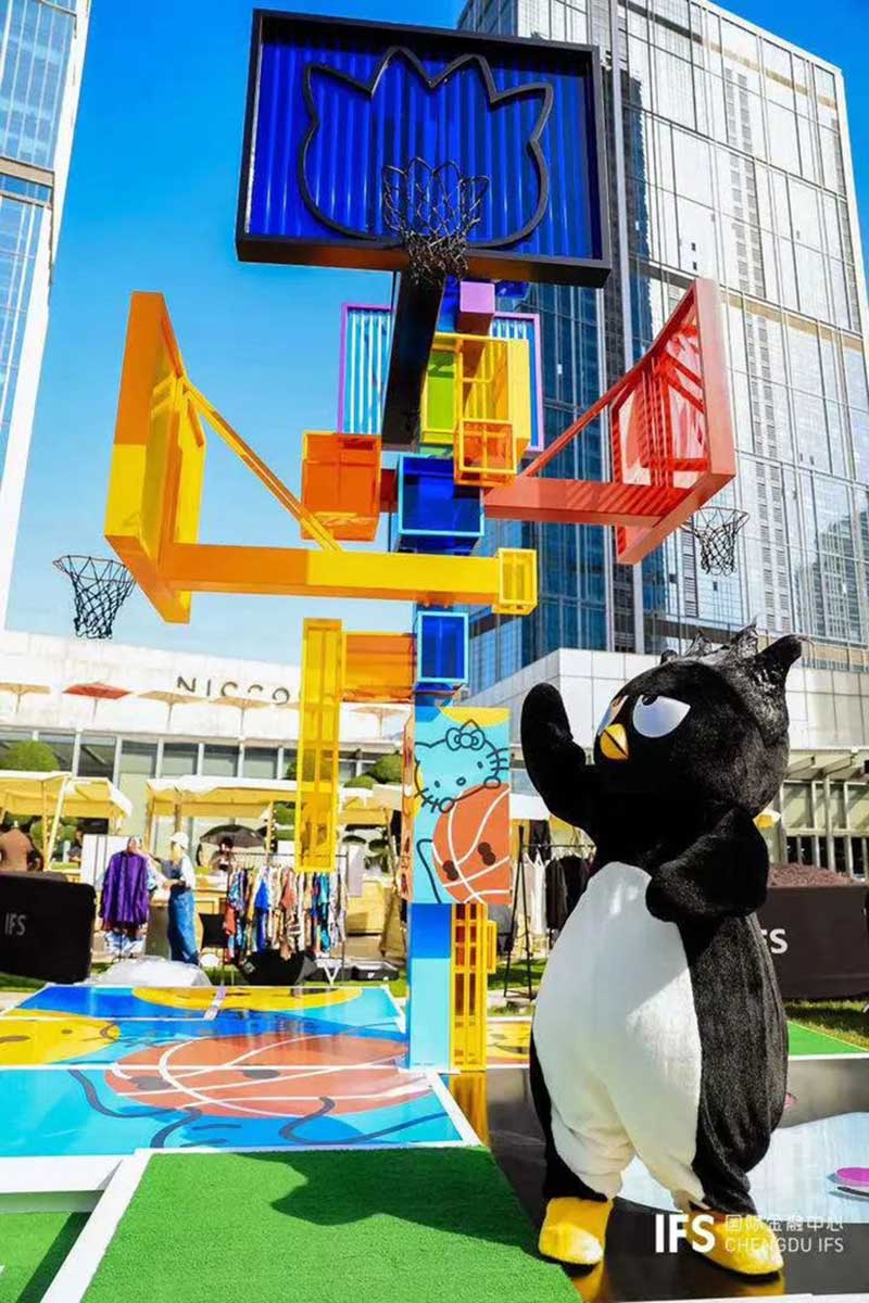 艺术家松原光创作风格的三丽鸥形象,不仅化身为成都IFS商场中庭色彩缤纷、吸引力爆表的场景互动装置;还透过数码互动小程序,让每个人有机会“定制”自己的艺术三丽鸥ID形象;在商场七楼室外庭院,崭新艺术潮流风格的篮球场吸引人们走出室外,享受动起来的快乐能量。