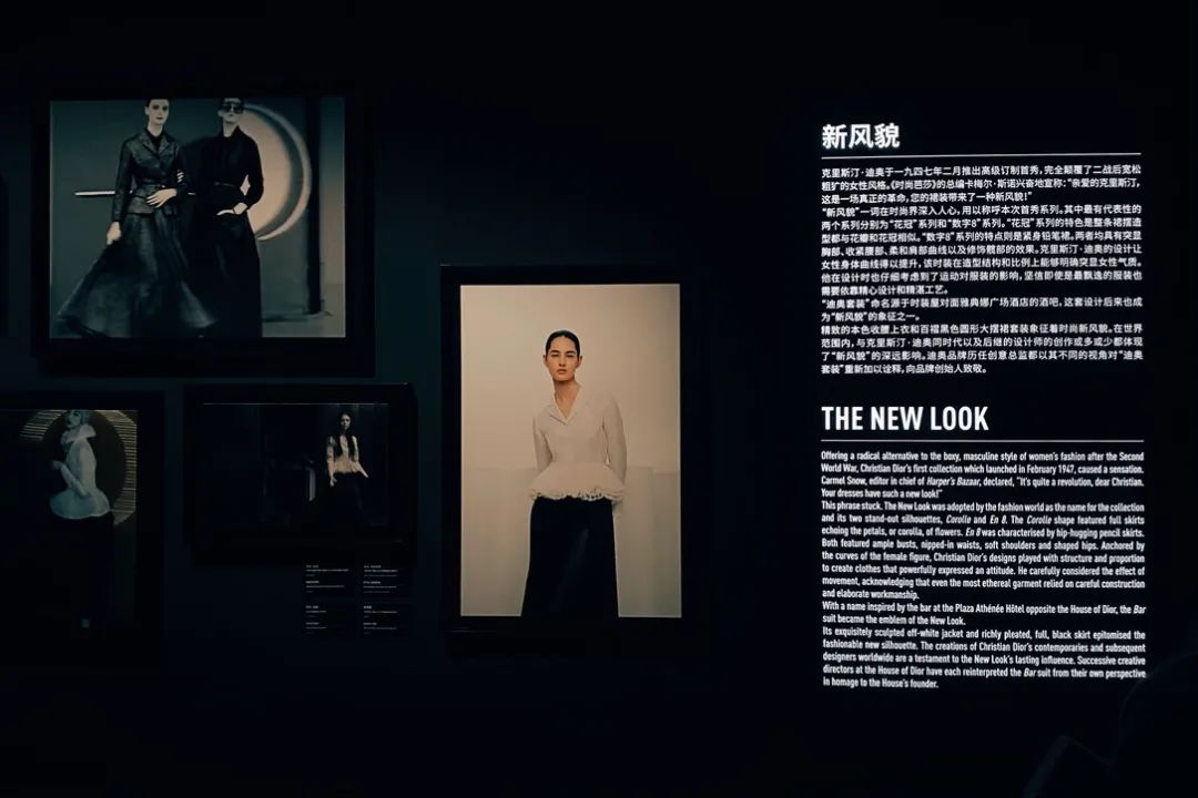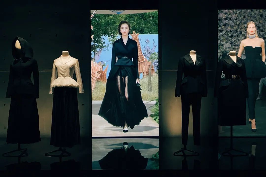 这是1947年迪奥先生的高定首秀,具有革命性意义,因此被称为“新风貌 THE NEW LOOK”,此展区除了展示系列作品外还能看到历代创意总监对此系列的致敬。
