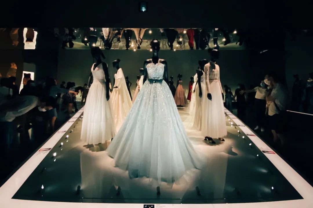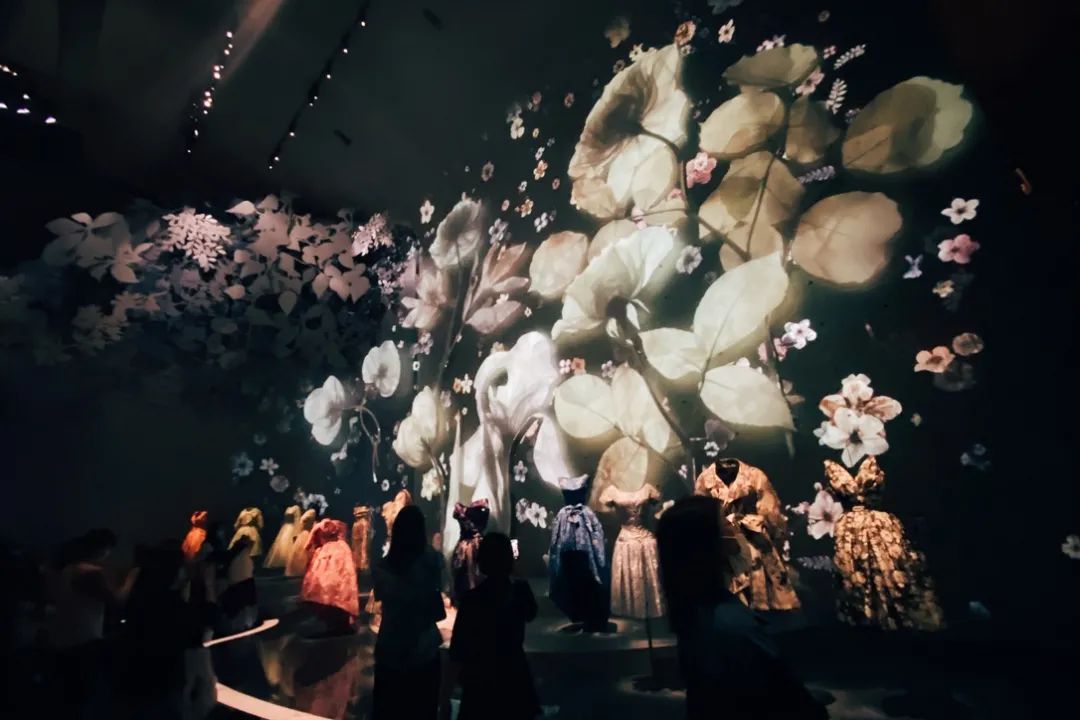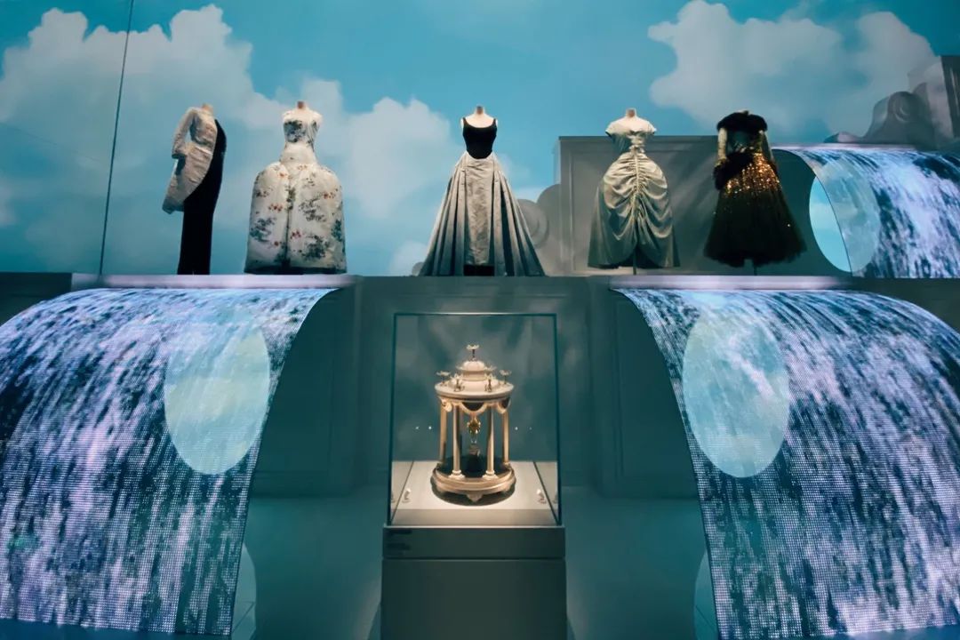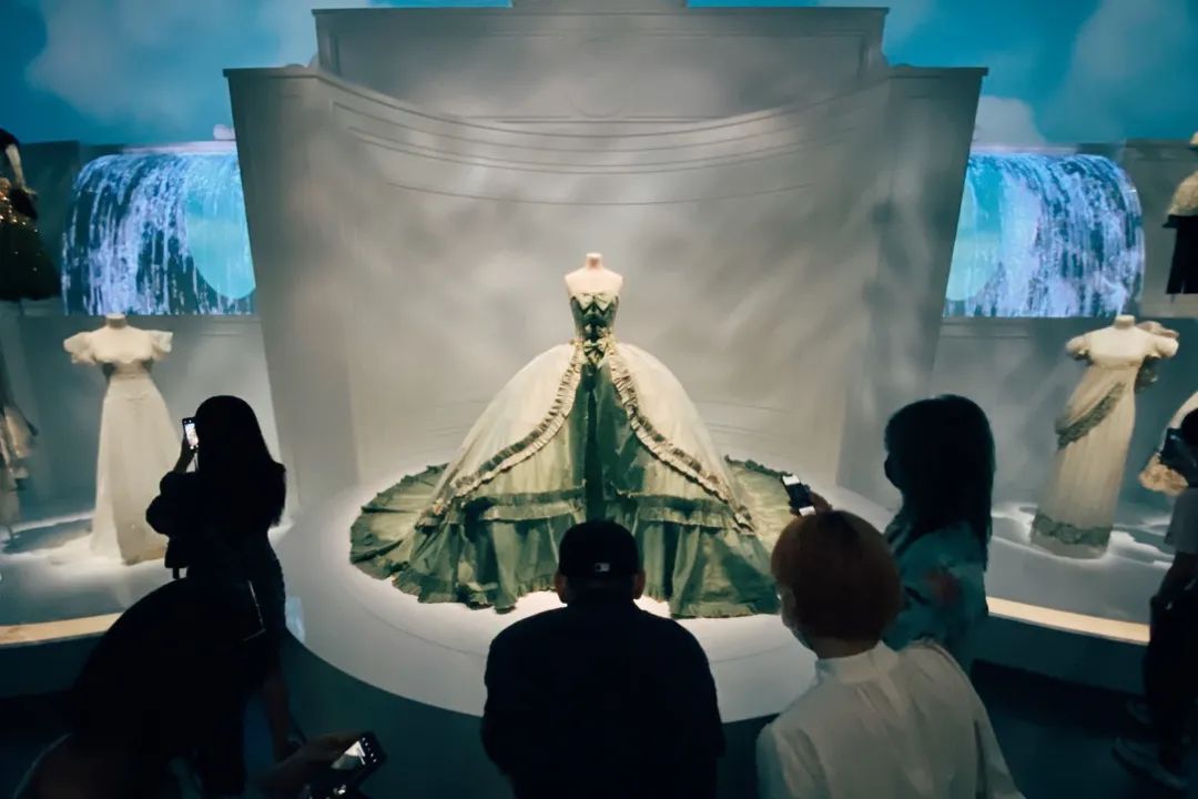 接近尾声的大场景,流光溢彩,极致华美,更像是多媒体艺术作品与服装作品的完美融合,展出的都是皇室名流、知名影星演绎过的经典礼服,也让众多观者久坐不舍。