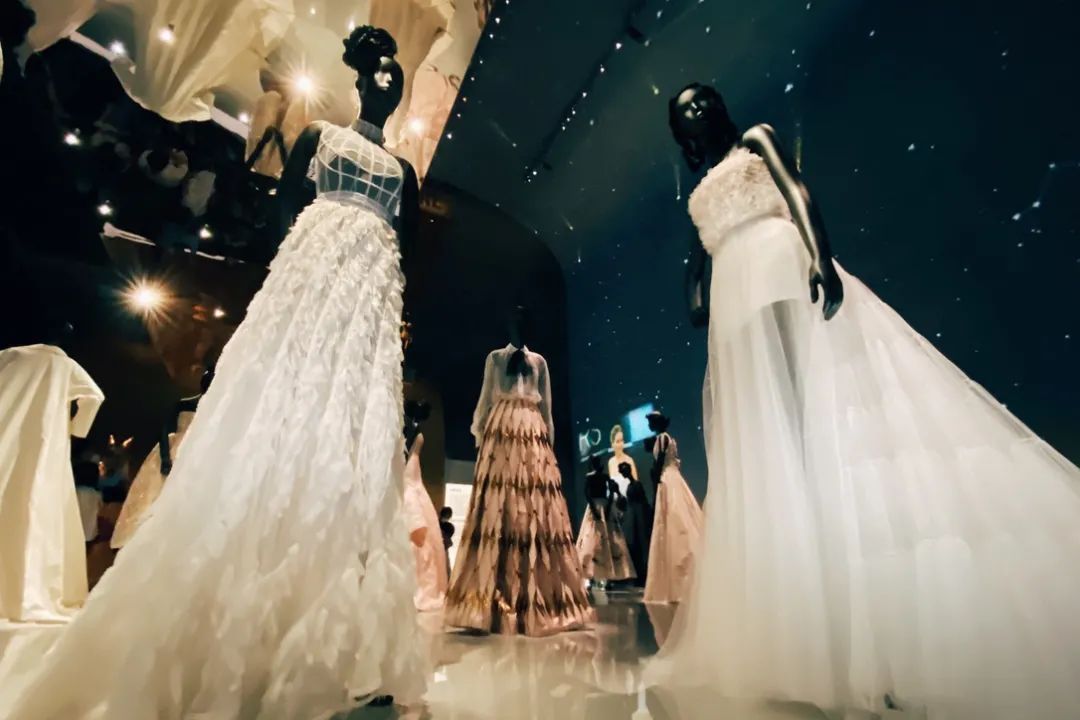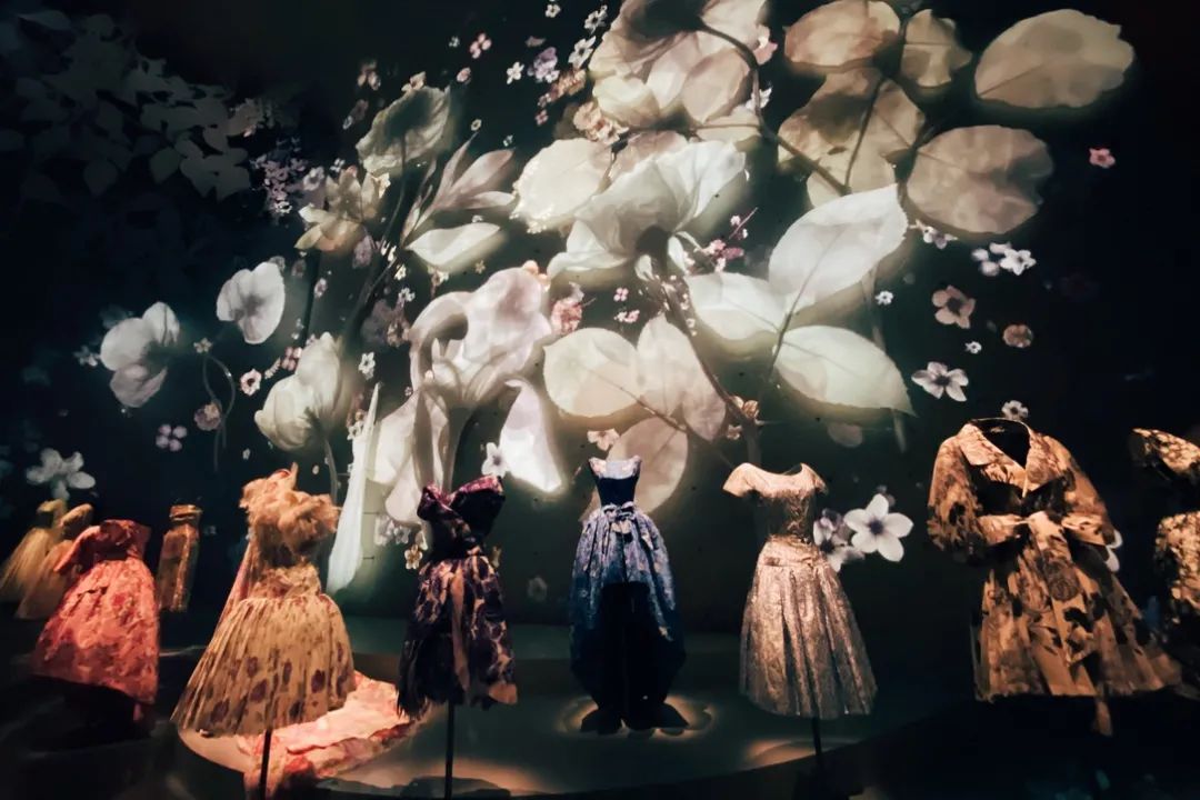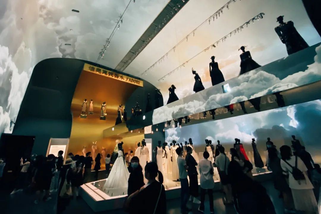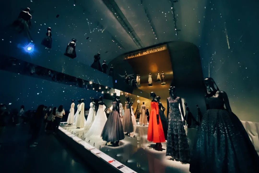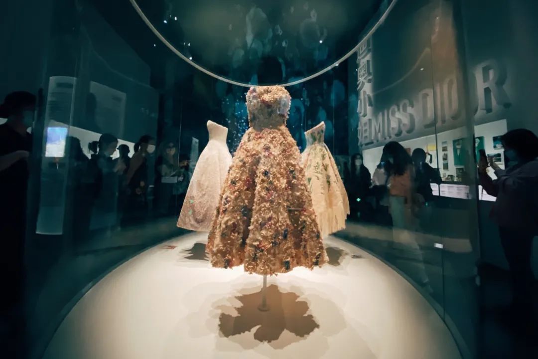 接近尾声的大场景,流光溢彩,极致华美,更像是多媒体艺术作品与服装作品的完美融合,展出的都是皇室名流、知名影星演绎过的经典礼服,也让众多观者久坐不舍。