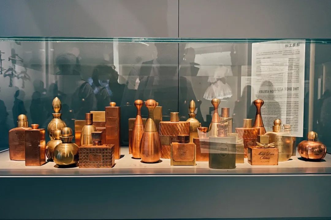 香水系列展区,这里能看到中国当代艺术家郑国谷创作的《再锈两千年》,通过真铜再现了品牌的经典香水瓶。