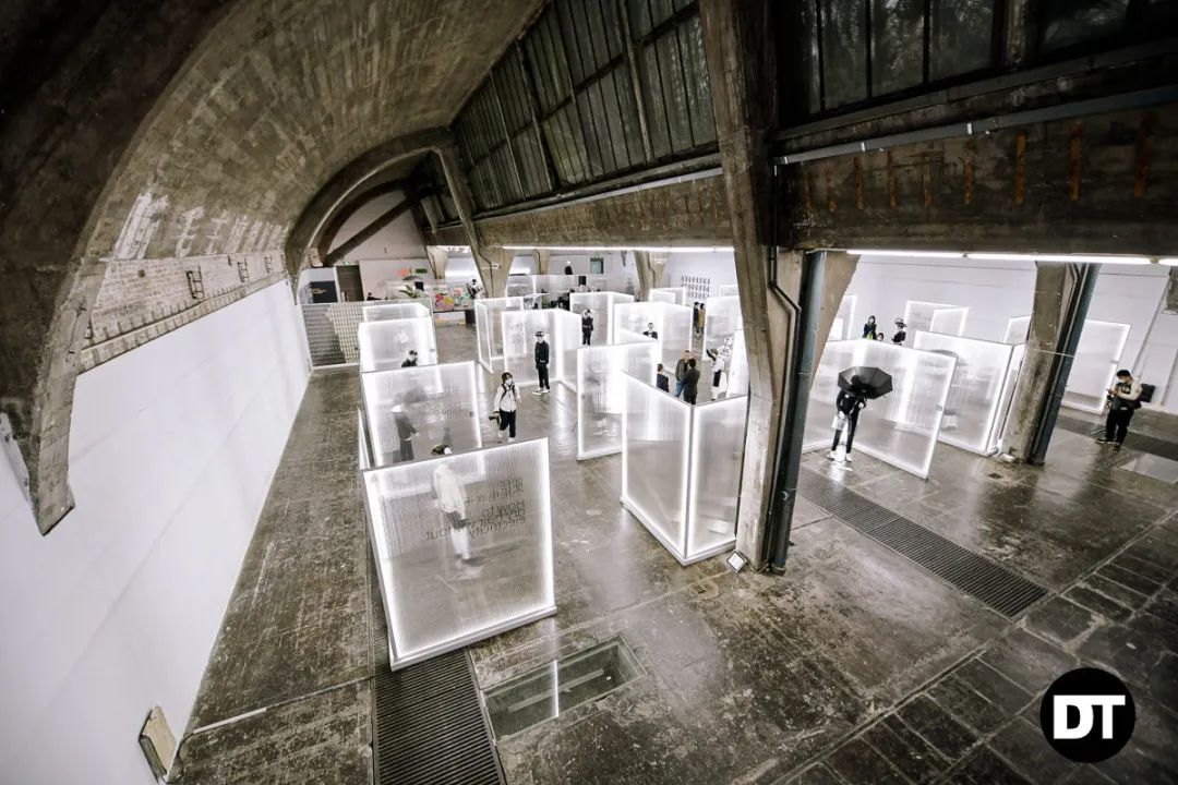 《DT艺术展》是由25件装置作品和25件绘画作品构成,呈现于798艺术园区的经典包豪斯风格建筑中。策划团队在钢筋水泥中植入光源,用极其巧思的方式分割重组了空间,让作品的呈现明确清晰,循序渐进地铺陈开来。