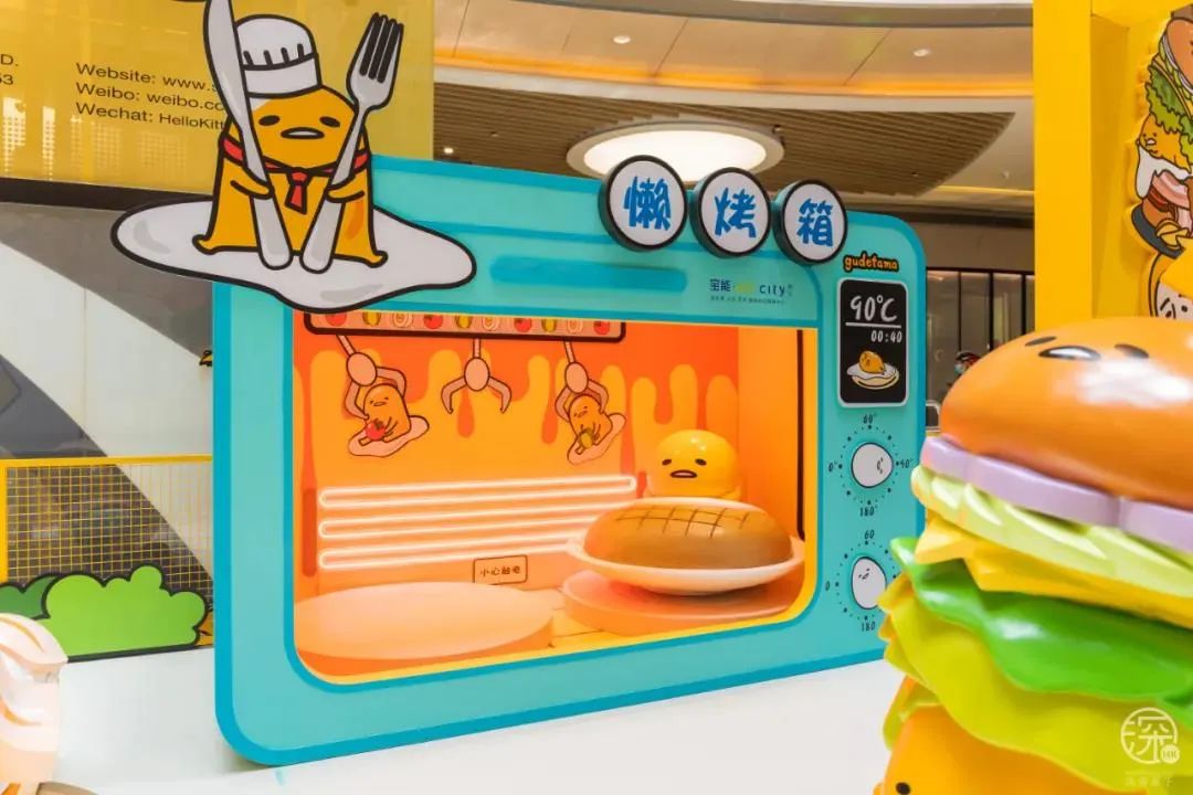 这里还有逼真的茶楼明档,各种古灵精怪造型的蛋黄哥被夹在汉堡中、躺在蒸笼里、待在烤箱中,谁能抵挡得住这样萌物呢,瞬间被治愈、可爱到了!蛋黄哥真的俘获一众小姐姐的心,而且每个角落都能出片, 真的太好拍了!