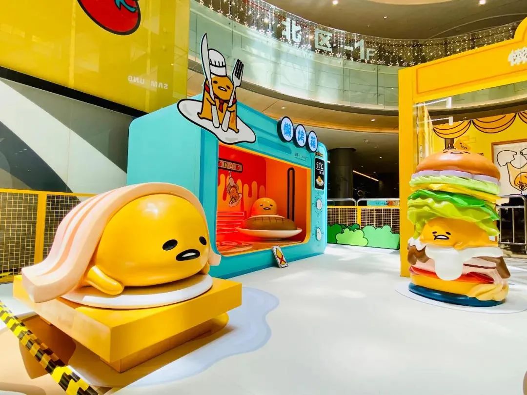除了北区之外,蛋黄哥还会出现在南区B1层哦,萌萌的表情和动作,让人只想和它一起懒着过节。