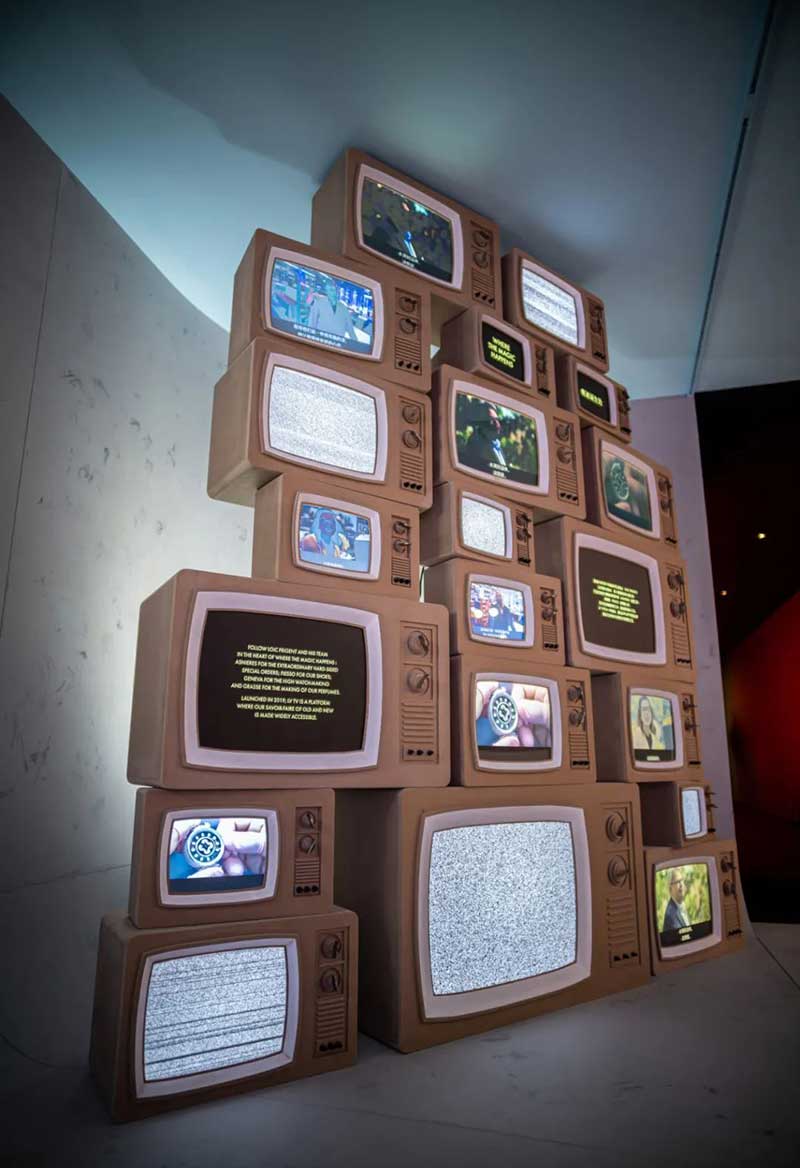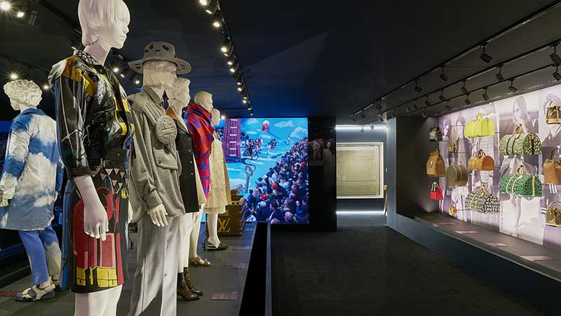 一幅耗时一年多制作的数码肖像,通过人工智能技术,让路易·威登先生年轻时的面容从一百万张其家乡法国汝拉山区的风景照片中浮现出来。在青年路易的迎接下,访客沿参观动线,将经过以品牌成衣创作为主题的展厅,紧接着是陈列经典皮具的展区,再逐步沉浸到路易威登世界的其它天地。倒数第二间展厅中放映品牌精湛技艺的影片,访客能够领略精彩的幕后故事。本展览在七大主题中,汇集了一系列卓越的当代服饰造型和二十世纪初的旅行硬箱,还有艺术合作项目及标志性的皮具创作。