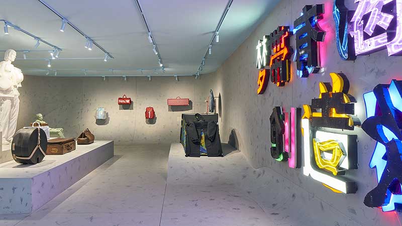 《SEE LV》(看见LV)展览还展出了ARTYCAPUCINES手袋系列的第二波作品,在此次的艺术合作项目中,可以见到中国当代艺术家刘韡和赵赵的设计。路易威登品牌好友、生于武汉的艺术家何岸再次受邀合作,展出他为品牌特别创作的霓虹灯作品。