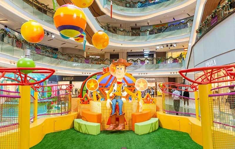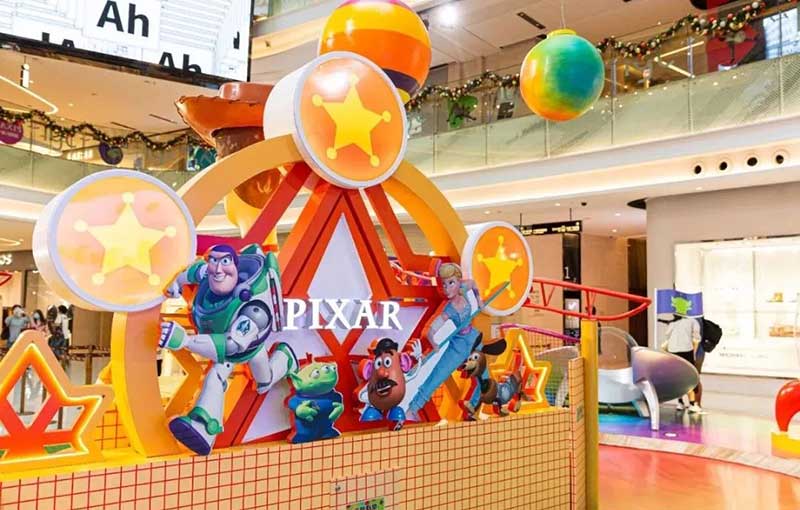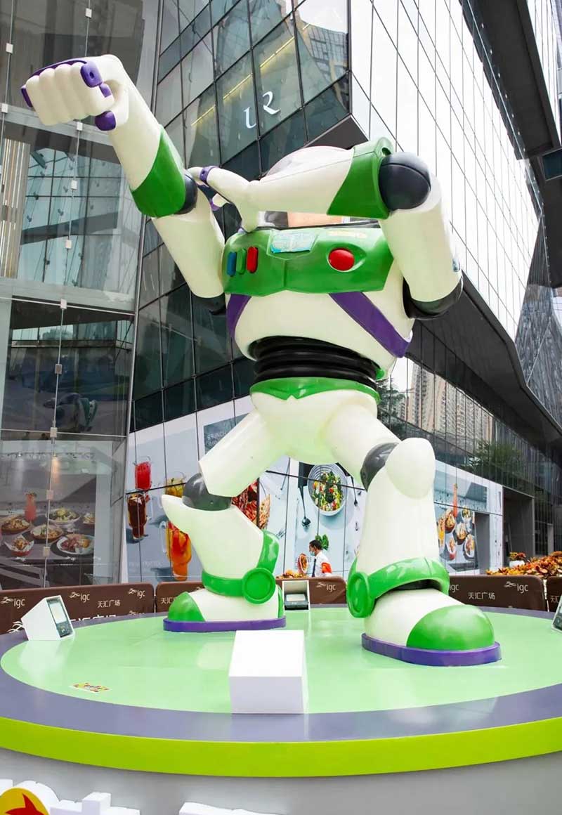 天汇igc新展来了,是我们熟悉的皮克斯主题,在这里你可以看到5米高的巴斯光年,还有胡迪、三眼仔、海底总动员….由室外玩到室内,准备好相机!进到里面你会看到巨型夹公仔机、海底电子金鱼缸、娃娃墙、映象站…好玩又好拍。还记得小时候看TVB粤语版,巴斯光年那句“太空战士,一飞冲天”非常上头,现在这个太空战士就是一飞冲天的姿势驻守在西南门。