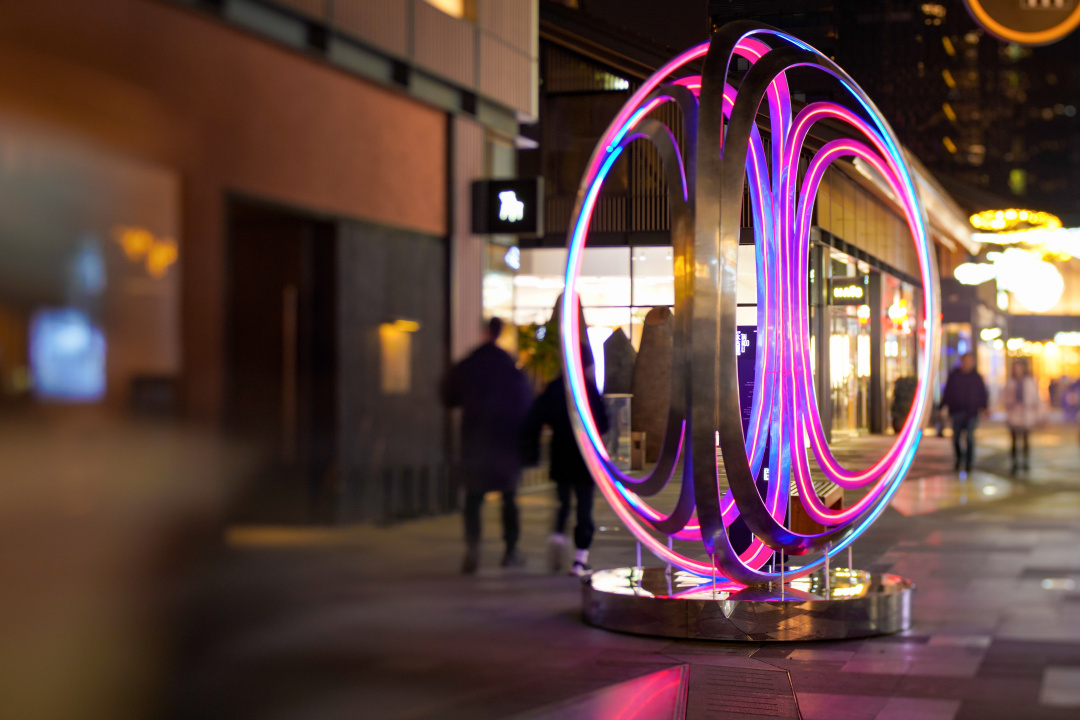 成都远洋太古里“留步·放想”冬季主题活动于漫广场正式拉开帷幕,五件艺术作品将浩瀚宇宙的经典元素一一呈现,营造富有科幻感的节日氛围,在这个冬季引领公众一道探索人与宇宙之间的关系,与身边的人共同分享暖暖爱意。