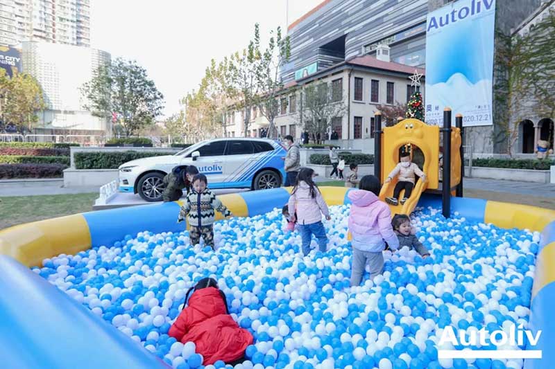在长宁来福士绿地中央,奥托立夫为孩子们打造了一个缤纷有趣的互动空间:高大艳丽的瑞典木马、被海洋球包围的滑梯、摆满小熊玩偶的娃娃机…孩子们可以在这里尽情释放自己的好奇心。奥托立夫为前来参观的小朋友们准备了一个个可涂鸦的安全气囊,邀请各位小画家们拿起画笔、开启脑洞,完成属于自己的气囊DIY。