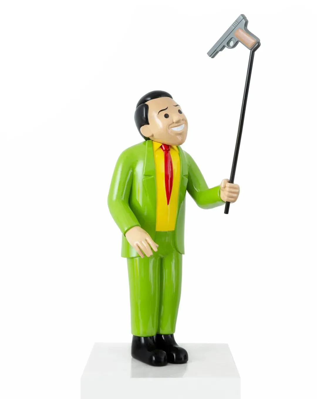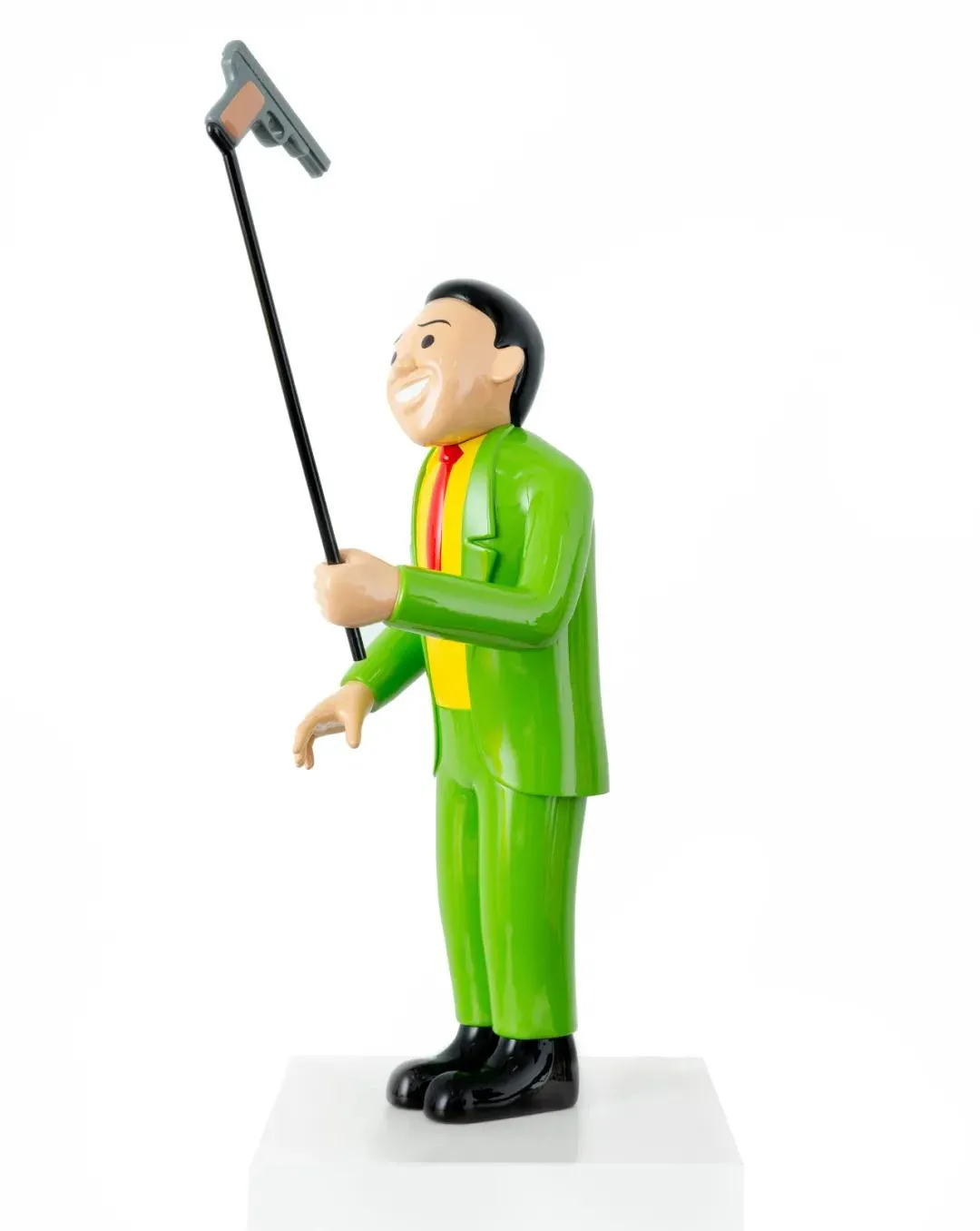 科内拉的著名雕塑《自拍枪》就是绝佳例子。在本作中,一名男子手持一支自拍棍,眼神空洞,面上挂着一个虚浮的微笑。有趣的是,这支自拍棍上不见智能手机,反而换上了一支手枪,枪口正对男子的笑靥。此作的另一版本为《闭路电视》,以一台监控摄录机取代手枪。科内拉借着这些雕塑作品对现代人沉溺自我形象的社交媒体文化提出强烈批判——不过,作品背后的真正讯息(如有),仍然含糊不明。