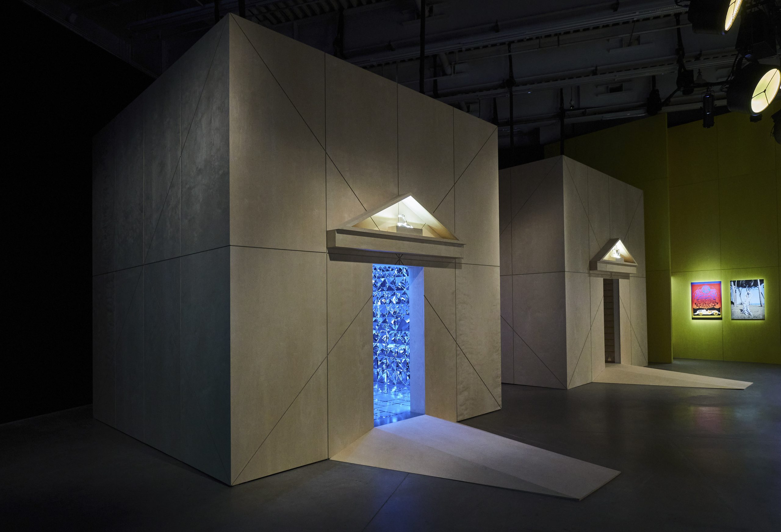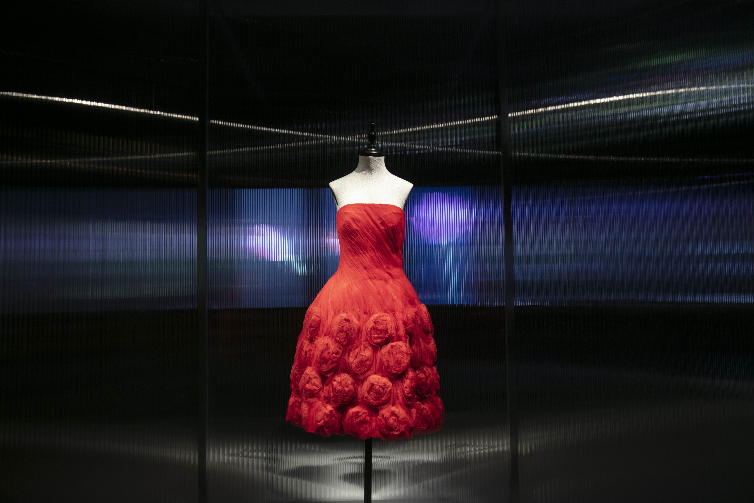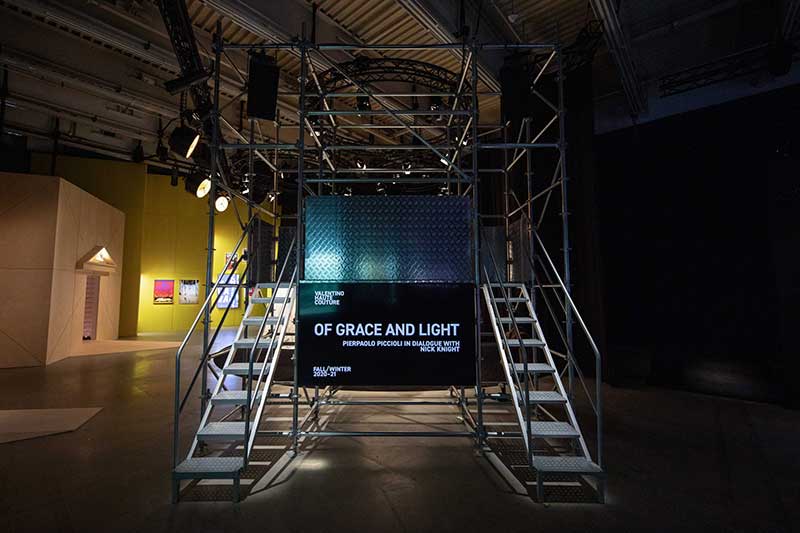 在这沉浸式的空间内实现了当代艺术与设计领域的兼容并蓄,我们可以看到华伦天奴从过去到现在的所有典藏之作:铆钉、玫瑰配饰、轮廓巨大的的秋冬2020高级定制华服, 当中更包括优秀艺术家曹斐、Jacopo Benassi、Jonas Mekas、Stanley Mouse、Robby Mueller、Quayola、Anna Ridler、Rachel Rose、Solve Sundsbo、Natalia Trejbalova e Weirdcore 的作品。