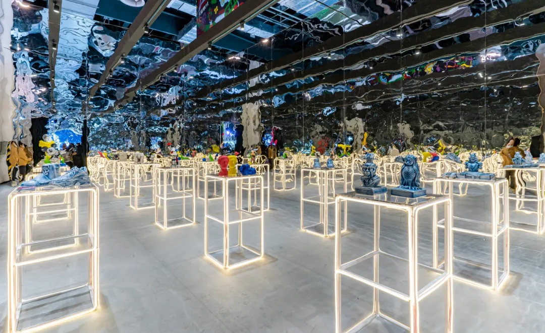 还有一处超吸睛的彩虹之境,这里展示了众多家居潮牌,别具一格的家居椅,前卫而独特的潮流风格,让人忍不住停下脚步欣赏。最后进入四周都是镜面,打造的神秘魔方区域,镜面与空间的潮流碰撞,让每一个观展者都有别具一格的感受,而在这里展出潮流单品,每一个都“大有来头”,只要亲临体验酷炫现场,就能感受设计就是要好玩的真谛。