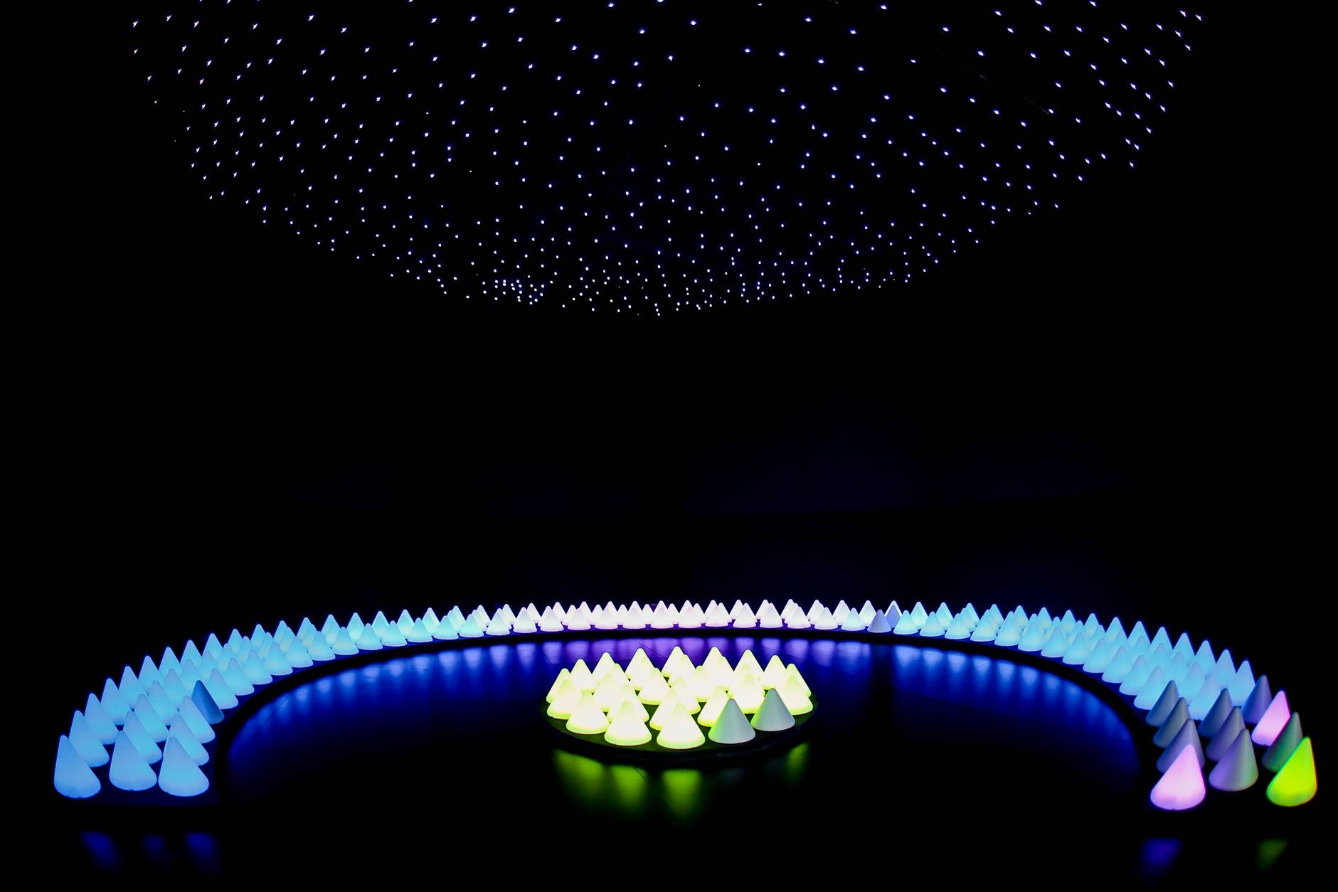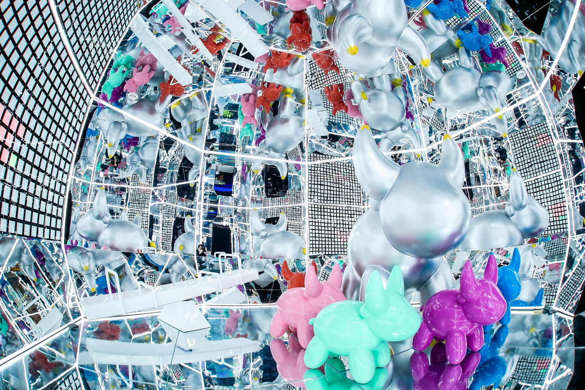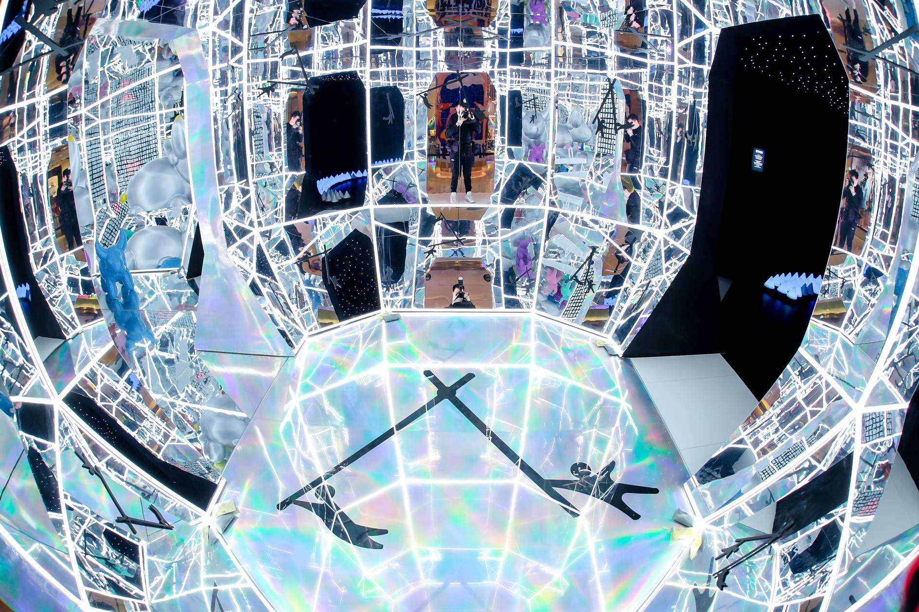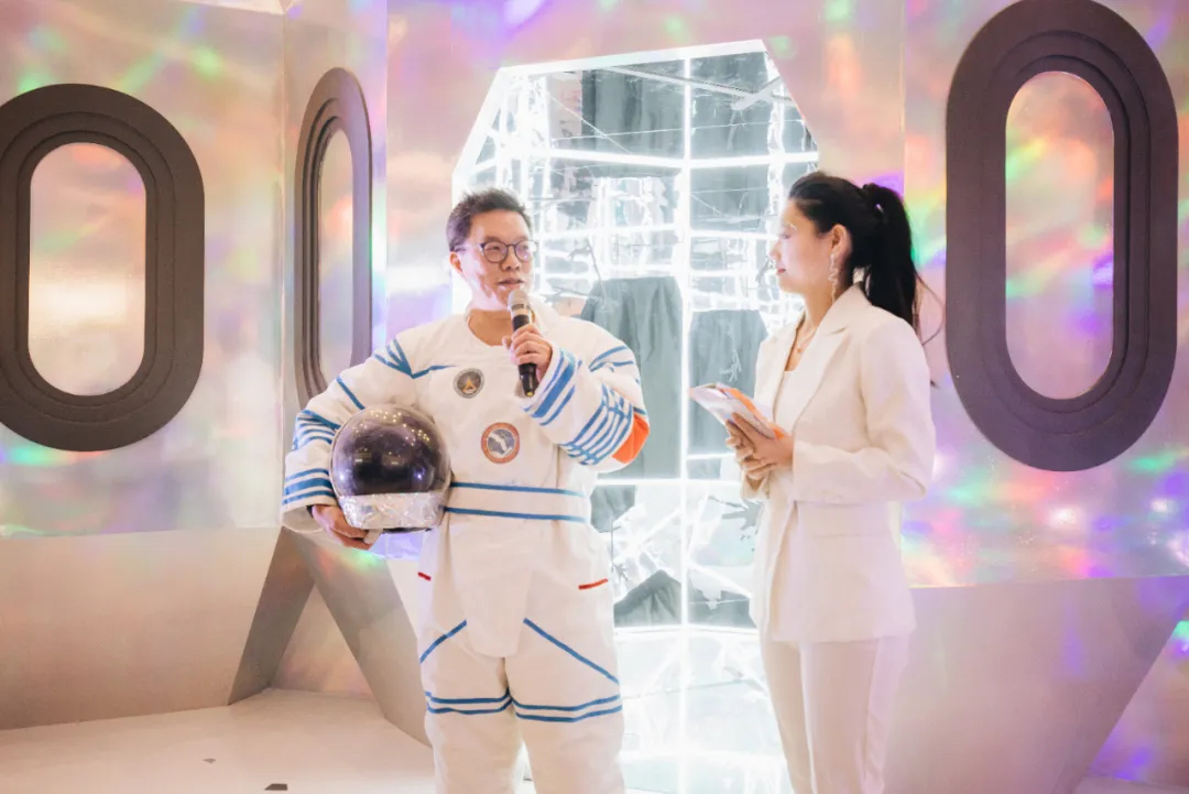 在童真境界,充满着小朋友喜爱的元素,大型牛牛公仔、跷跷板、哈哈镜和通过触摸展现不同图案的像素墙……大朋友也会在这个空间里找到儿时的旧时光。走进当下之光,空间里有着荧光闪烁,可以照亮脚下的位置,好似站在当下生活的中心,看着光依次扩散,感受这个由光点亮的治愈世界。在未来诉语空间能听到这个宇宙中各种熟悉又未知的声音,感觉像是脱离了现实,在聆听、想象未来。