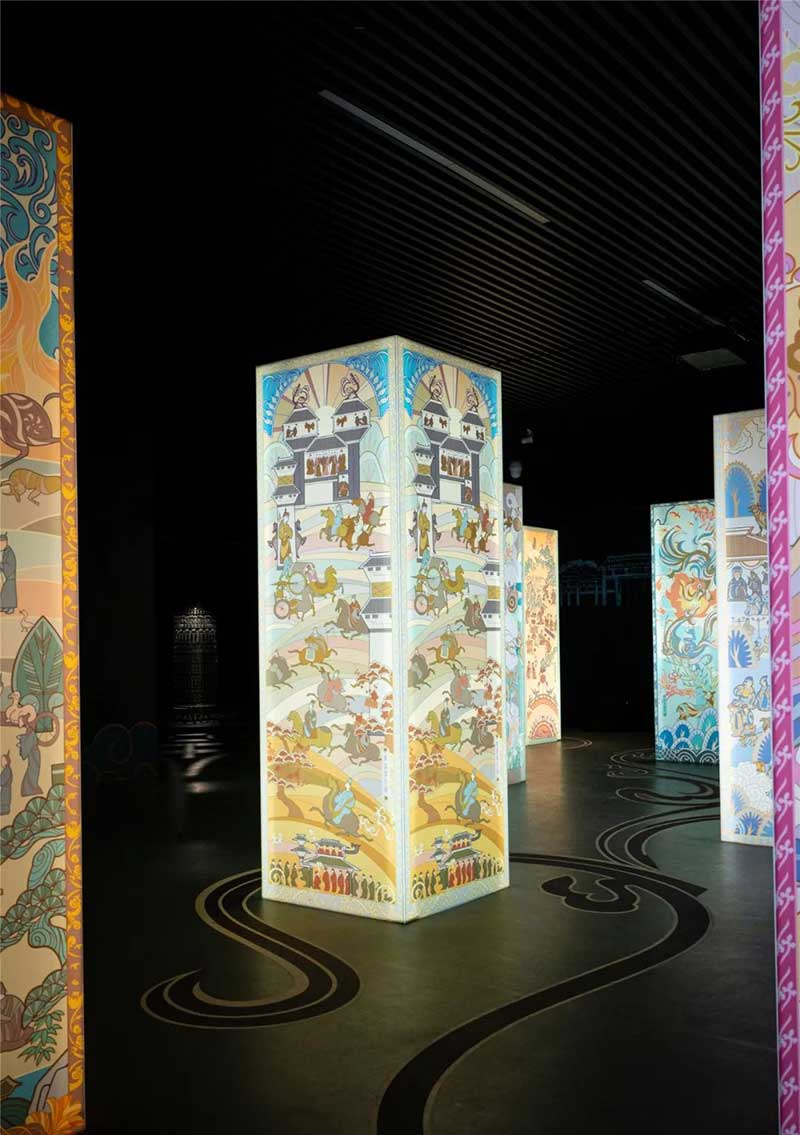 上海宝龙美术馆再放大招,用一场沉浸式的美学体验展带你跨越2000多年的时光,回到公元前202年,一起感受大汉王朝恢弘的气度和辉煌。在红色的幔帐之间缓缓前行,耳畔响起了金戈铁马般的呐喊,路的彼端,天马呼啸而来,带你正式进入这个浪漫而又奇幻的世界。气势磅礴的巨型天马雕塑装置,为你再现了丝绸之路的拓展过程,配合着声光影像,营造出了无与伦比的视听体验。早高峰日常、烧烤指南、公园音乐会等七个拓印自汉画像石的灯柱陈列在你眼前,上面的图像经由妙趣横生的二次创作,为你详细展现了两千多年前的生活场景。