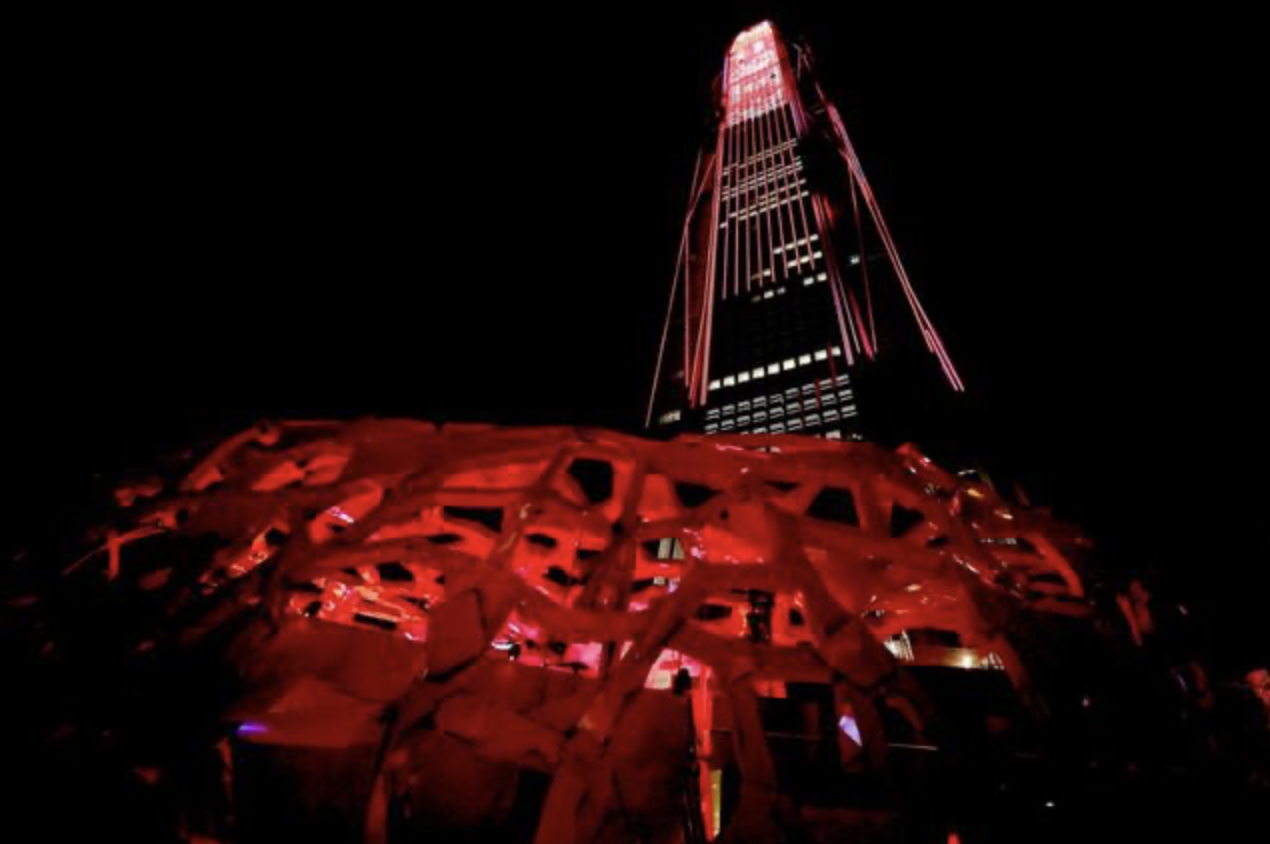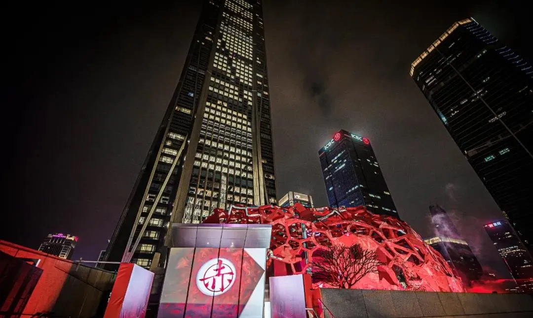 在活动开幕之夜,艺术家携手众位到场嘉宾由装置内部开启灯光秀,点亮「赤子心」、点亮深圳平安金融中心大楼及福田区中心数百栋大厦,用文化艺术点亮城市。「赤子心」是中国青年艺术家任哲先生通过光影、声音、装置艺术的多元化表现手法,联动艺术、商业、娱乐、公益项目,力邀百位名人加盟助力,发起的一次全社会共同参与的艺术项目,旨在唤起人们心中的赤子之心,激发全社会与其精神内核产生共鸣。