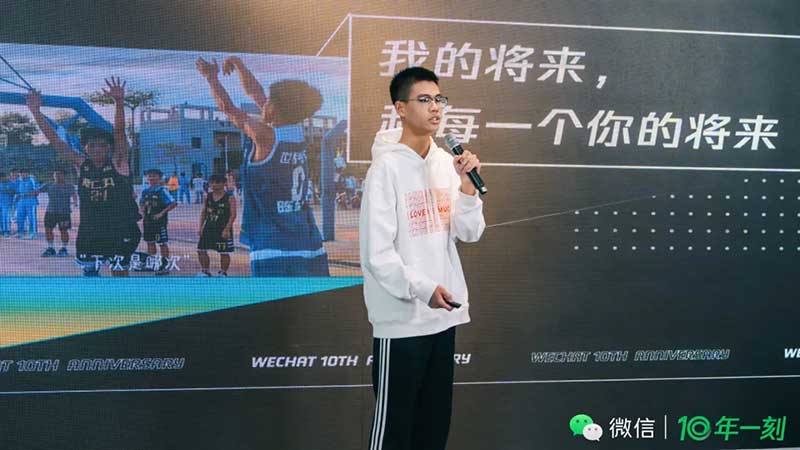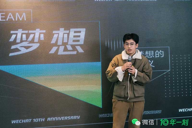 除了有趣好玩的互动区域,在微信十周年展览现场,还有一场小宇宙的碰撞正在发生。8位志趣迥异、旗帜鲜明的微信年轻用户,带着他们关于生活兴趣、思考记录、梦想追求的故事,来到微信十年一刻「微信新声代」主题 Talk。十年一刻,山川湖海,他们分享自己的高光时刻,也聊聊如何走出自我瓶颈,如何把握住微信十年带来的变革和机会,让生活和成长找到新方向。