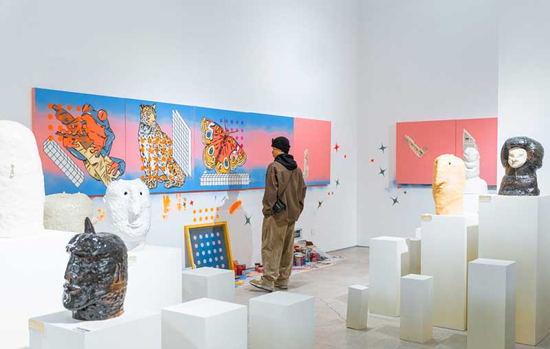「叙事消费」主题展是安云最新的展览位于安云的3楼。展览以当下热议的消费主义为背景,邀请了17位当代艺术家以“无休止城市”为概念来进行创作,让大家在观展的同时也去探讨艺术与消费之间的关系。「叙事消费」的命题也让这场展览变得更加真实,展览中的所见的一切你都可以为之付款,甚至是陈列作品的每一根柱子,这让这场展览也更加富有趣味性。