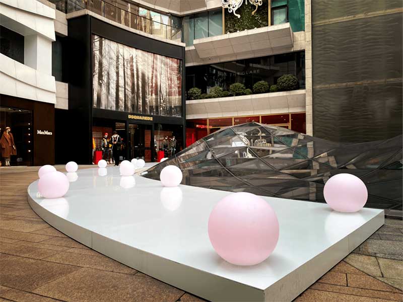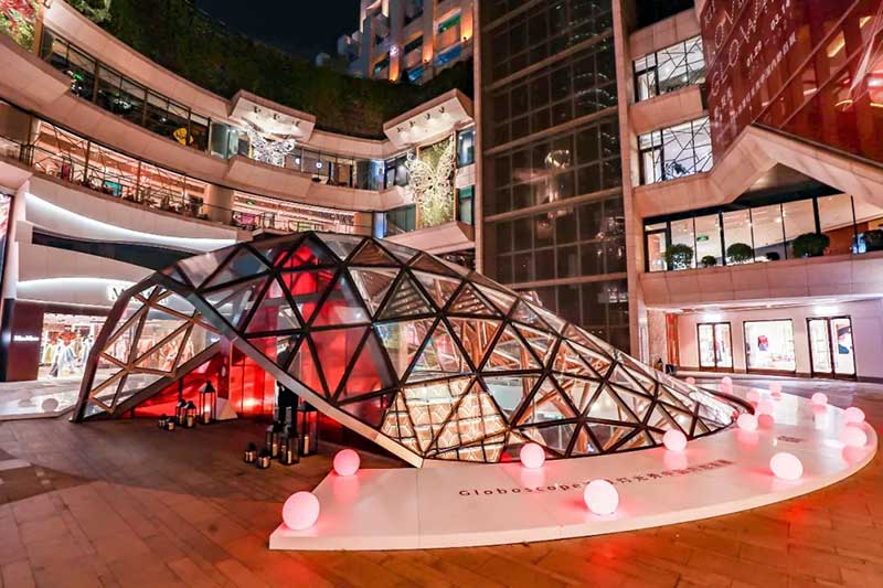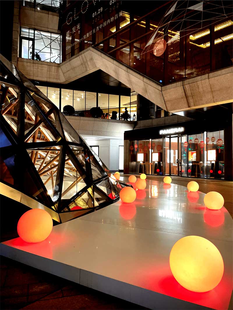 作为内地首展,本次 “Globoscope” 浪漫灯光秀由法国 Collectif Coin 设计团队策划,配合上海 K11 入口处和六层车库的在地场景进行改编,用 200 多颗小圆球点亮城市星光,以程序编排出独一无二的光影效果,打造了更适合中国双节期间的热闹氛围,为你奉上一场只能在上海 K11 看到的浪漫灯光秀。