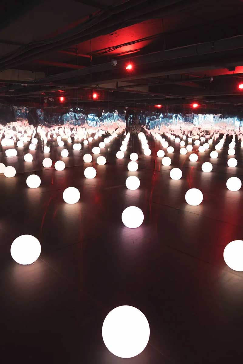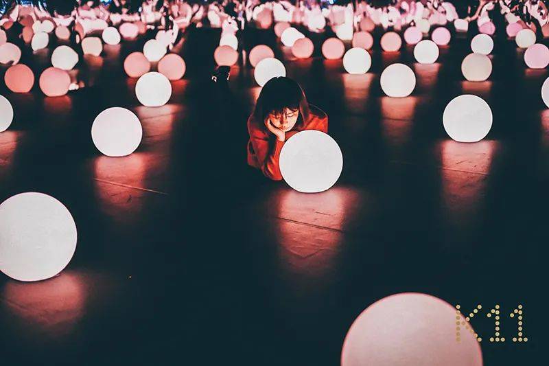 你可以在 K11 六楼展览现场的 175 个同步发光的小圆球点点灯光包围下,沉浸式感受大自然光与人造光影的融合,这些简单的发光体,结合音乐富有节奏的闪烁,时而温柔、时而强烈,时而规律,时而纷乱……置身其中,近距离欣赏小圆球角交织的光影灯效,缔造关于爱与温暖的难忘回忆。在光影之中,找到陪伴和疗愈,用爱点亮未来、让爱就此发光。