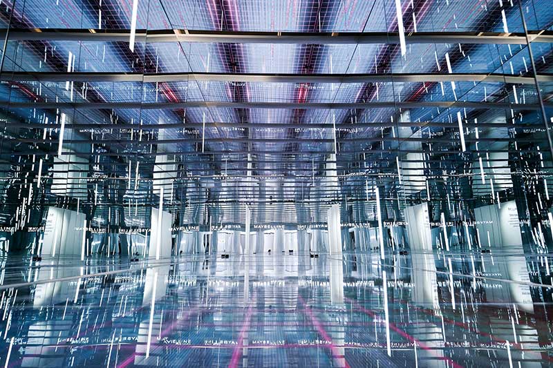 360 度镜面通道连接着现实空间和美宝莲纽约概念空间,踏着羽绒弹力效果的地面,仿佛在云间漫步,身临其境。通道尽头,映入眼帘的是弹力、饱满、跳跃的“嘭弹”小枕头,从视觉上将绝色持久丝绒哑光唇釉的使用感生动展现。随后便可以在体验化妆间试用这一全新系列,上唇感受其如羽绒绵密的质地,并在艺术空间中拍摄光感大片,浓郁鲜明的唇色顷刻呈现。