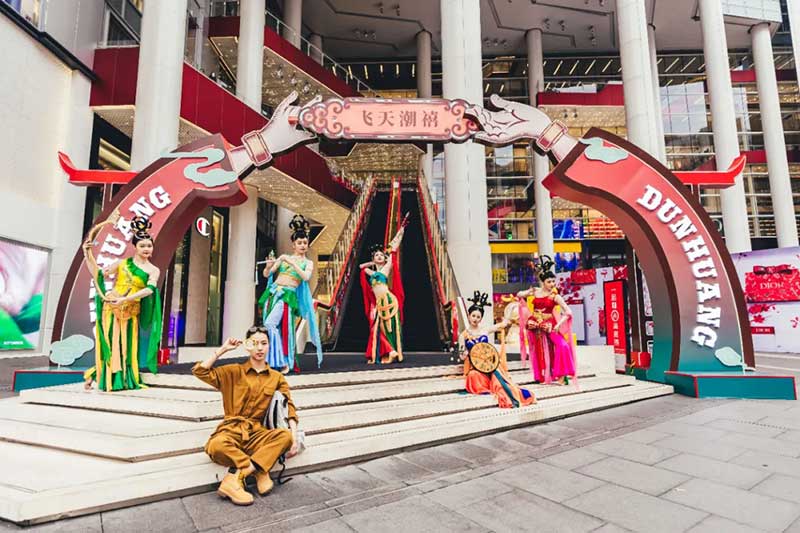 位于上海世茂广场M层东区MORE LAB 艺术公共空间的「飞天潮禧」主题展览今日已上线,还带来飞天舞巡游,婀娜多姿的飞天仙女,在唯美的音乐下舞动着,仙气缥缈,拉开了「飞天潮禧」的序幕。