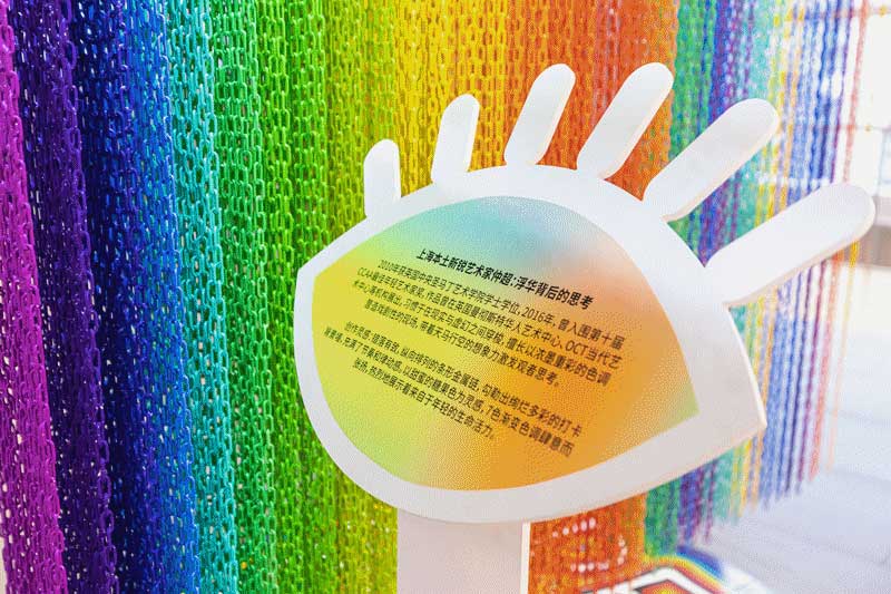 在商场西区L3层,寓意“丝绸之路”的飞天彩带穿梭于圆形屏风之间,独特的美陈造型勾勒出丝绸之路的九曲蜿蜒,将千年风潮流转其中。还有来自上海本土新锐艺术家设计的艺术装置,浓墨重彩的色调营造戏剧性的现场,带着天马行空的想象力激发人思考。
