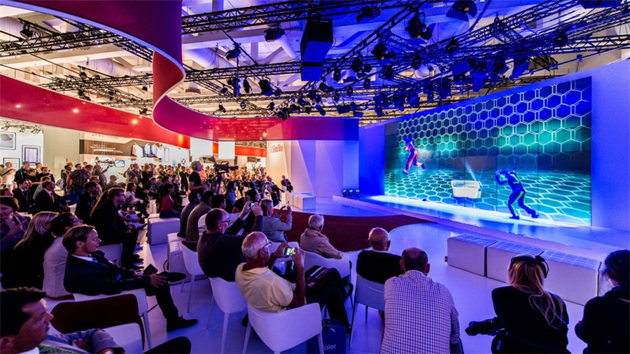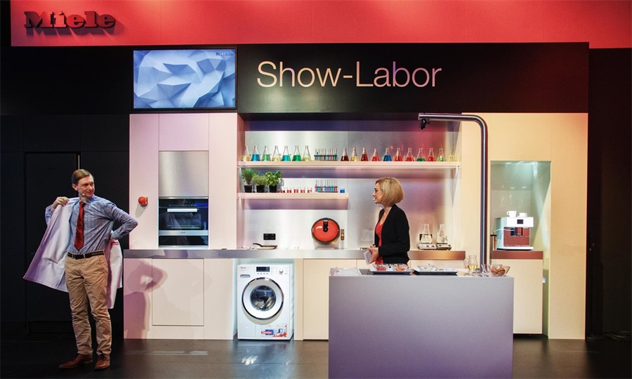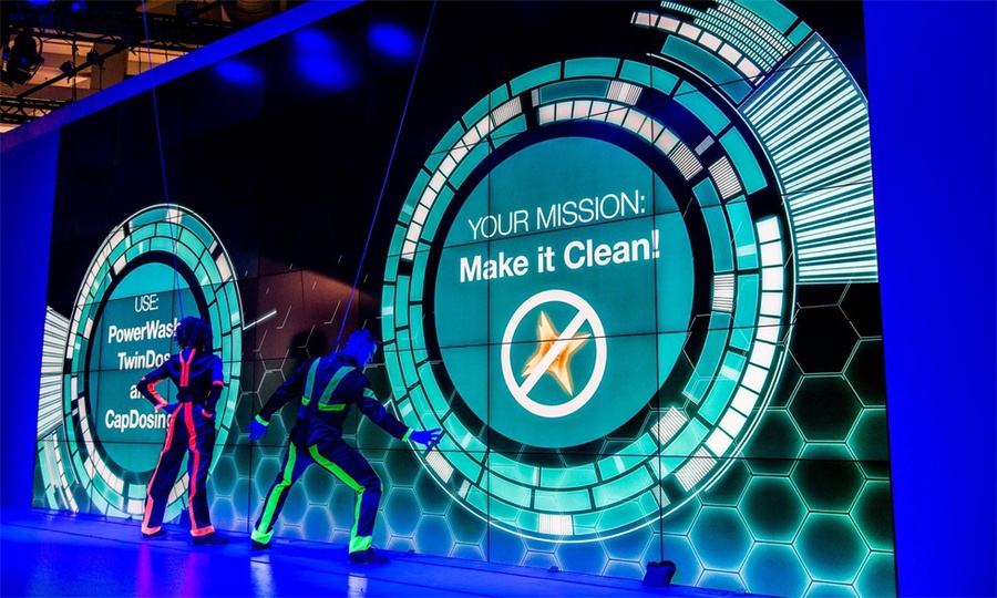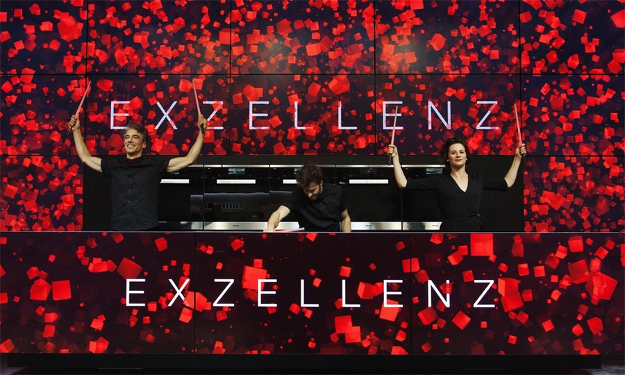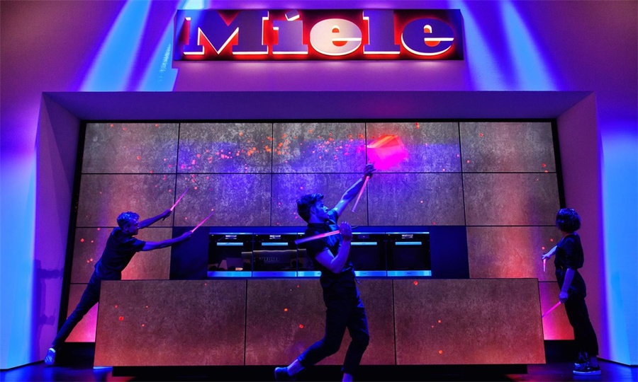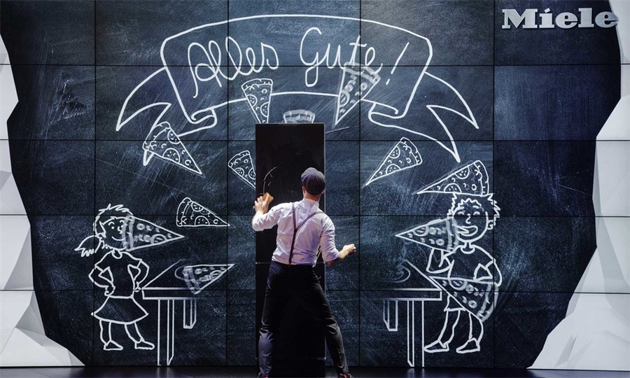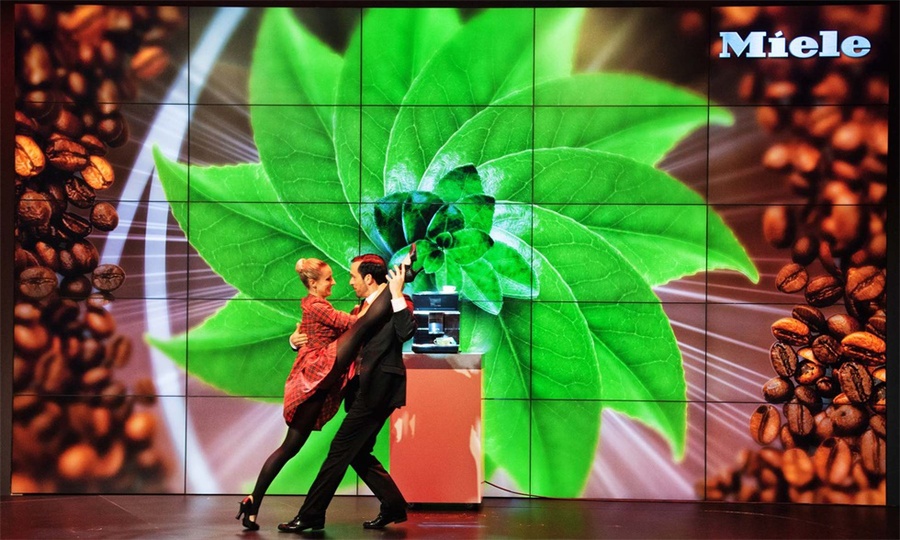 今年,这些机器都是好莱坞明星,像奥斯卡颁奖一样,它们将在各种类别中获奖,比如特别效果奖,完美的放纵奖和特别舒适奖等等。整台“颁奖活动”大约60分钟,巧妙的舞蹈设计融合了空中飞人的艺术技巧,专家技术讲座,几乎所有的演出都进行了精确的视频交互和空中杂技。特别制作视频在一个8米宽的高分辨率LED屏幕上播放,内容丰富,令人惊叹,视频概念和严密执行的编舞为提供了完美的产品幻想。在为期六天的展览中,充满活力的团队进行了36场精彩绝伦的表演,是一个真正令人印象深刻的成就和耐力的展示。今年的展会现场秀也被美诺电器的员工们称为“有史以来最好的秀”。