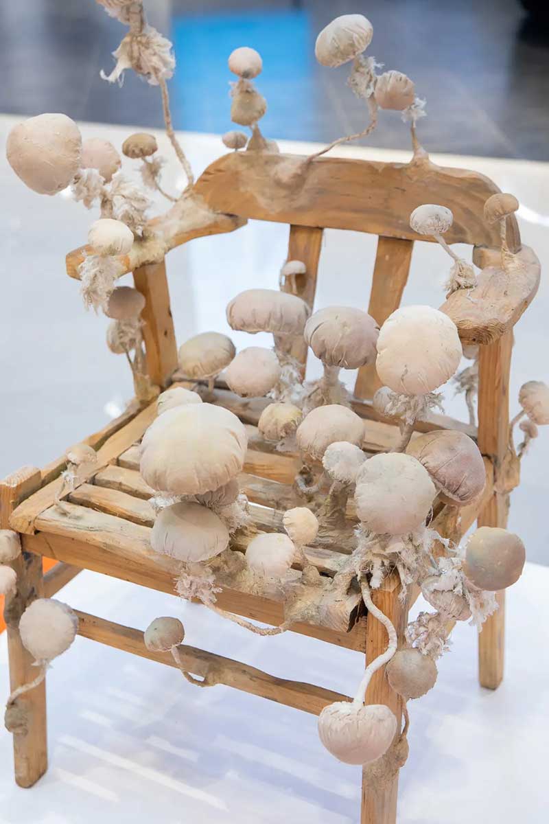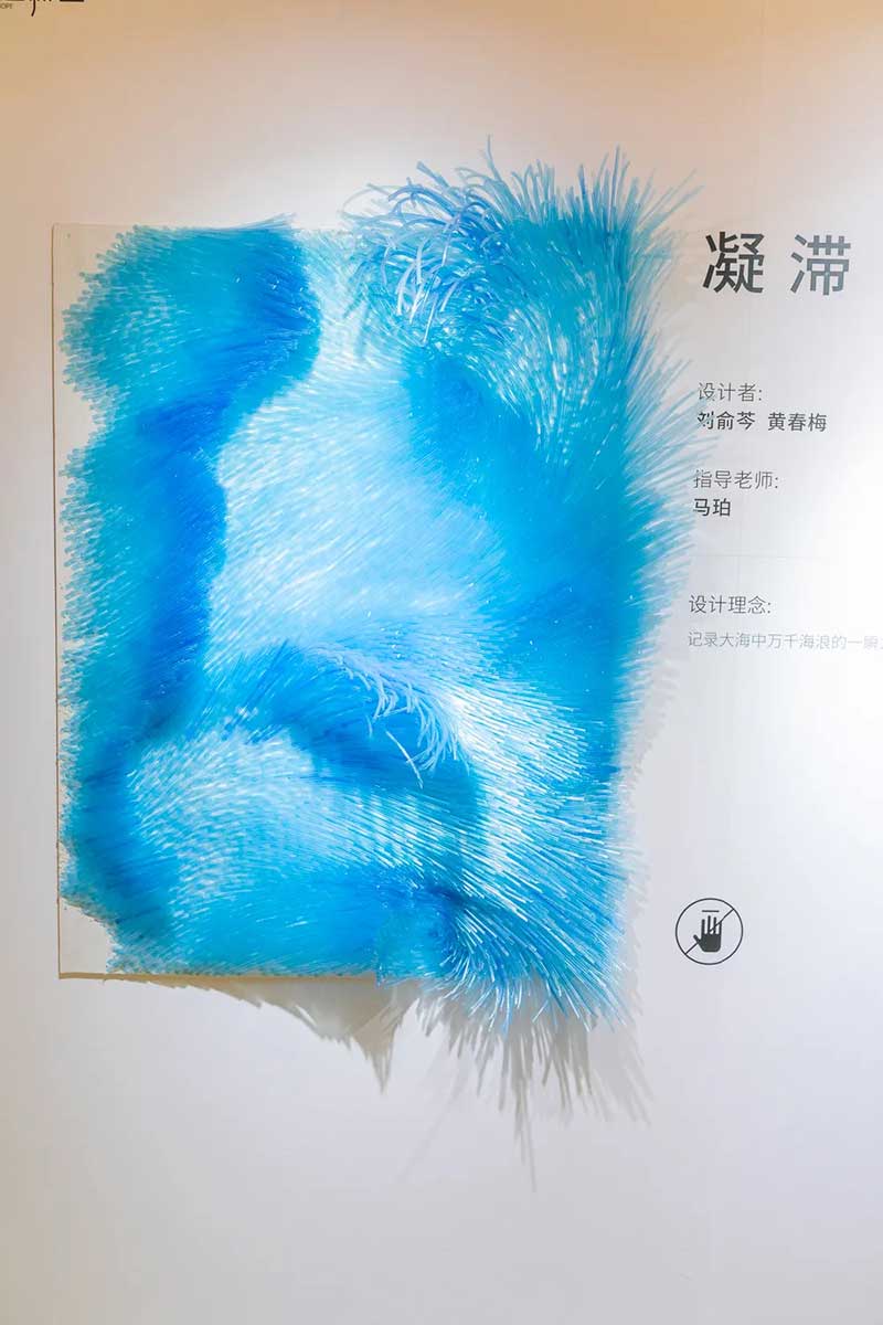据说创作灵感是通过毛线承载温暖,用树的形式预示“新生”,希望通过这场展带给大家一些精神层面的柔软。除开这坨庞大的装置,往前走个十来米,还有块区域可打卡拍照,同时展出了一些川音成都美术学院学生的创作。