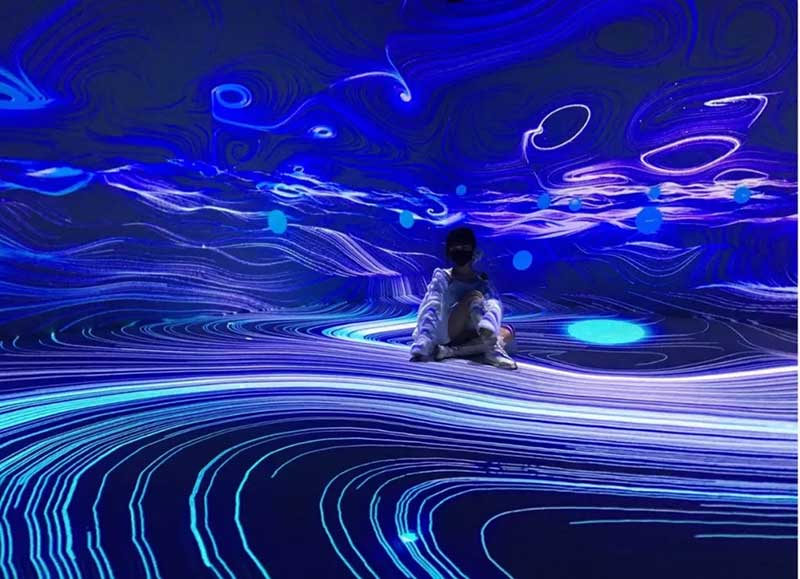沉浸式艺术体验即沉浸式新媒体装置艺术,是由新媒体作为发端的艺术与科技形式结合,以多介质构建虚拟幻象,将体验者的自我投射融入作品场景形成交互,实现物理空间、光影空间、心理空间合为一体的时空再造,辅以绚丽的灯光和色差,加上强烈的互动效果,是当下最为热销的艺术IP项目。