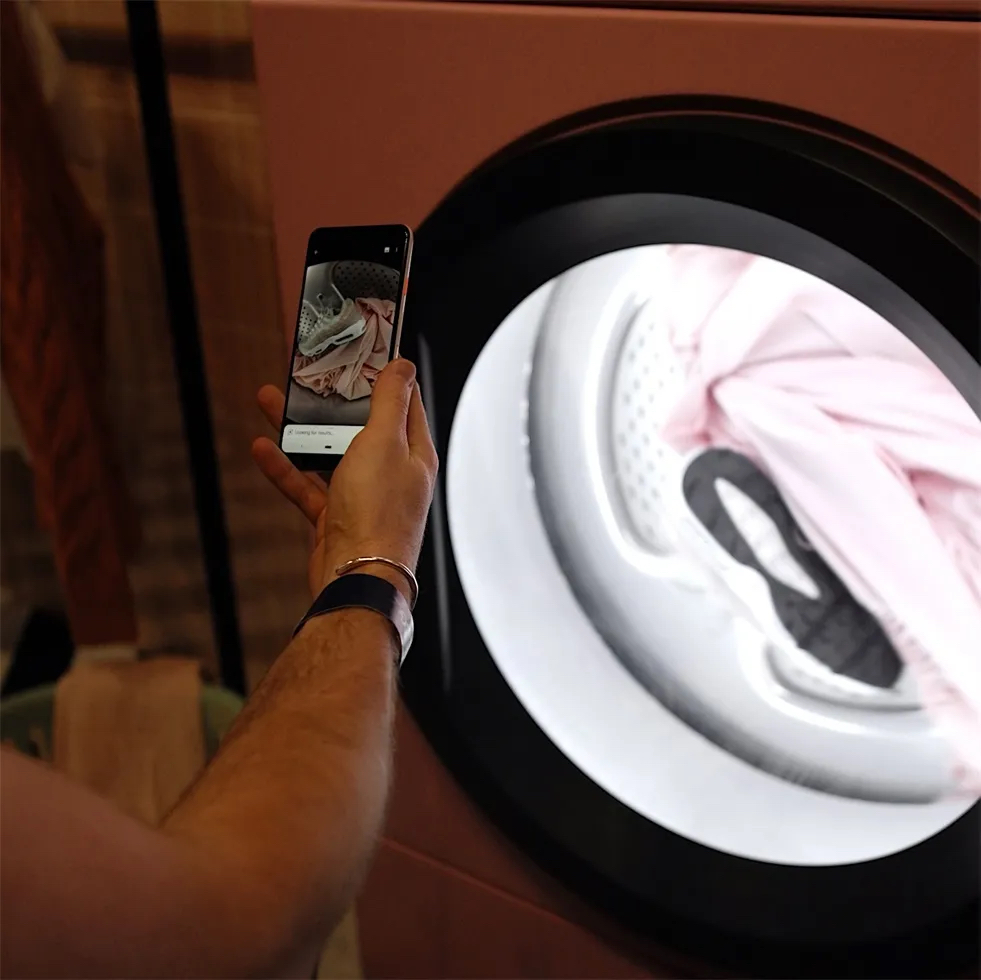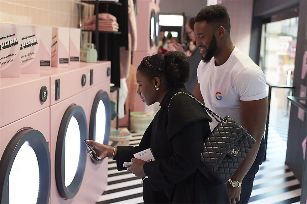 “ Google Lens洗衣店”以柔和的粉红色复古设计风格而引人注目,凸显展示了令人难以置信的精致AR工具Google Lens(人机交互镜头)。只要将Pixel 3的相机聚焦在几乎所有物体上,就会看到大量关于该商品的信息和选项(从时装到汽车再到建筑物)。例如,Google Lens能够识别在洗衣机中旋转的一双耐克鞋,对其进行解释,并提供购买渠道建议。