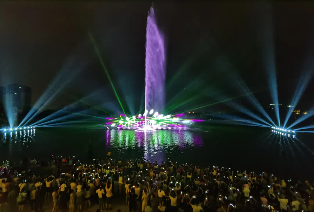城市中的我们,忙忙碌碌。偶然间,心头萌发“上山拜佛朝圣,下山天颐康养”的念头。便想在匆忙的城市中寻找一份属于内心的宁静,寻觅万千,终不及来峨眉莲花湖体验一番。作为峨眉山全新打造的夜间旅游新地标,拥有众多新媒体艺术景点,其中最为著名的便是莲花湖中心区域的音乐喷泉水舞光影秀——万物生。旧光影秀以“万物生”为主题,以“莲花”为脉络,“莲花湖”为秀场,立足峨眉山仙境,将峨眉山传说、莲花湖美境、中华人文精神、佛教禅宗文化等相结合,倾力打造一场炫彩立体的,集合声、光、水、舞、电等多种数字多媒体手段相结合的全息5D灯光水舞秀。栩栩如生的画面配以音乐再结合水之艺术,光的点缀,将峨眉的湖光山色与科技之美展现的淋漓尽致!