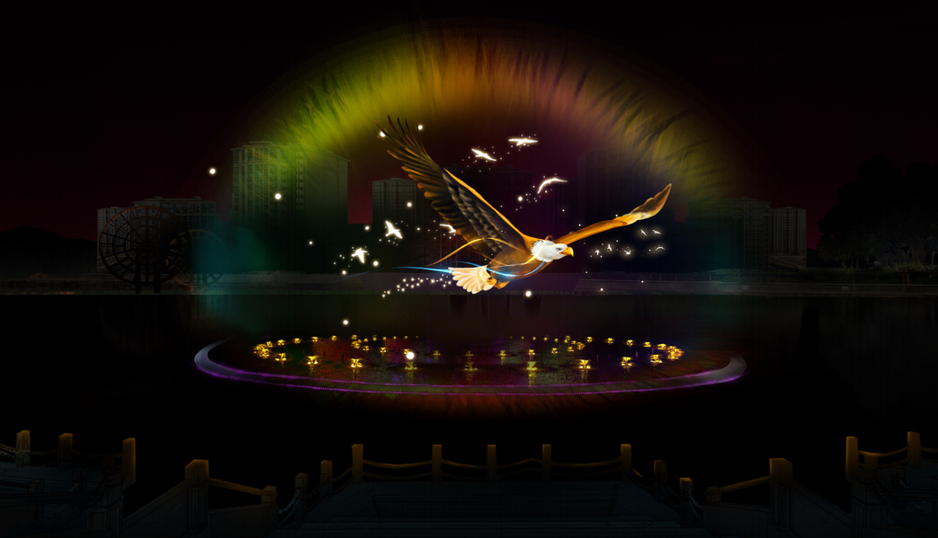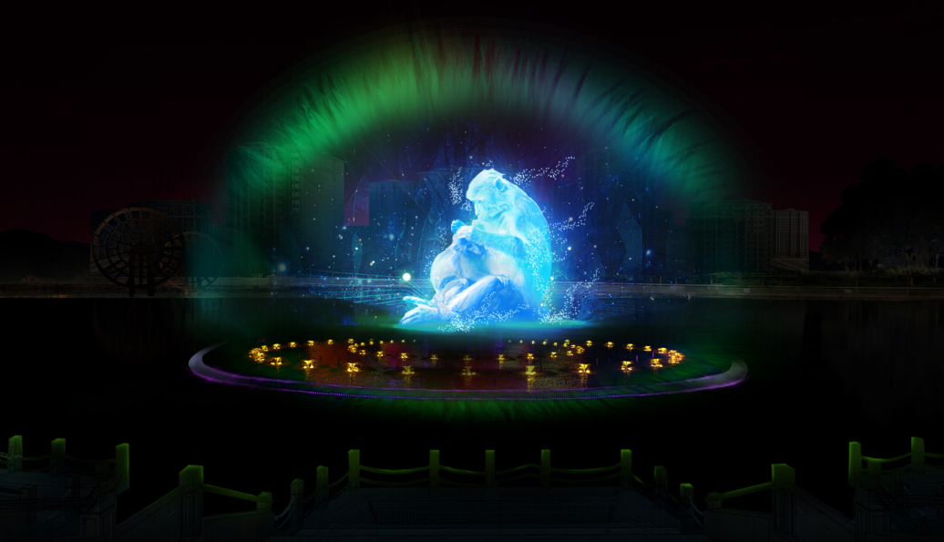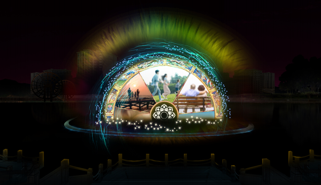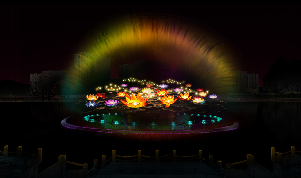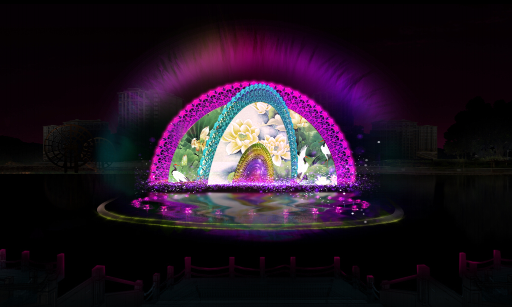 整个光影秀时长为15分钟,共有五个篇章:缘起、众生、莲界、轮回、华彩乐章。其中视觉秀的总时长为9分钟,这就要求每个篇章只有2-3分钟展现时间,要在如此短促的时间内讲述好每个章节的故事实属不易,需要把握好故事架构的每一个细节。