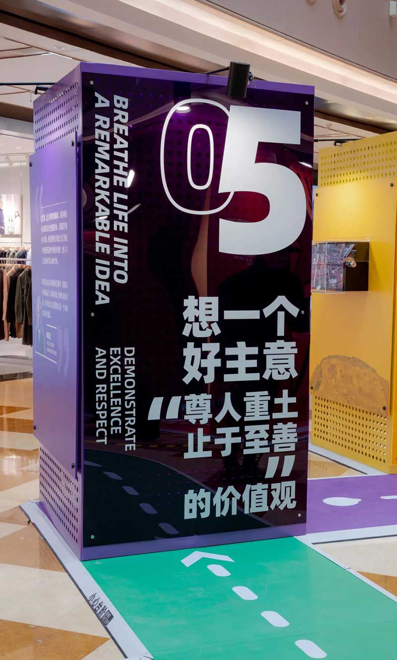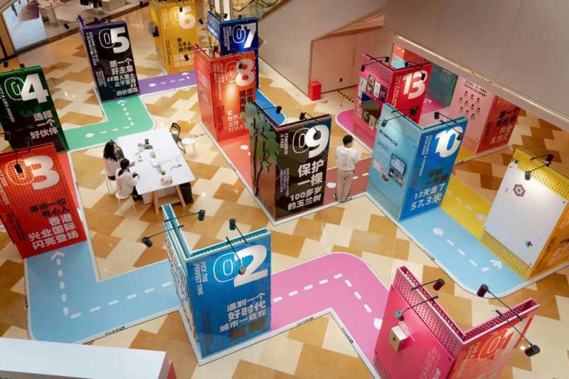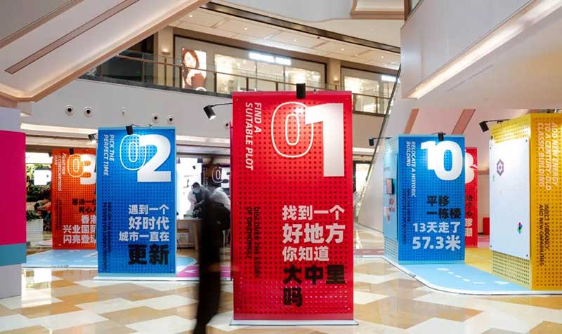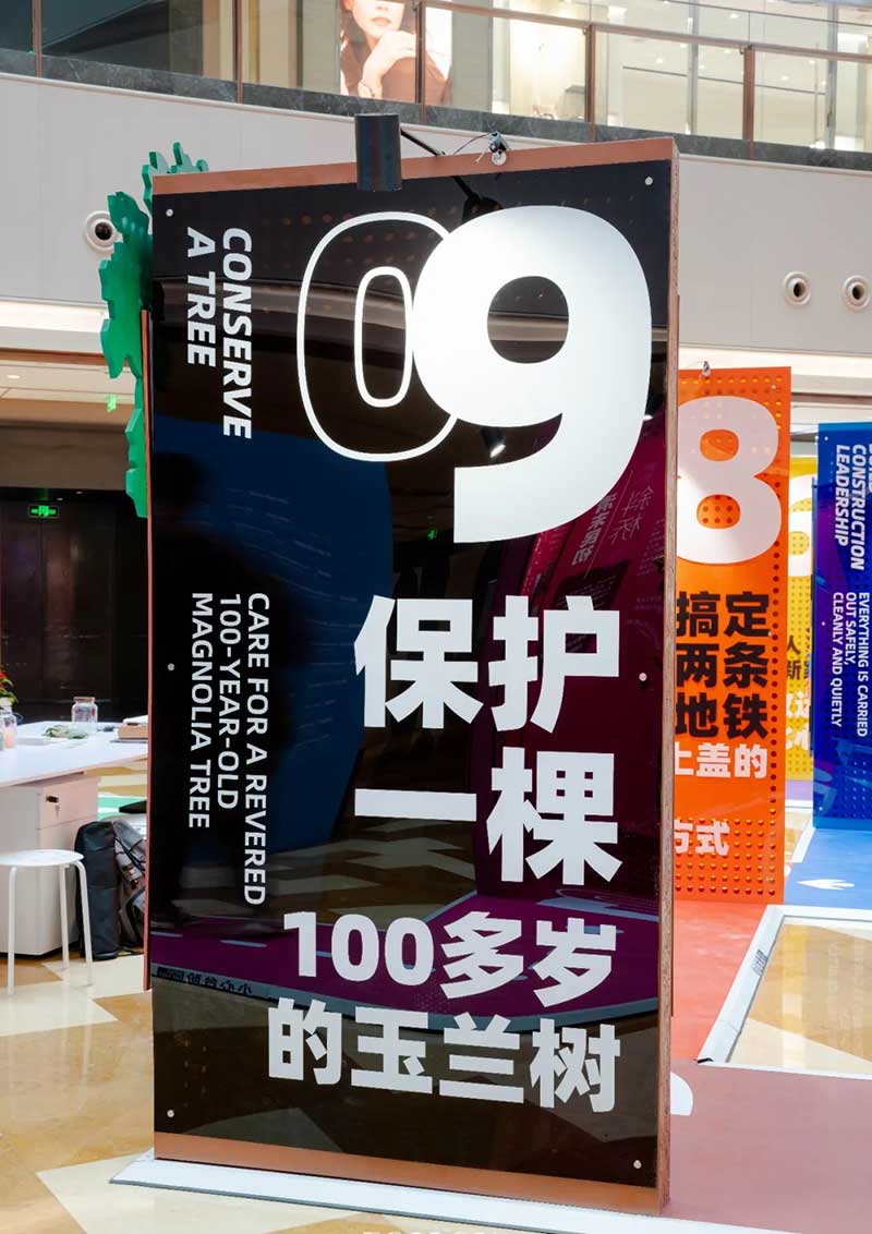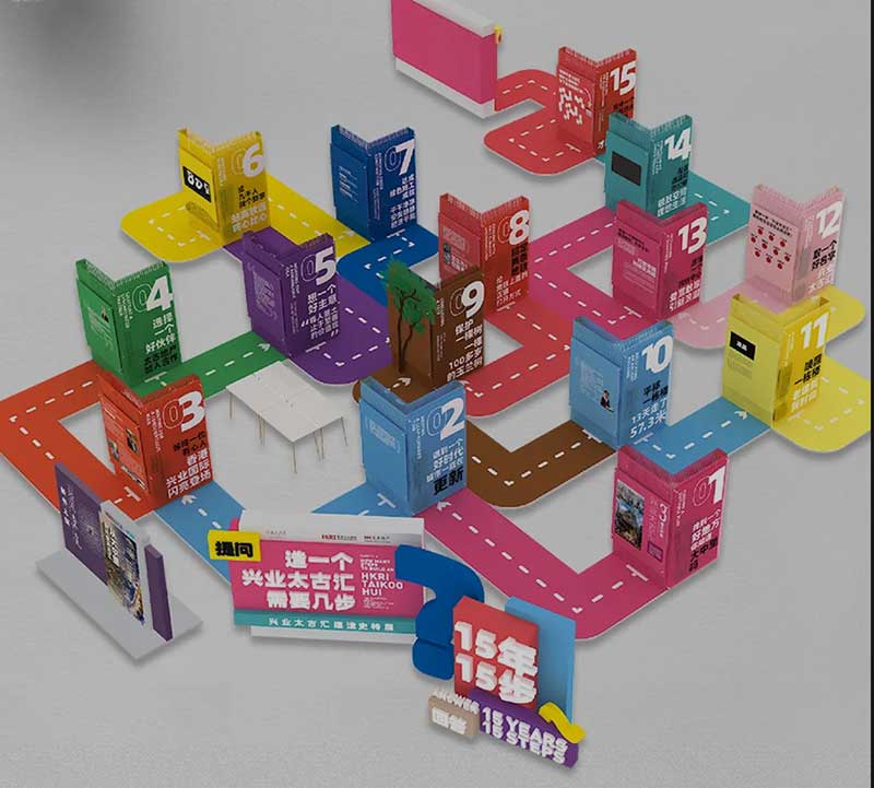 进入兴业太古汇LG1层展厅,超大型问答板格外吸睛,好奇心被立刻激发,15个不同色彩的立体展板组成“历史迷宫”,踏上充满探索乐趣的时间旅程。