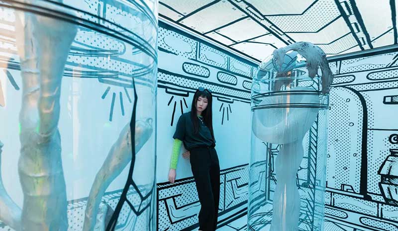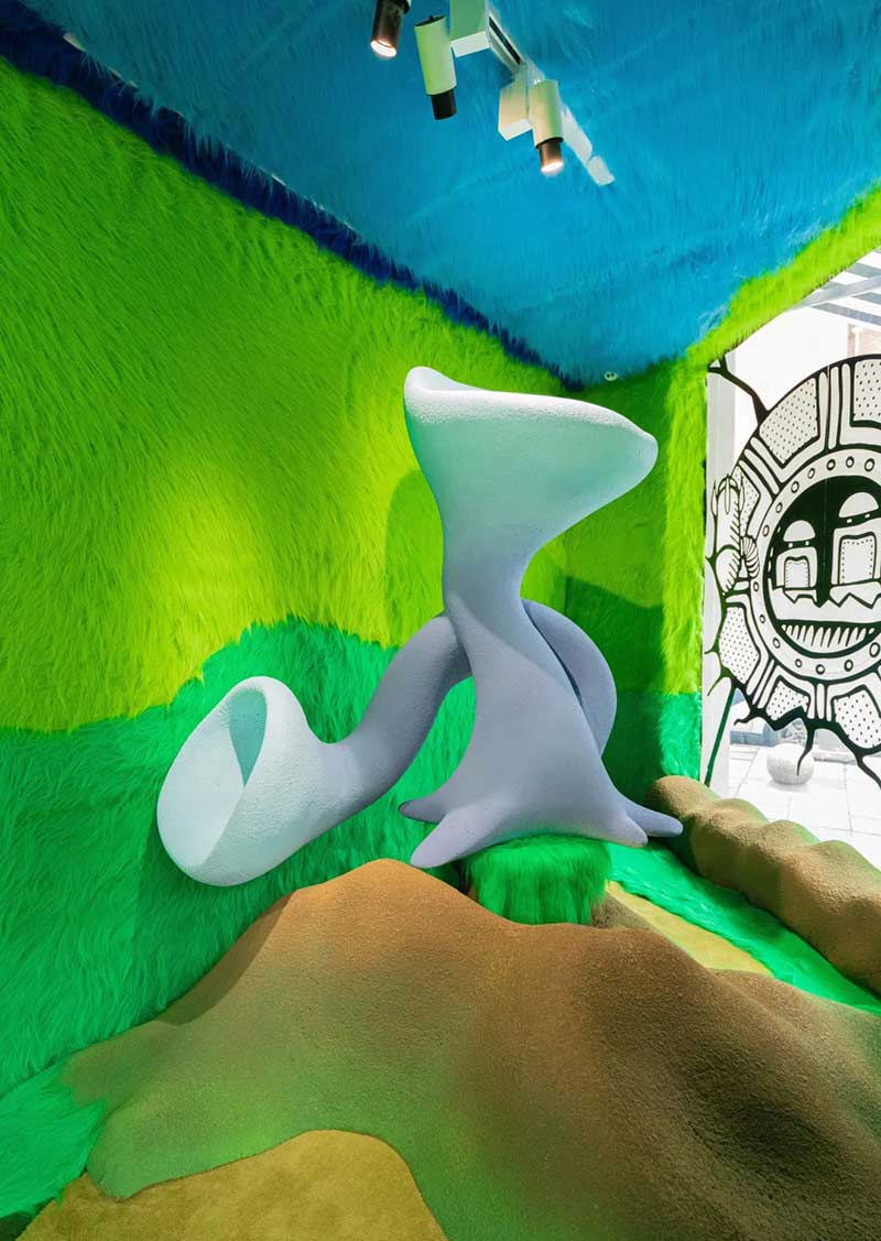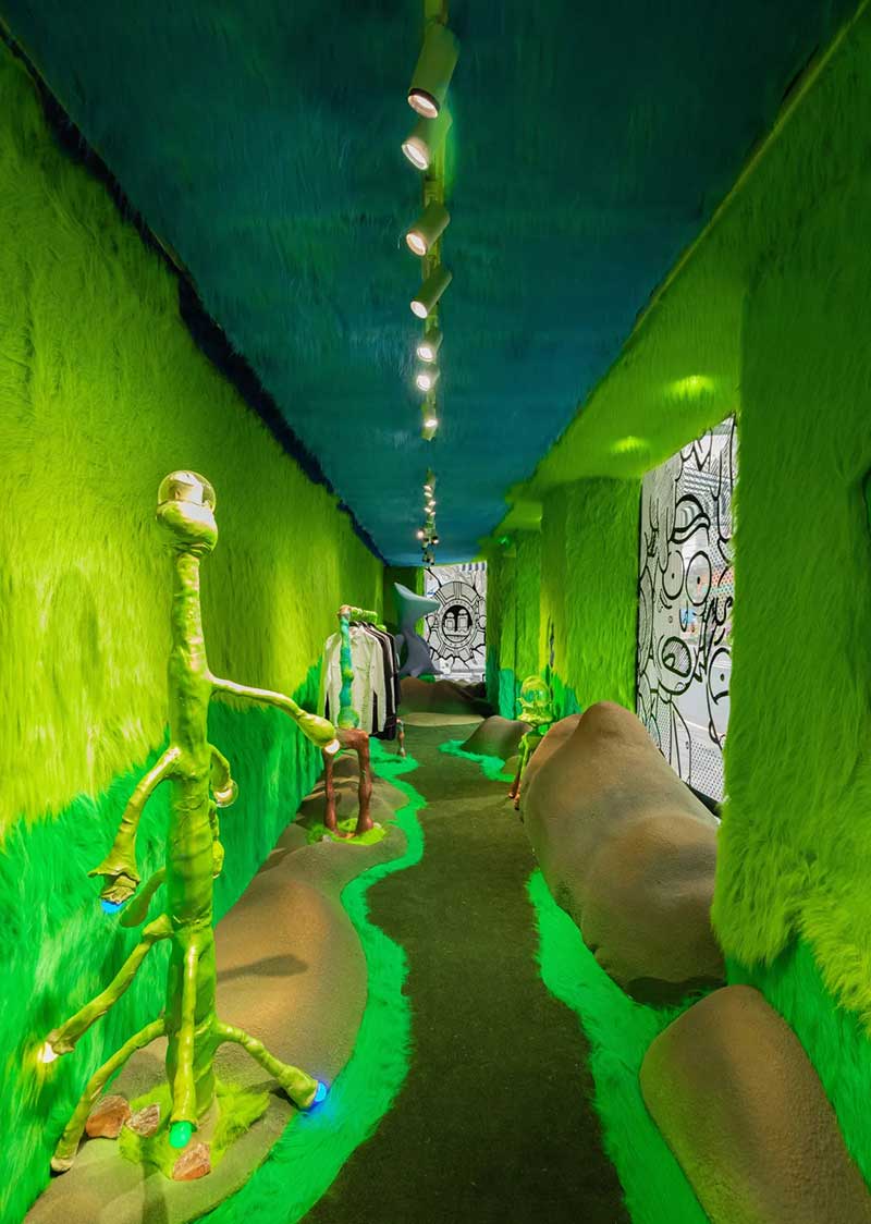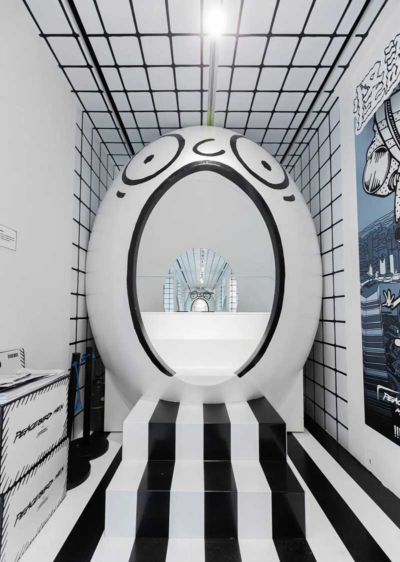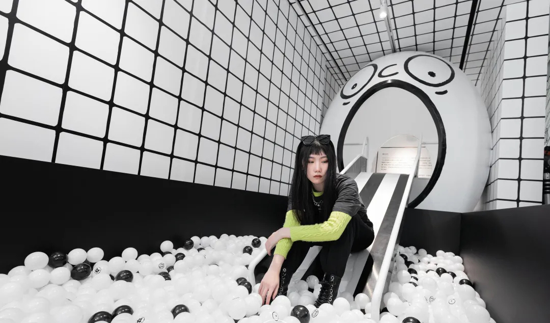 荒诞之旅的第一站竟然是在瑞克的梦里!这里被平行宇宙地球人——当红视觉艺术家Joshua Vides改造成了二次元黑白世界,只有坐着滑梯通过巨大的黑白虫洞,才能重新拥有色彩。