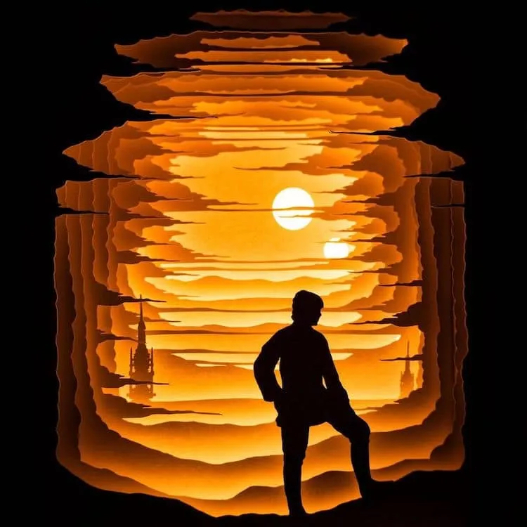 Ben Charman在2019年开始接触纸艺,而后他便持续创作那些迷人的纸艺灯箱。他创造出层次丰富、色彩多变的灯箱艺术。他从《阿凡达》、《星球大战》、《神奇宝贝》和《怪奇物语》等作品中获得创作灵感。